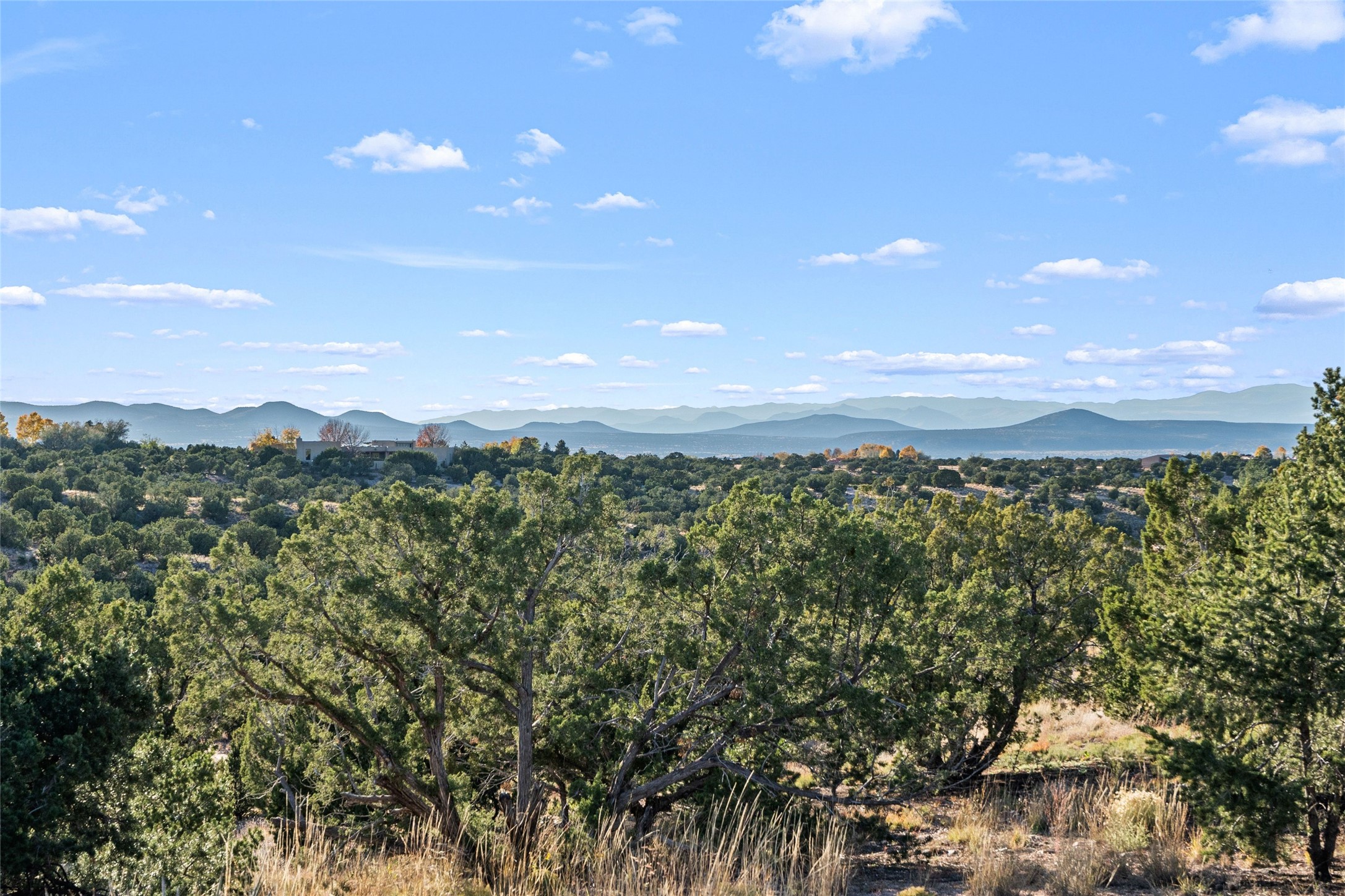 Private La Tierra custom home topping 12 Pinion and Juniper covered acres, set high to capture panoramic Jemez and Sangre de Cristo Mountain views. Experience exceptional privacy and independence just 15 minutes from downtown Santa Fe. Combining modern design with classic New Mexico craftsmanship, this unique property offers a rare balance of seclusion and easy access to Santa Fe's world-class restaurants, galleries, and culture. The main residence showcases soaring ceilings, wide-plank pine and flagstone floors, and handcrafted Saltillo tile details. Walls of glass bathe the interior in natural light and frame sweeping vistas in every direction, creating an atmosphere of calm and inspiration. Currently configured as a three-bedroom home, the flexible layout includes a spacious home office easily convertible to a fourth bedroom, a second office or studio and a dedicated exercise room, a stunning west-facing sunroom perfect for year-round enjoyment of the sunset skies, a luxurious owner's suite with kiva fireplace, high ceilings, and extraordinary Sangre views. Outdoors, a Japanese-inspired courtyard offers serenity and shade. Keep up to four horses with ample space to add a barn or equestrian facilities. Birdwatching at it's best, from inside or outside. Recent Upgrades & Highlights include New stucco (2024) and new flat roof (2025) with transferrable 12-year warranty, Solar electricity system (9 kW ground-mounted, installed 2022 by Positive Energy Solar), Standing-seam pitched roof with high decked ceilings, Forced air & mini-split A/C for year-round comfort, New KitchenAid & Bosch appliances, Silestone countertops, Pre-inspected and lovingly maintained, Septic system sized for four bedrooms. This La Tierra retreat offers a lifestyle of quiet sophistication--a private mountain-view sanctuary minutes from the heart of Santa Fe. Watch the video tour for the full story.