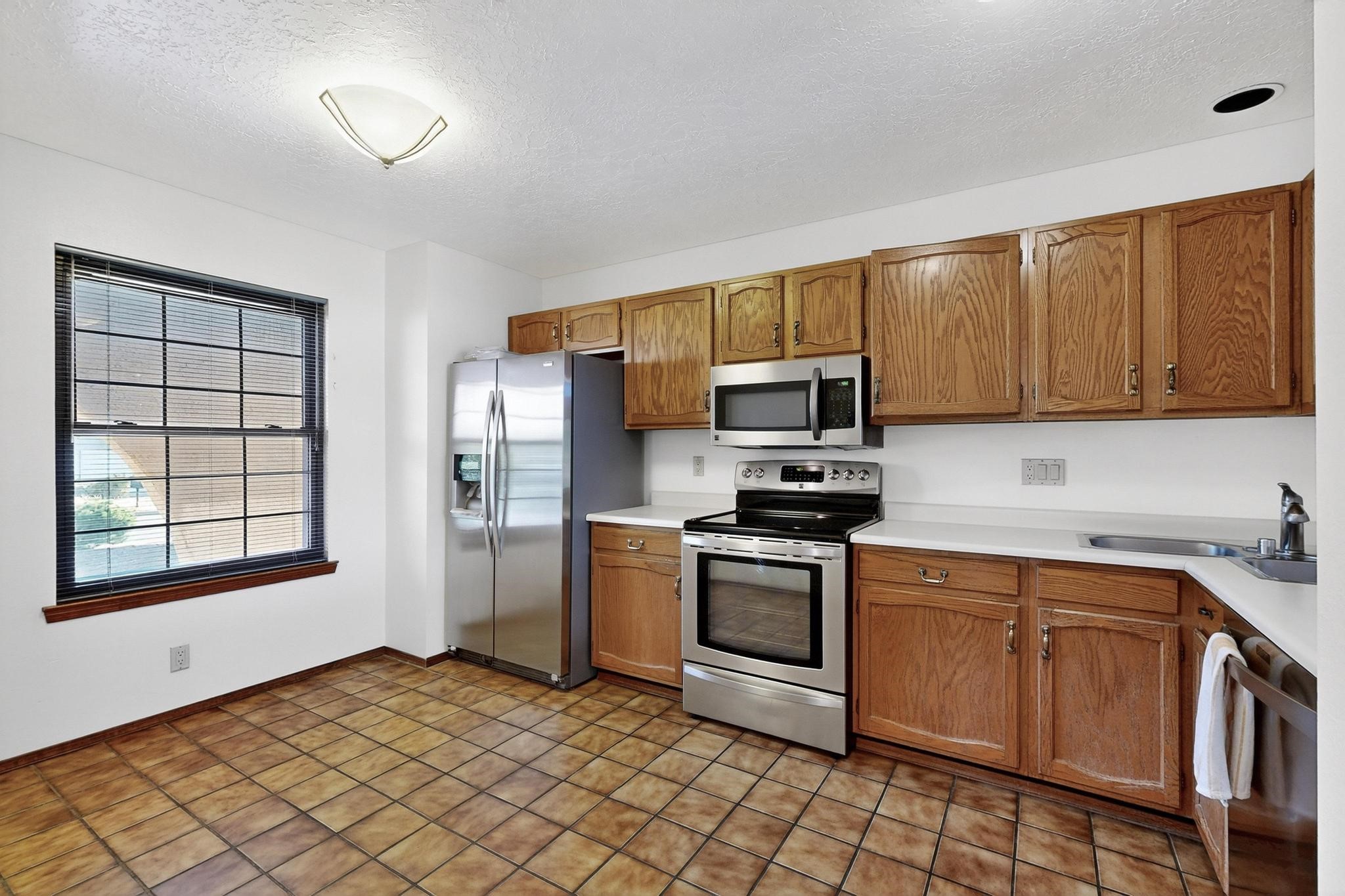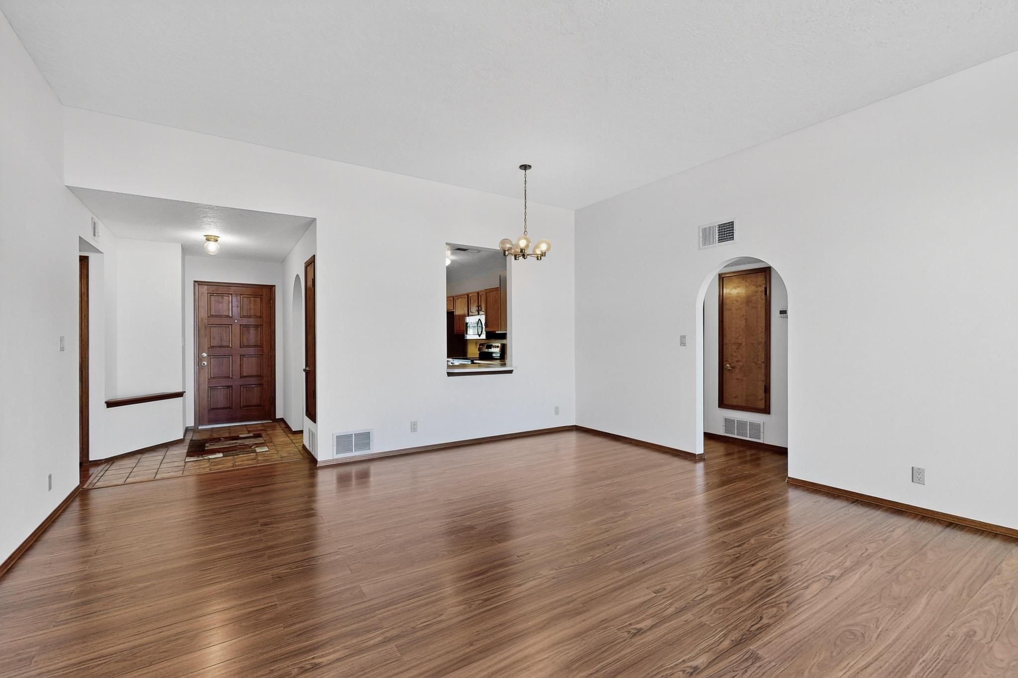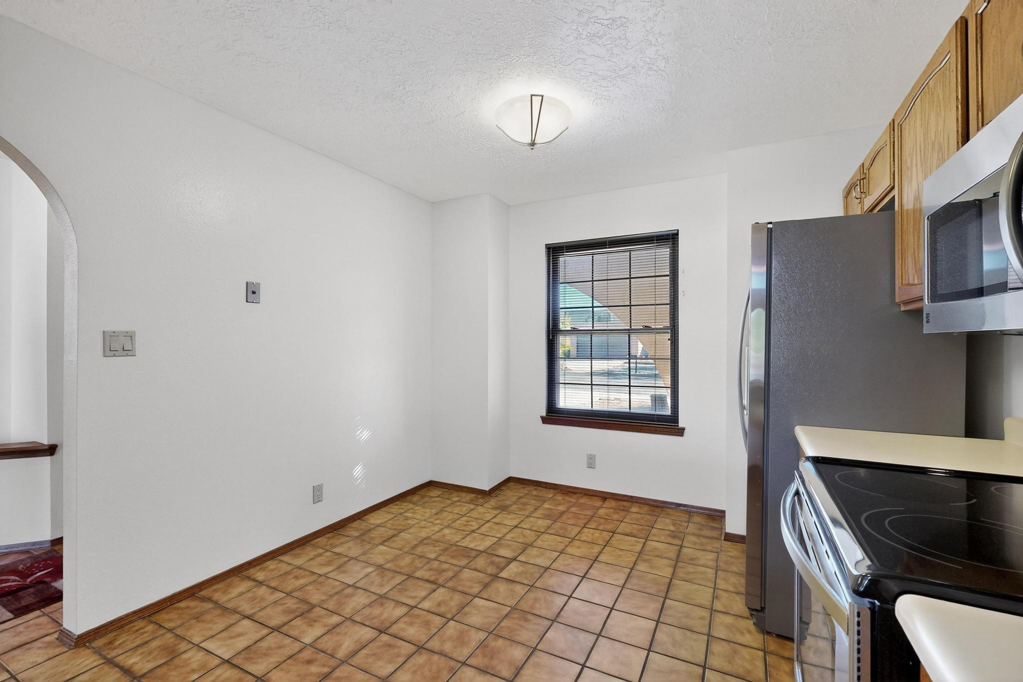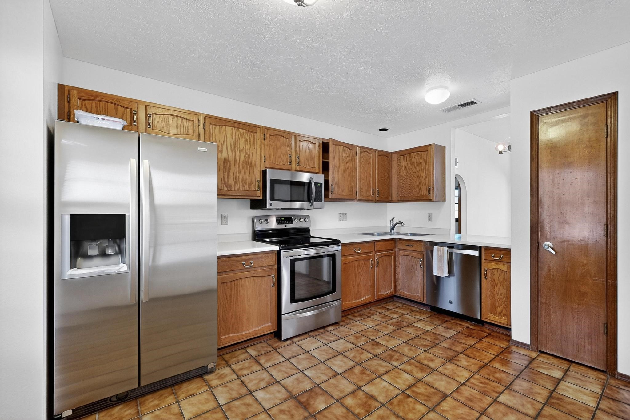 Welcome to 2104 Avenida de las Alturas! This single level home, built in 1983, has been lovingly cared for by the original owners. Once you enter the foyer, you are welcomed by recently added flooring throughout the home. There is a wood burning fireplace in the living room to enjoy on those beautiful cooler Santa Fe days and nights. The primary bedroom and bath are separated by the living area and the other two bedrooms. The updated guest bath has decorative tile in the shower and along the counter backsplash. A new roof was added recently and the garage door has been updated, along with the stainless-steel kitchen appliances. The fully enclosed back yard is a good size, with a few established trees and one of the side yards has planter beds. The front yard has xeriscape landscaping for minimal maintenance. This home is centrally located near shopping, schools, hospitals and restaurants.