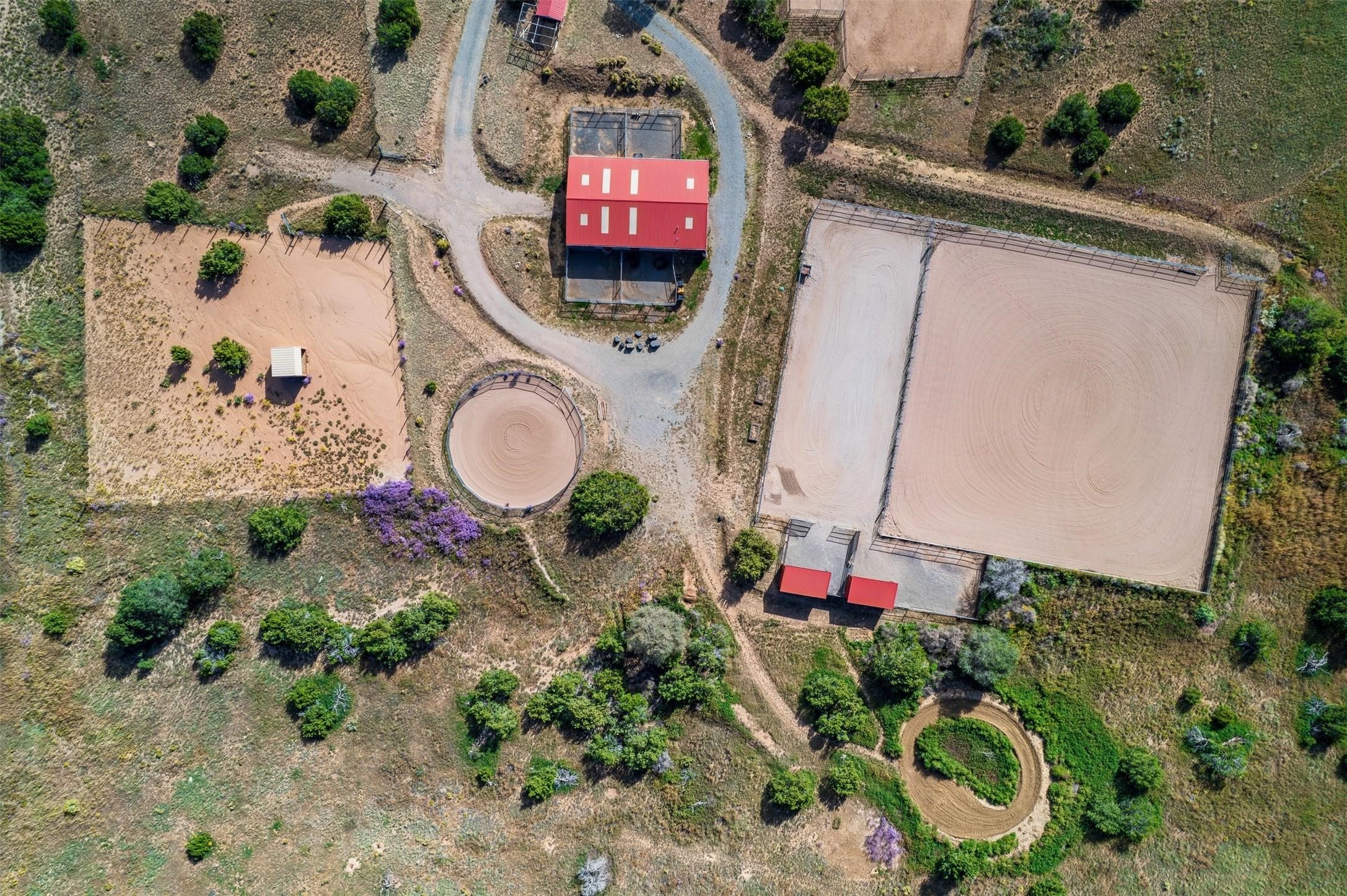 A small ranchette offering a great location and features. This property is situated directly across from Eldorado, offering convenient access to various community amenities. It is serviced by Eldorado water and natural gas, ensuring reliable utilities. The home is also a short distance off the highway, providing easy access to town. The home itself features a split floor plan and an open-concept living, dining, and kitchen area, making it ideal for comfortable living and entertaining. It also has southerly mountain views. For equestrian enthusiasts, this property is particularly well-equipped with a 2400 sq ft center aisle, block and metal 4-stall barn with attached piped paddocks, crusher fine footing, automatic heated waterers, a tack room, a hot water wash rack, hay storage, and a feed room with a sink and toilet. Additionally, there is a piped rail sand arena and 4 turnouts with run-in sheds. The property also a detached unheated workshop/studio with a carport and storage. No HOA.