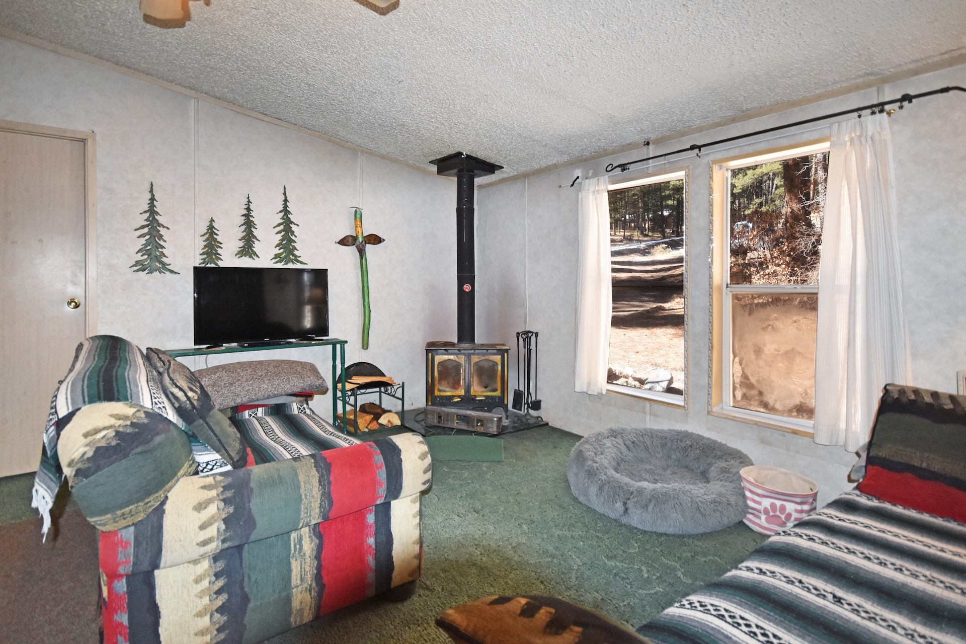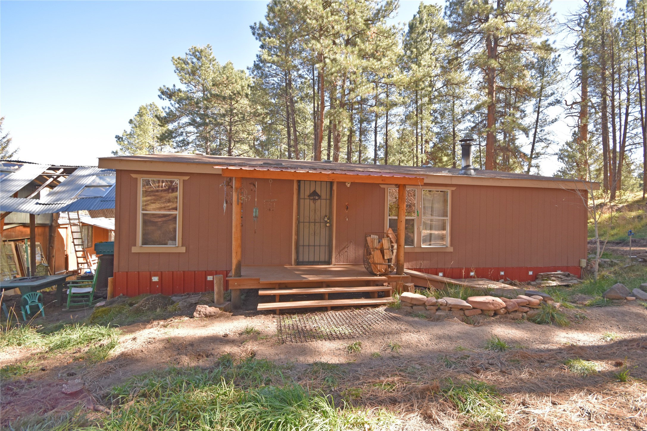 Fabulous Views, Easy Access, & a Great Location! Nestled in the tight-knit community of La Cueva, this charming & affordable home sits on a 0.5-acre lot surrounded by pine trees & nature. Enjoy community water through Hidden Valley Estates MDWCA. The spacious layout features a split floor plan with the master bedroom on one side & two additional bedrooms on the other. Two full baths, including one with a garden tub. The open concept living area has an efficient woodstove for cozy evenings at home, & the country kitchen provides plenty of counter space along with an attached laundry room. Enjoy fishing & hiking right out your back door! Conveniently located on a county-maintained road for year-round access and just a reasonable 40-minute commute to Los Alamos. Don't miss this one!