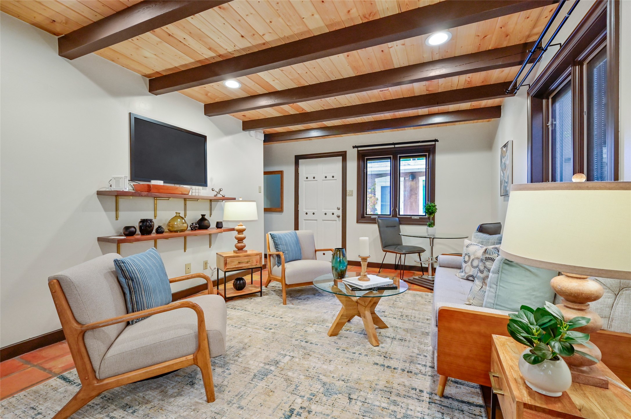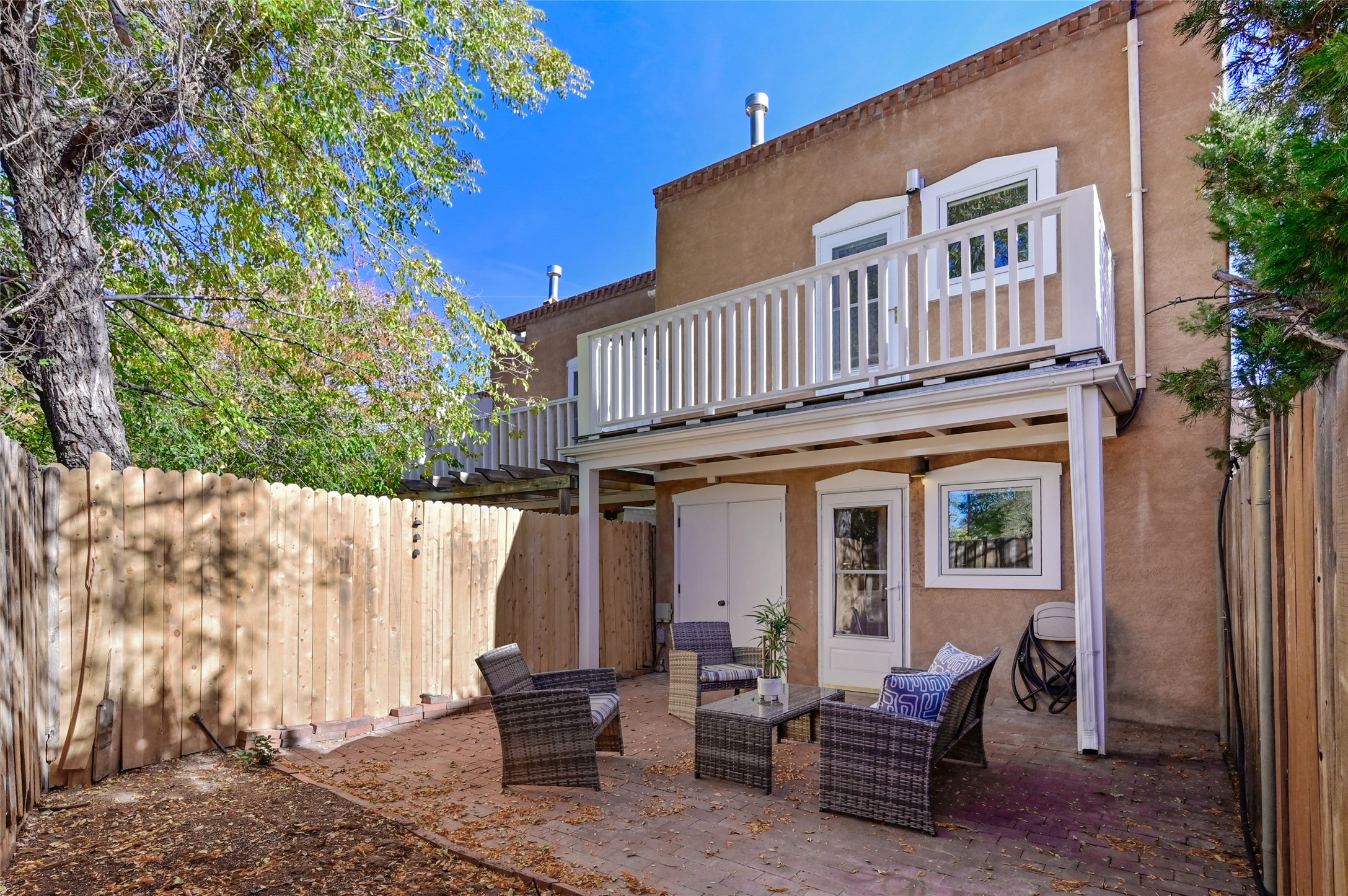In the heart of the Railyard/Guadalupe district, this turnkey 2 bedroom, 2 bath condo offers a rare opportunity in one of Santa Fe's most desirable and walkable neighborhoods. Updates include fresh interior paint, fully renovated bathrooms, granite kitchen countertops, and new washer, dryer, and microwave. A new PVC roof with warranty provides added peace of mind. The property features one designated parking space, guest parking, and a private outdoor courtyard for year-round enjoyment.Located in a sought-after historic neighborhood. Just steps to Susan's Wine & Spirits, the Santa Fe Farmer's Market, restaurants, galleries, shops, parks, and trails. Move-in ready and close to everything the Railyard has to offer.