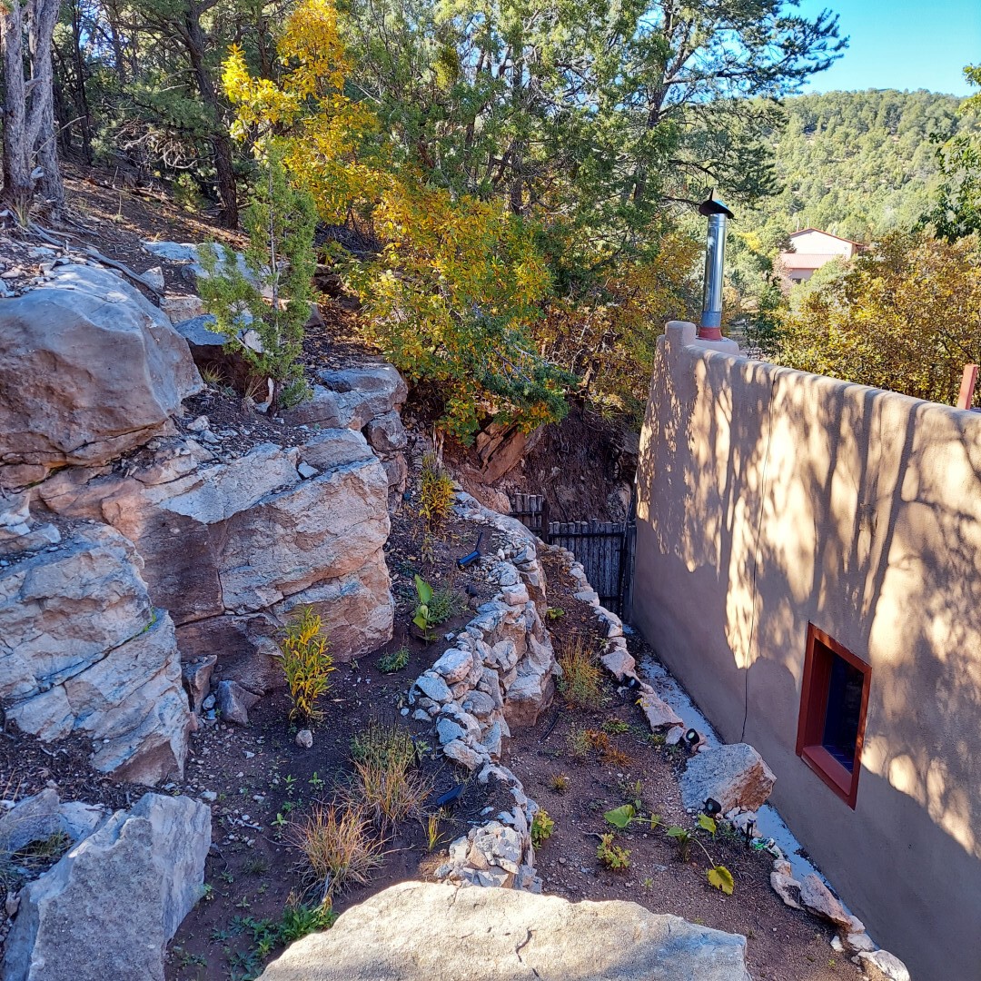 This stunning mission-style home is graced with incredible forest & mountain views along with close proximity to Santa Fe, & the Pecos Wilderness area recreation. The two bedrooms, two bathrooms, den/library, & two living room areas contribute to the spacious interior area of nearly 2,300 sq. ft. The beautiful exterior features multiple patios & gardens, all with drip systems, stone walls, & a mountainside terraced garden complete with solar lighting. Homeowners have made ongoing upgrades to this property during their 13 years here. During the past four years alone, the following enhancements have been made at a cost exceeding $120,000: Kitchen remodeling with GE Cafe appliances, soft-close doors with manypull-outs, a ventless, black glass range hood, recessed & pendant lighting, & white cabinets accented with Salt Cedar twigs; Primary bathroom remodeling with new lighting, custom Mexican tile work throughout, new enlarged window, upgraded fixtures, & custom shower; New (2023) Propanel roof; Two heat/AC pumps; His/hers shoe cabinets in the walk-in primary closet; Latilla privacy fencing around the back yard & coyote fencing around the new side yard patio; Demolition of former 2nd story deck; The wraparound deck was redesigned & rebuilt with maintenance-free composite wood flooring. A roof was added, & a custom gate & bridge now connect the deck to the mountainside for easy access to the Pinon Ridge neighborhood hiking trails. This two-story property sits on a generous forested 1.25 acres providing beauty & privacy. Two outdoor stairways give access to the large lower yard & raised bed garden. An 8' x 10' shed is newly installed. River rock streams divert monsoon rains away from the house & driveway & enhance the lovely landscaping. Every window & door features dual-cellular top-down, bottom-up energy efficient blinds. Only 20 minutes to Santa Fe, this exquisite home provides peace, charm, & convenience in a splendid setting. 2.25% assumable VA loan