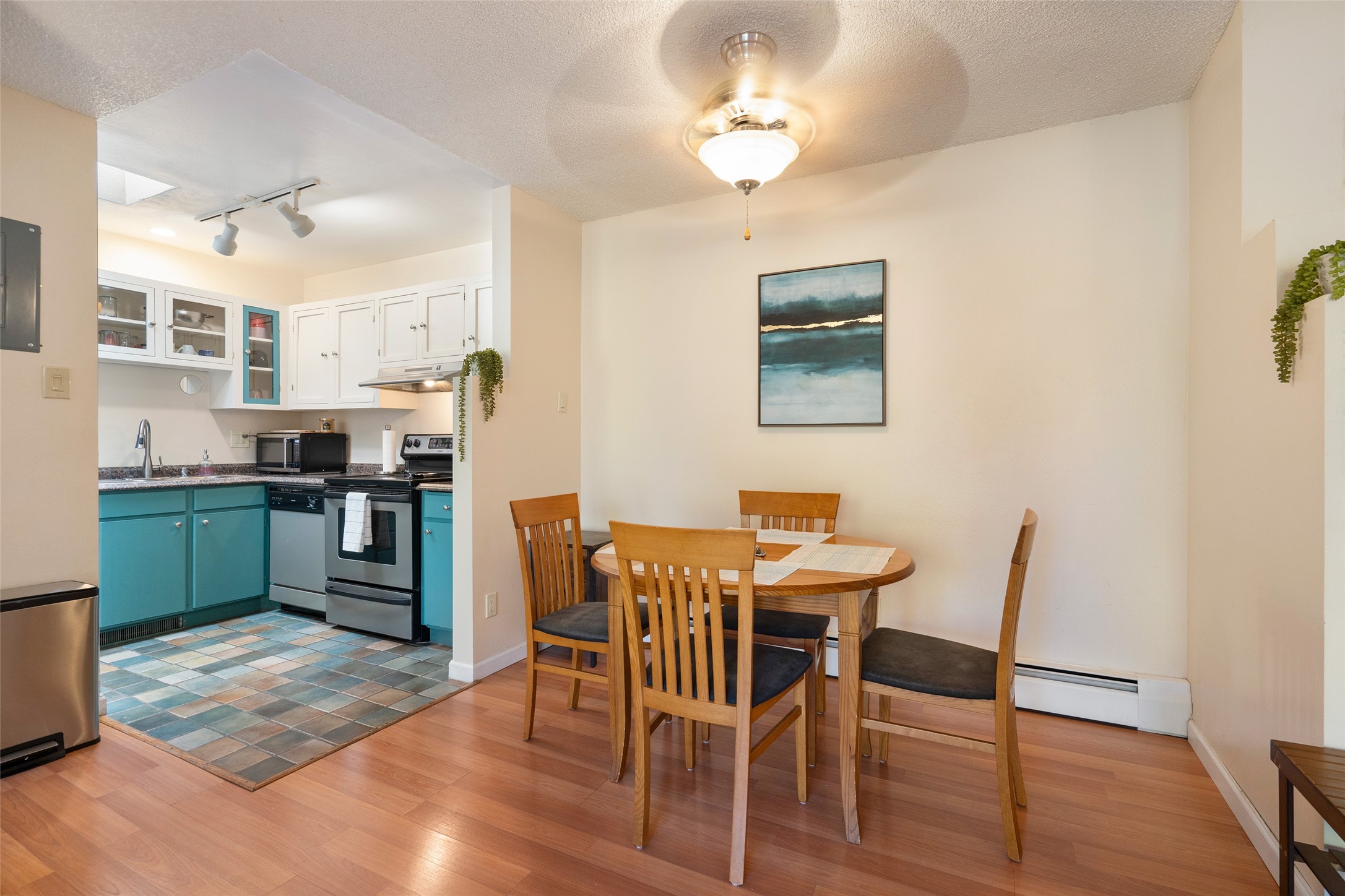 This spacious second-story condominium in the desirable Los Arroyos community offers comfort, convenience, and Santa Fe charm. Centrally located near the hospital and many of the city's premier amenities, this home is one of the larger units in the complex, featuring two bedrooms, one full bath, one bath, and a dedicated laundry room.The bright and open living and dining areas feature easy-care laminate flooring, while the kitchen and baths are finished with tile and the bedrooms offer cozy carpeting. A generous northeast-facing deck provides a lovely outdoor retreat with seasonal mountain views in winter-- perfect for relaxing or entertaining. Residents enjoy a wealth of community amenities, including a clubhouse, indoor swimming pool, sauna, and tennis courts, along with nearby walking trails. The home includes one assigned parking space plus additional guest parking. The association includes roof and exterior maintenance, heating, water, and common areas, ensuring low-maintenance living in one of Santa Fe's most convenient neighborhoods. Your Santa Fe comfort awaits!
