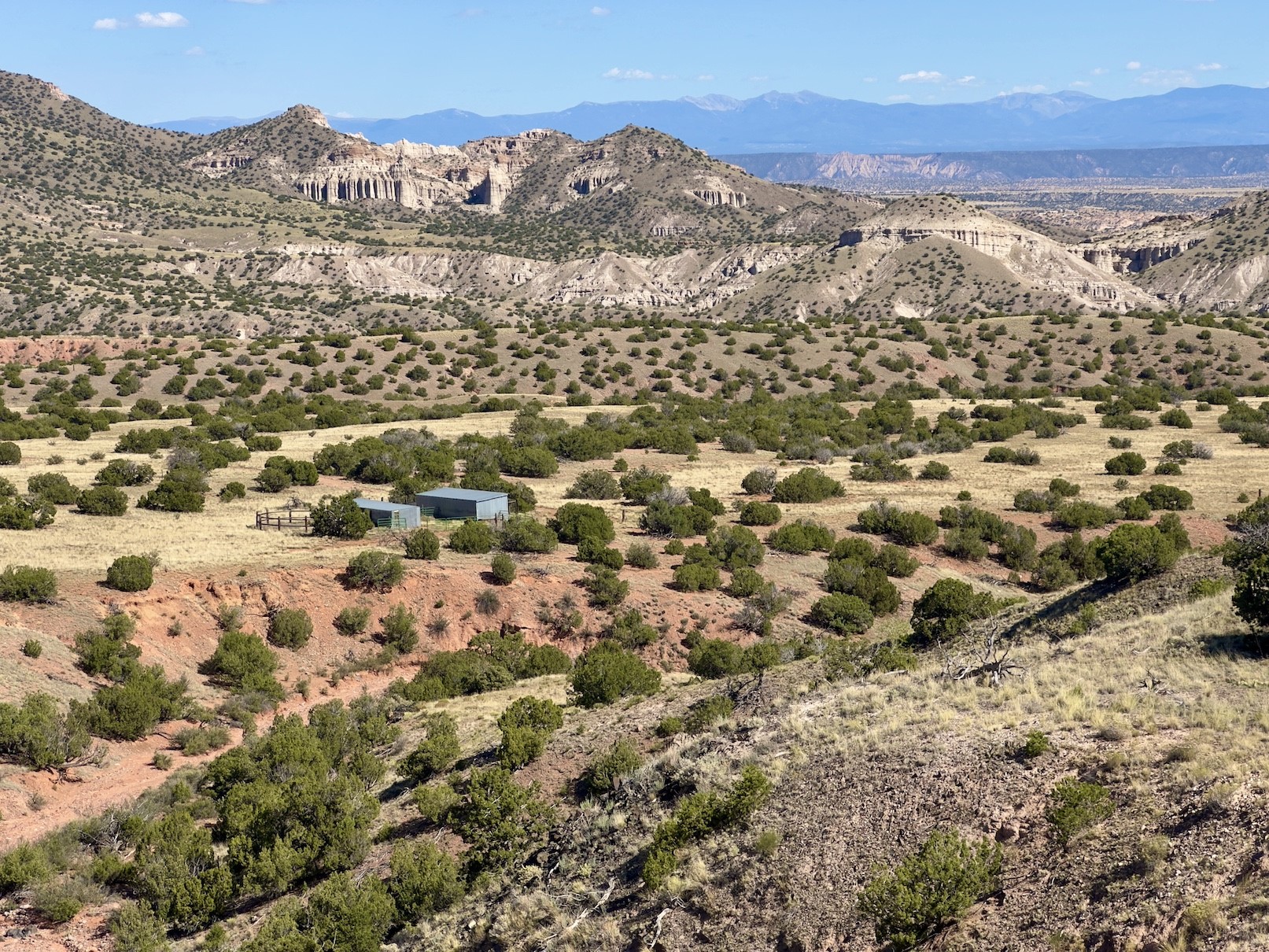 Shirley MacLaine's Plaza Blanca Ranch, set in the stunning landscapes of Abiqui, New Mexico, is where the beauty of the natural world and spiritual peace converge. The ranch, spanning 7,451 acres, is tucked into the dramatic, otherworldly scenery of northern New Mexico's high desert, and it is surrounded by the kind of striking geological features that have inspired artists, photographers, and writers for generations.Plaza Blanca is perhaps best known for its unique white sandstone formations at the ranch's entrance, which rise sharply from the earth to evoke both the surreal and the sublime. These striking "white place" cliffs were immortalized by the painter Georgia O'Keeffe, who was deeply inspired by the area. This legendary ranch also has thousands of acres of piion/juniper forest interspersed with native grasses. The ranch offers sweeping views of the surrounding Chama River Valley, with its red rock mesas, distant mountains, and vivid sunsets that fill the sky with a spectrum of colors.The large 9,000+ square foot hacienda-style home, originally completely off-grid, now features grid-tied solar and wind power, a courtyard, and water supplied from an artesian water well. A caretaker's home, barn, and workshop are all conveniently situated near the hacienda.The expansive ranch shares a 7 mile border with the Carson National Forest, and the terrain features a variety of geologically significant features, with elk, mule deer, and other wildlife cruising the property. The ranch offers the chance to explore thousands of acres for geological anomalies and Native American petroglyphs, several of which have been discovered on the property. Plaza Blanca Ranch has been owned by Ms. MacLaine since 1990, making this a rare opportunity to acquire an iconic property.