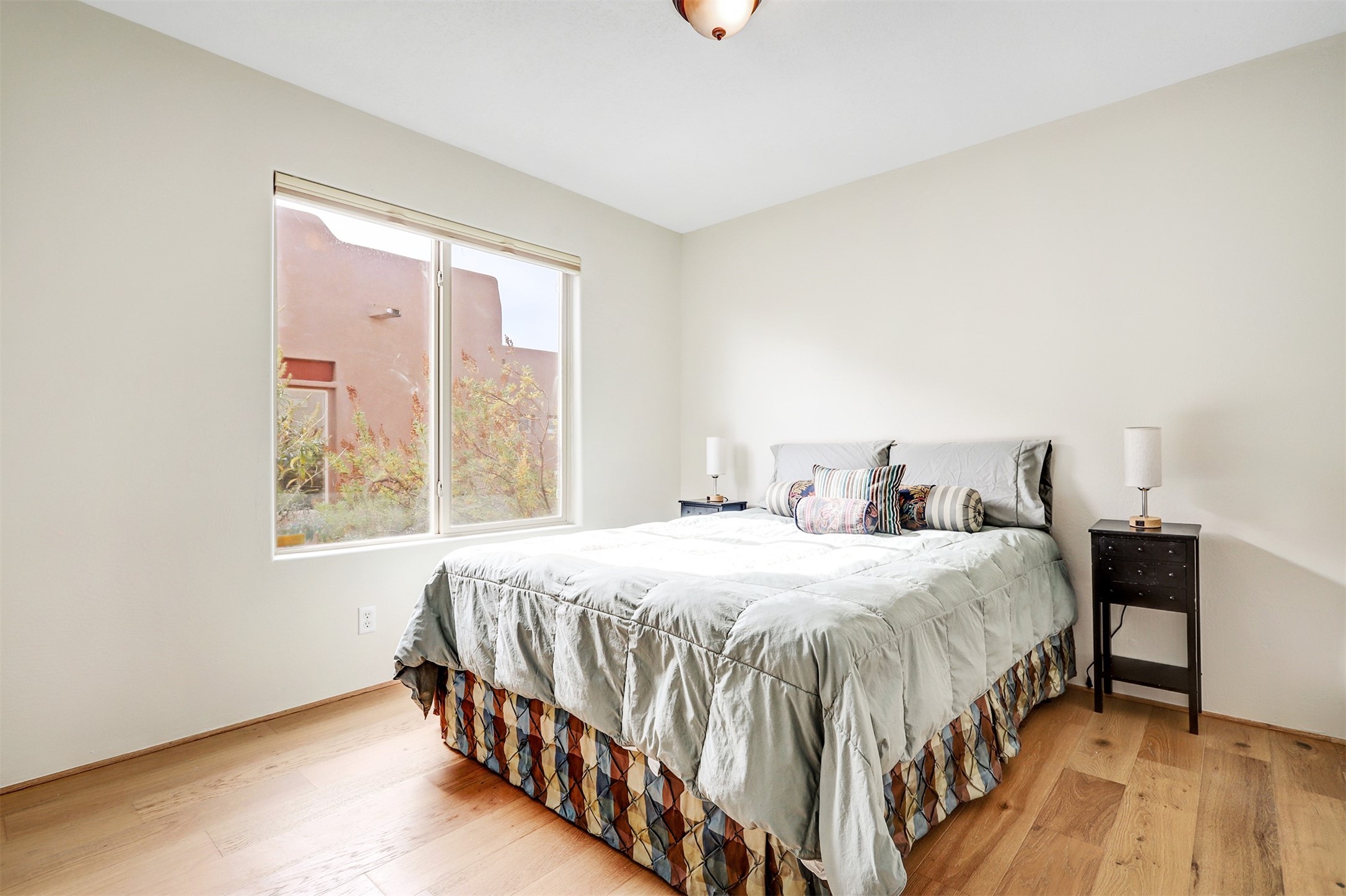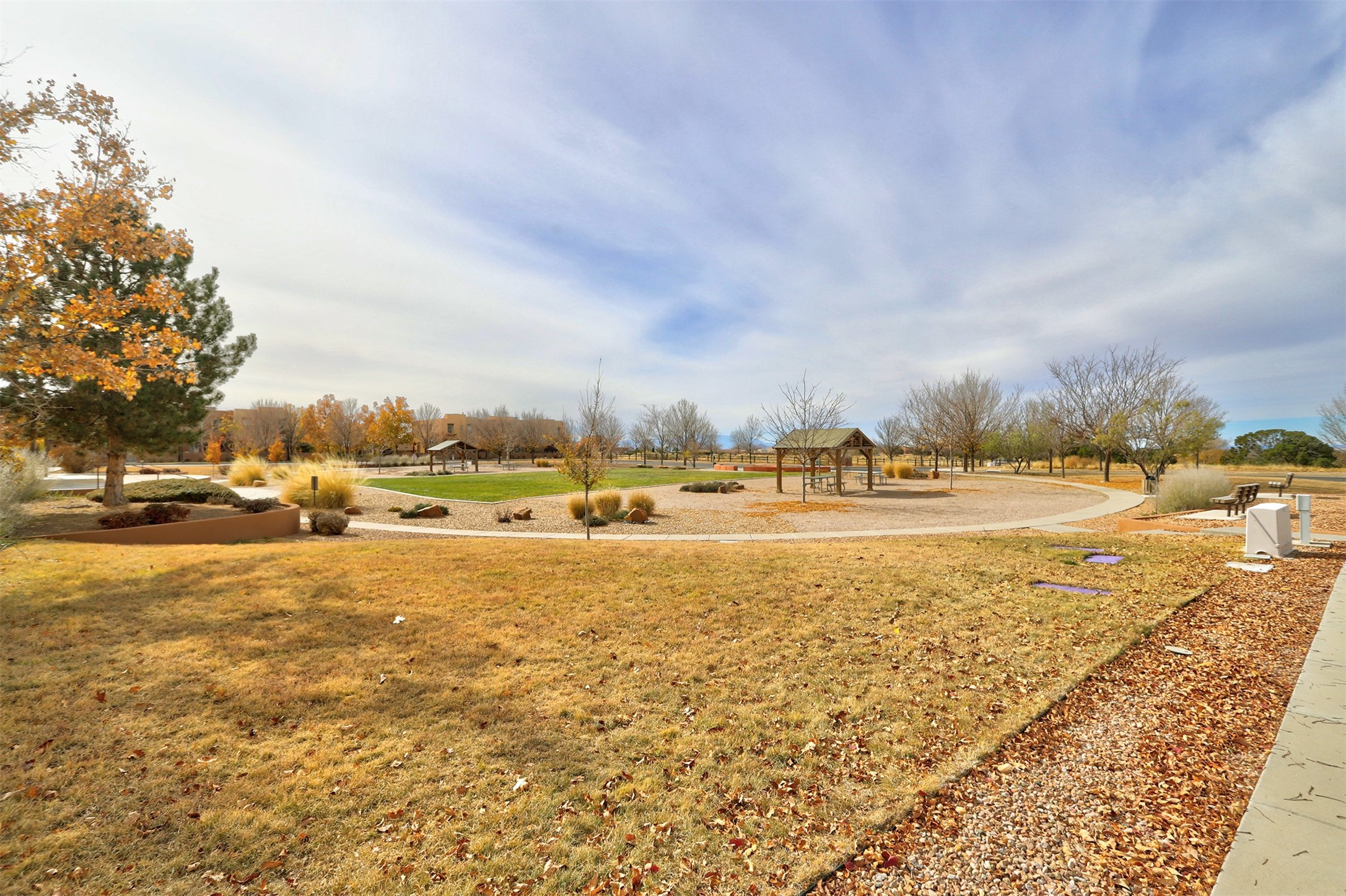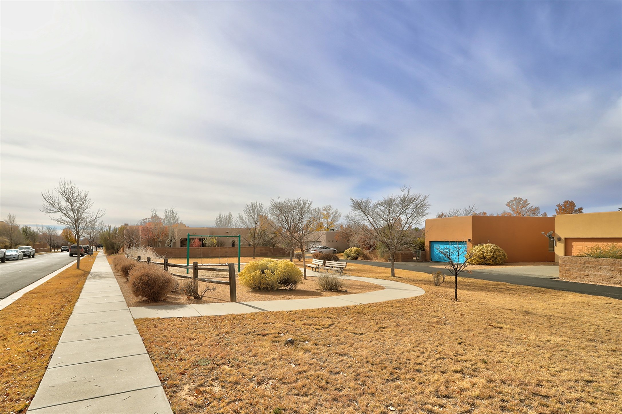 Marvelous Open Flowing One-Level Floorplan with Abundant Natural Light! Spacious Great Room with Kiva-style Gas FP Welcomes you Home! Fabulous Sunny Kitchen for the Chef! Tile Counters & Backsplash! SS Appliances-Gas Range/DW/Refrigerator! Double Door Large Pantry closet! Freestanding Butcher Block Island! Glass Patio Doors flow into the Spacious Yard with a Covered Portal for Dining Al Fresco! View is of a small grassy park! The Dining Room was designed as a Flexible Space. Would you prefer an Artist Studio? Or a 4th Bedroom? Or possibly a Home Office? Great Space to create whatever you desire! The Owner's Suite has plenty of room, measuring 15'7" X 14 7" and boasts a 2024 remodeled bath, complete with an oversized Custom Tile Shower with a Pebble floor and Raindrop Shower Head! Large Walk-In Closet!Tens of thousands $$$$$ in Recent Upgrades and Updates! 2024 Gorgeous Engineered Hardwood Flooring in All Bedrooms + Flex Space!Fresh Decorator Paint! Brand New Designer Lighting! Fabulous Remodeled Owners Bath! Water Heater replaced 2024! No carpet! Tile Flooring in the Kitchen and Baths! This Fantastic Home Lives Larger than the actual footage! The Home was built on A PREMIUM LOT, adjacent to a Small Park, offering a green, open space view and a sense of Privacy! A larger park with a playground is nearby! 2 Car Garage, accessed at the rear of the home. The In-Floor Radiant Heat Boiler was replaced in 2019, as indicated by the Approved Tag on the boiler! 3 or 4 Bedroom with Flexible Design! Rancho Viejo is a Master Planned Community with numerous Parks and Miles of Trails to enjoy the NM Sunshine! Ideally located at the South End of Santa Fe with easy access to the Santa Fe Community College, Schools, and Restaurants! Presbyterian Hospital and Shopping are also nearby! 18 Minutes to the Conde Nast Award Winning Destination Spa-Ojo Santa Fe! Only 22 Minutes to the Santa Fe Plaza! A truly special place to call HOME!