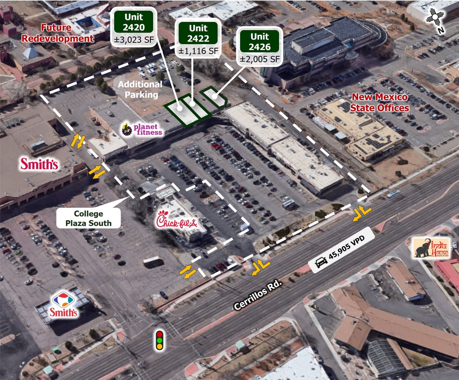 AVAILABLE: Unit 2420: 3,023 SF, $16.00/SF + NNN (Space comes with an overhead door in the back), Unit 2422: 1,116 SF, $18.00/SF + NNN, Units 2420 & 2422: 4,139 SF, $16.00/SF, Unit 2426: 2,005 SF, $20.00/SF + NNN | ZONING: C-2, General Commercial | HIGHLIGHTS: Establish shopping center - great for new business, Grocery anchored by Smith's Food & Drug and Planet Fitness, Ample parking (back and front), More than 45,000 cars per day, Competitive lease rates in a busy retail corridor, Co tenants include: Smith's, Chick fil A, Planet Fitness, The Paleta Bar, Hearing Aid Center and more