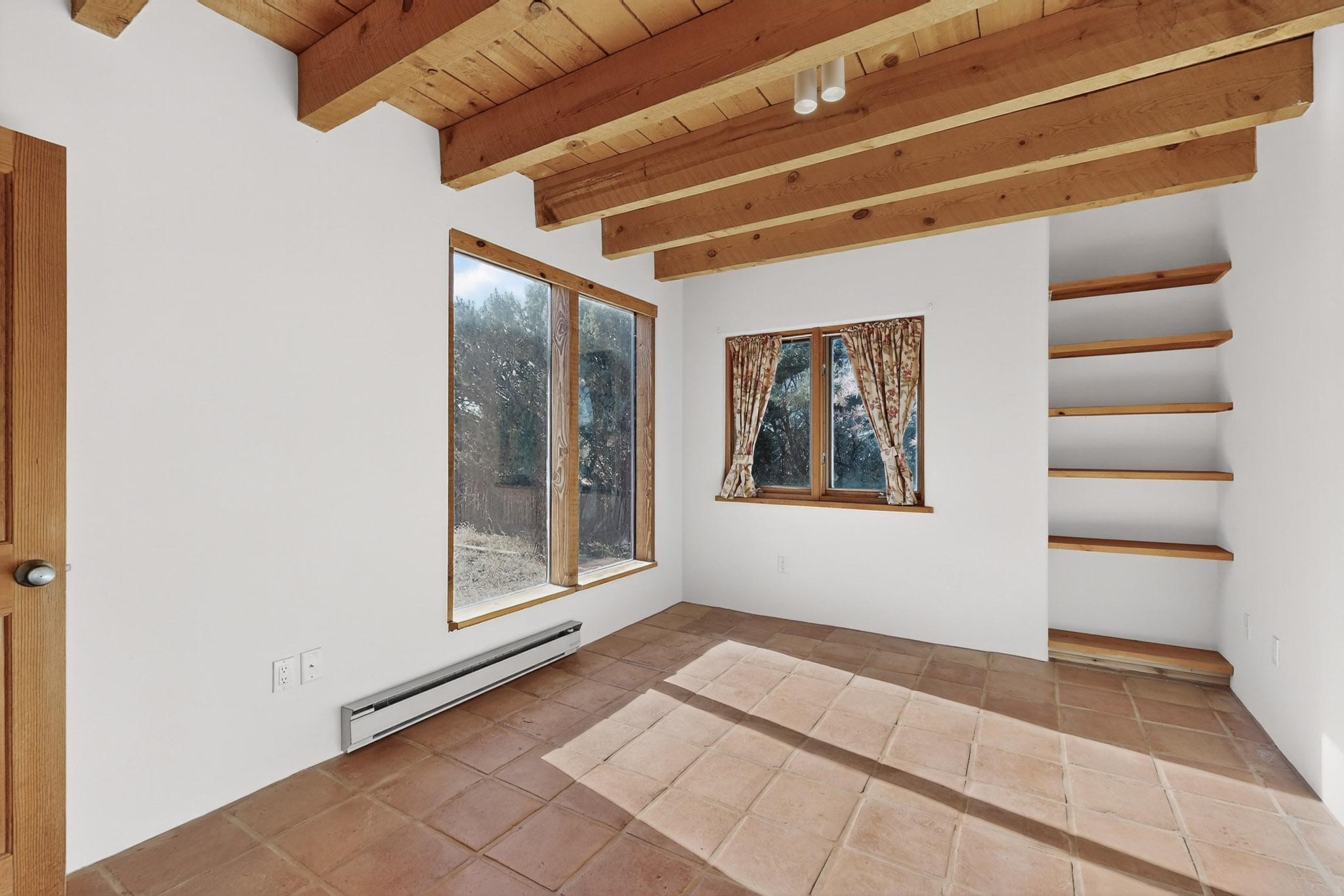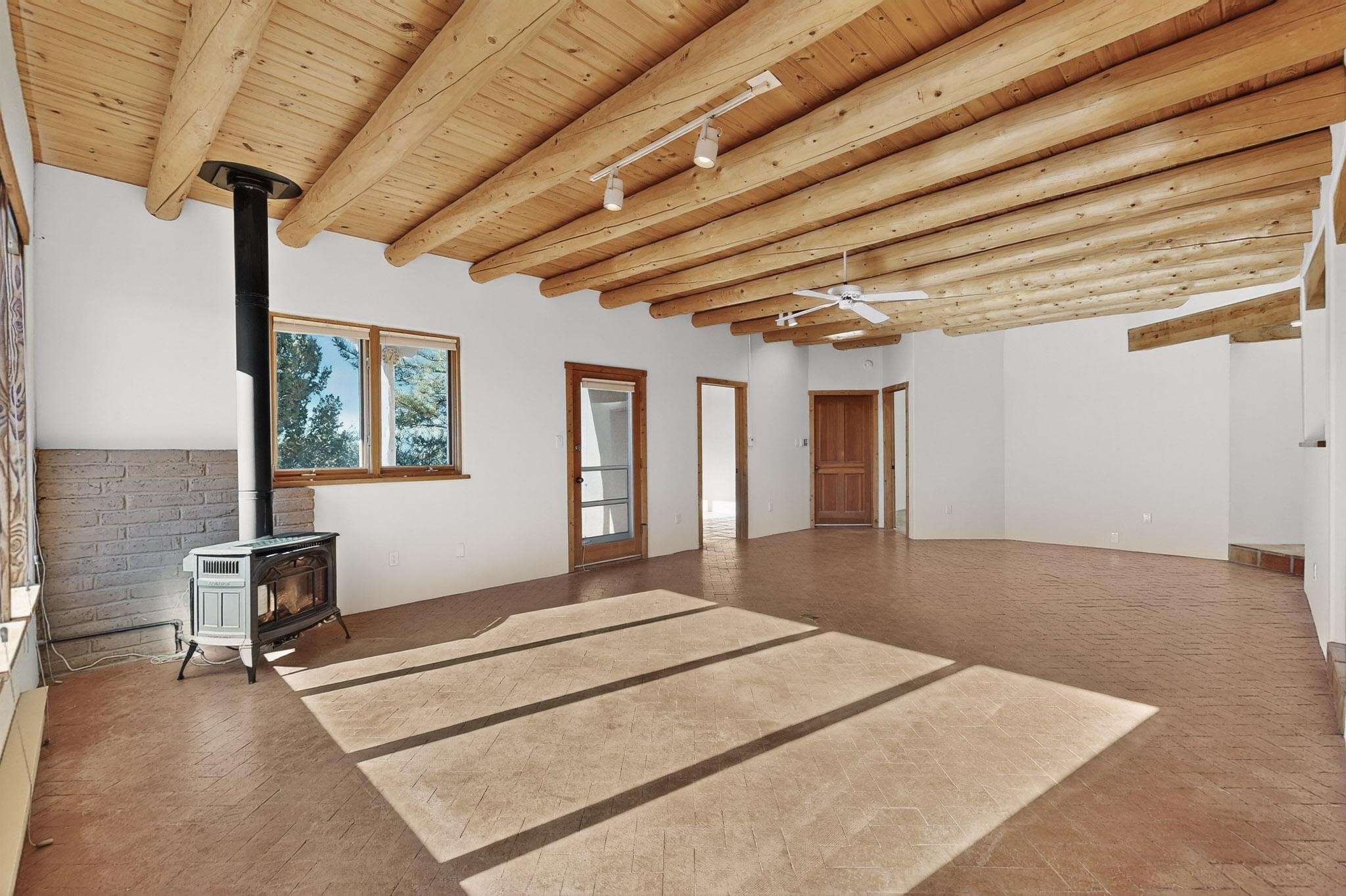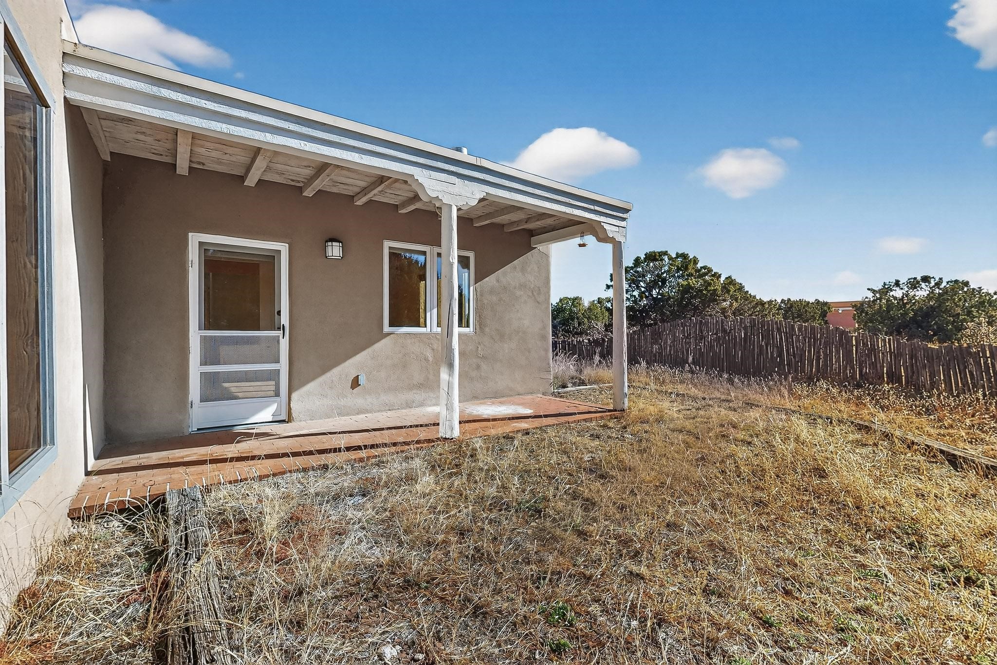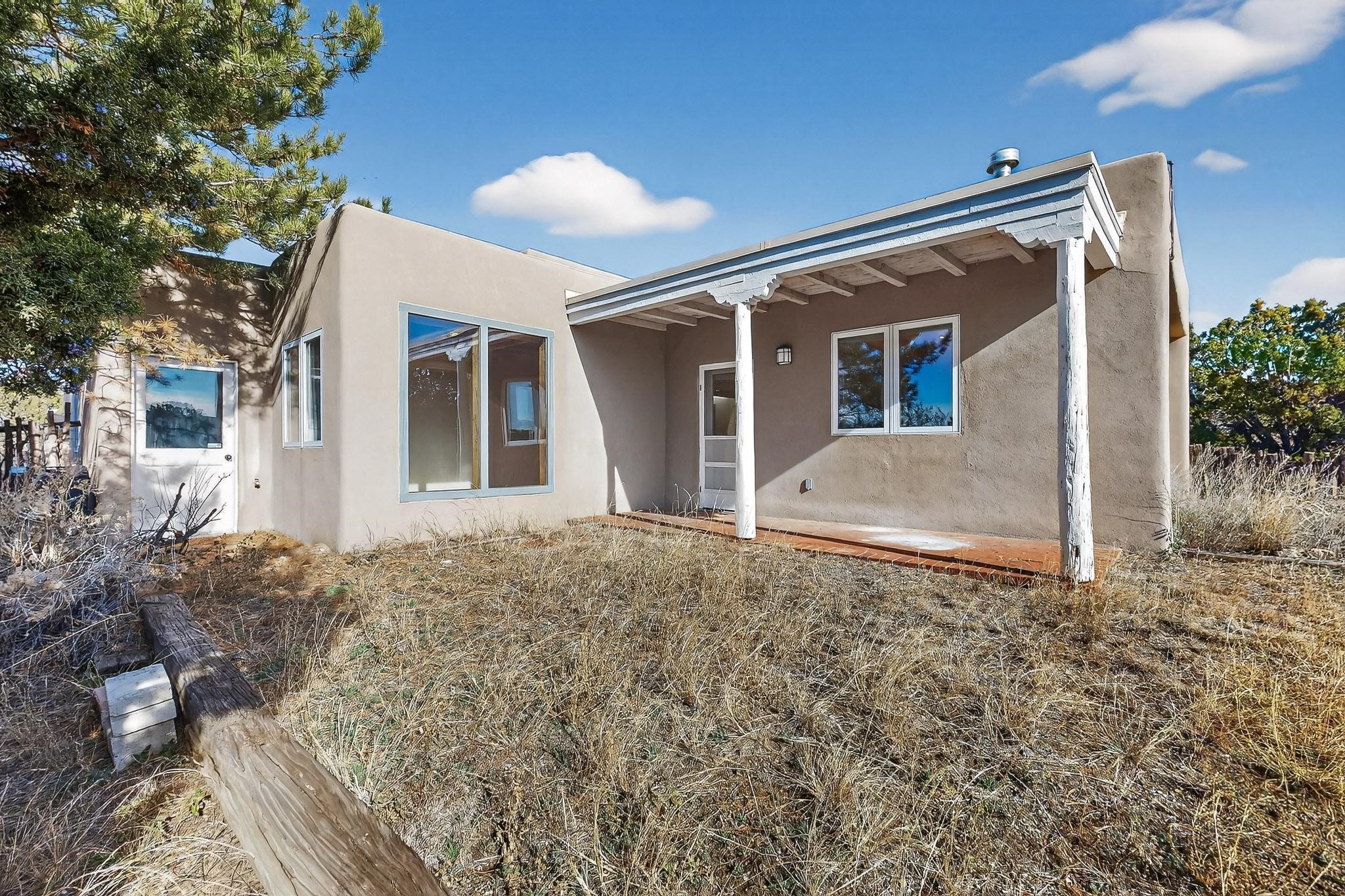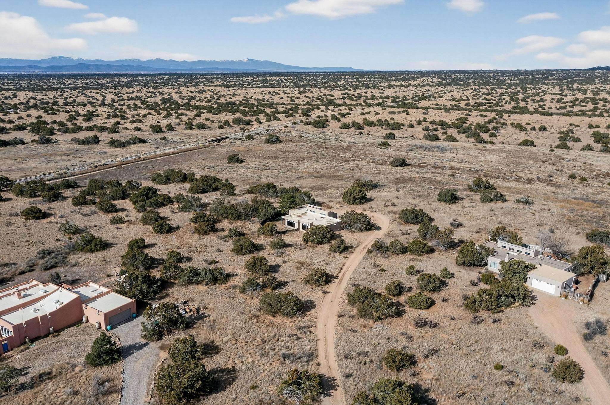 Located on an expansive Eldorado open space this is ideal for the night sky and naturalist enthusiast. Lovely traditional open plan, 1840sf passive solar design built by James Garton in 1990. The sunny split bedroom floorpan provides excellent separation for the main bedroom from the two guest bedrooms plus there is also a separate studio/den. Gleaming Santa Fe style saltillo tile and brick floors and beam ceilings throughout most rooms. Long south facing windows replaced in 2020, bring in the winter heat with overhangs adding shade in the summer.. A new TPO roof was installed in 2022. All appliances have been replaced in the last 5 years, and the hot water heater was replaced in 2020. There is a whole house filtering system, and a private front view brick patio added in 2021. here is an oversized 2 car garage plus plenty of guest parking. This home is accessed by paved roads and is within easy reach of Eldorado amenities, local shopping, schools, library and the senior center, only minutes into Santa Fe.