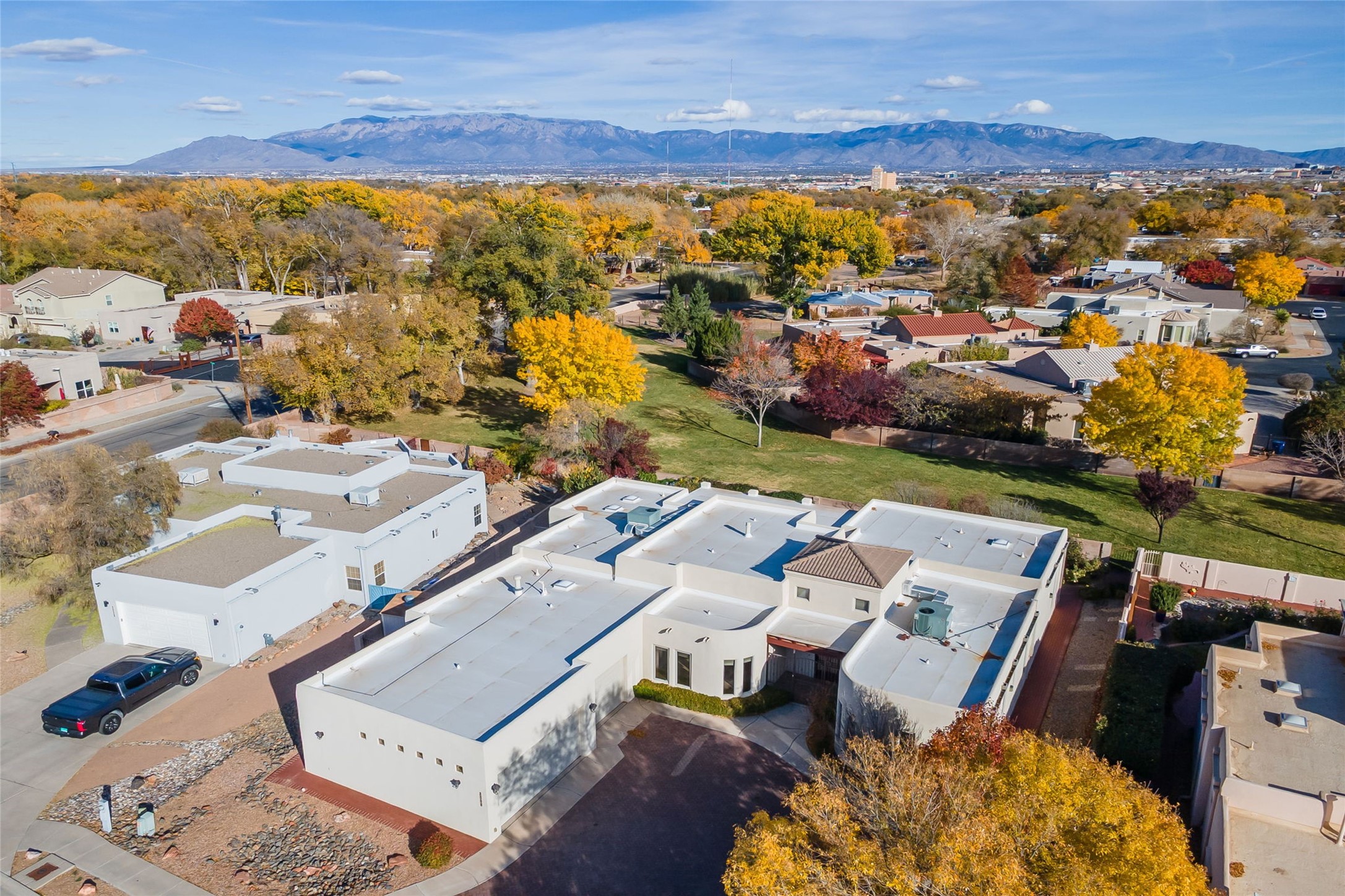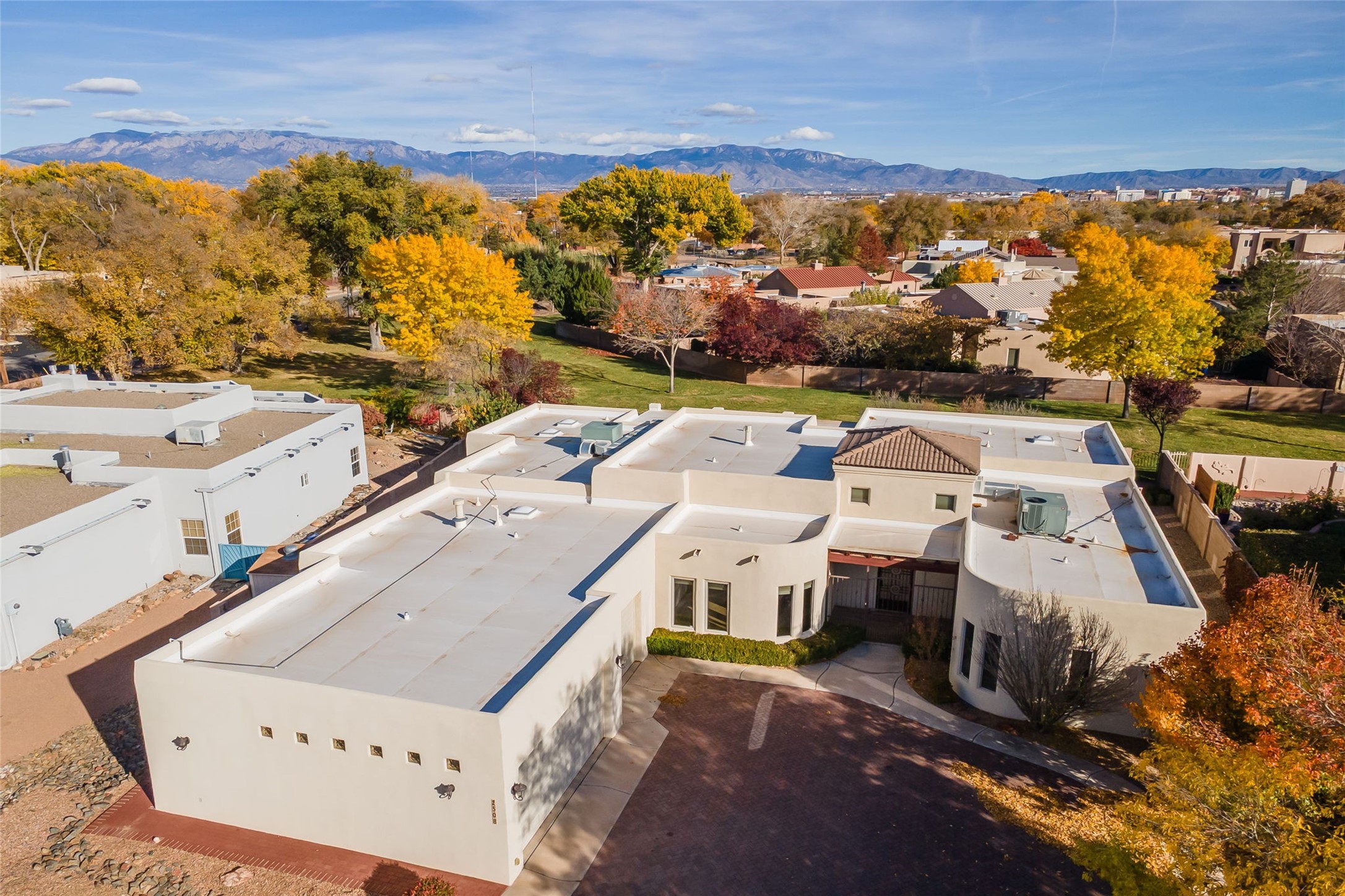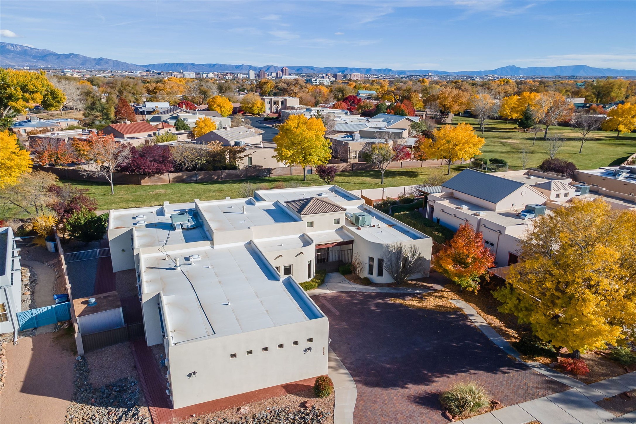 One level, 3,514 sq. ft. 3 bed + home office, Separate Dining, Living + Den. Meticulously maintained with 3-car Garage. Brand new HEIL HVAC package units for heat and refrigerated air January 2026. Roof tune up December 2025. Ready to move in! Located in the gated Gardens on the Rio Grande community in the heart of Old Town, this beautifully maintained single-story ADA friendly home offers a rare blend of comfort, quality, and timeless style. The floorplan flows easily from room to room, giving each space purpose while still creating an open, welcoming feel.Travertine flooring runs throughout the home and sets a warm, upscale tone. The living room and separate den give you two distinct gathering spaces--perfect for entertaining or simply spreading out. A dedicated home office provides a quiet place to work. while the formal dining room is designed for dinners, celebrations, and everyday enjoyment.The kitchen sits at the center of it all with great connectivity to the main living spaces, making hosting effortless. Natural light fills the rooms, and the thoughtful layout gives the home a calm, spacious character.The primary suite rests in its own private wing and offers generous space and direct access to the lush backyard. Two additional bedrooms are well-sized and separate from the main suite, giving guests or family members their own privacy. Indoor outdoor dining on the extended covered backyard patio. Tiled flooring brings an elevated experience to outdoor living while the well designed landscape adds visual colorful appeal.This property has had only one owner and it truly shows in the level of care. Recent improvements such as the newer TPO roof and updated stucco add modern reliability to the home's classic charm. The oversized three-car garage is a standout feature.Premium lot designed with direct access to the neighborhood's open-space park, a special amenity for daily walks or easy outdoor relaxation.