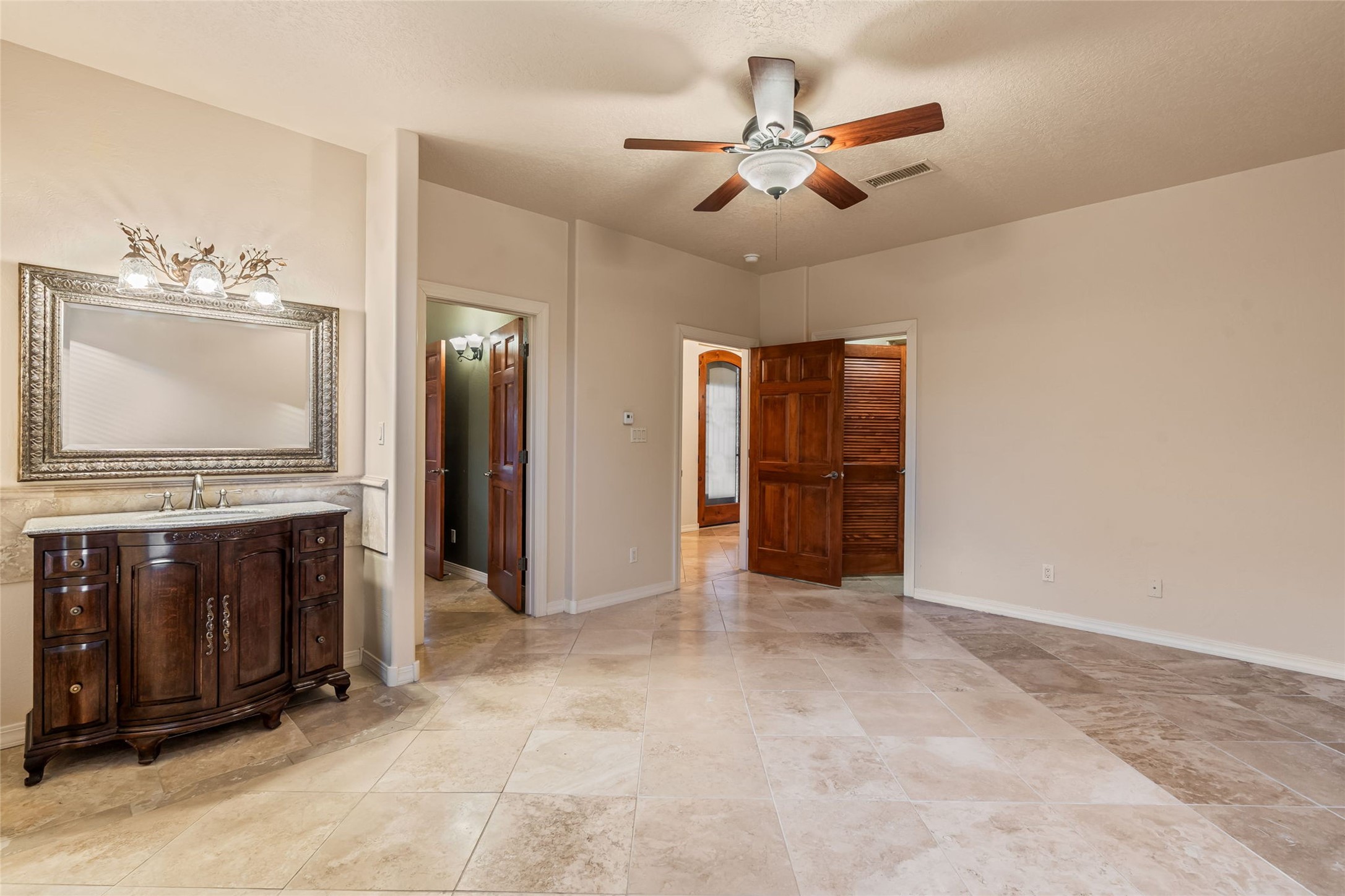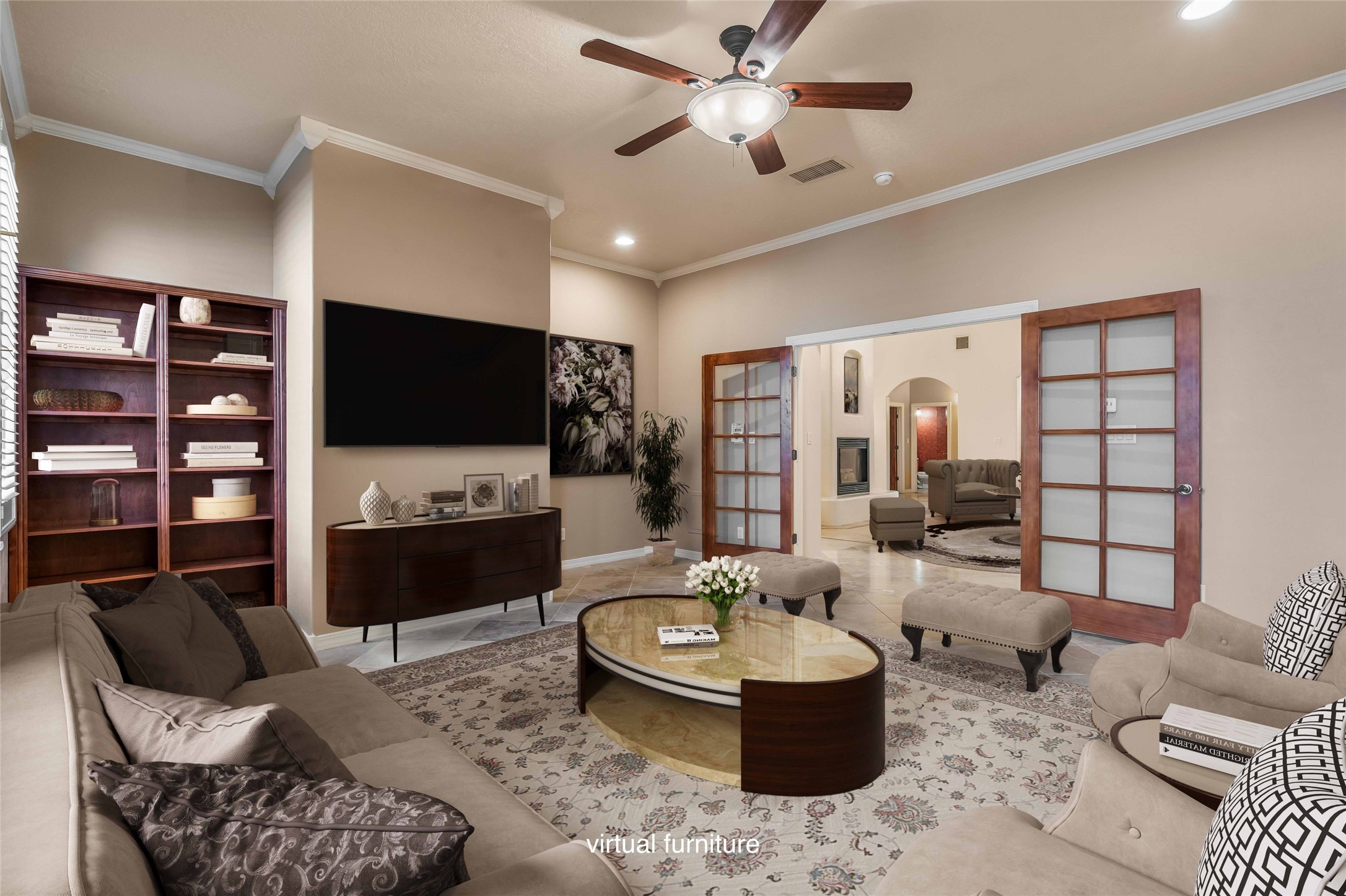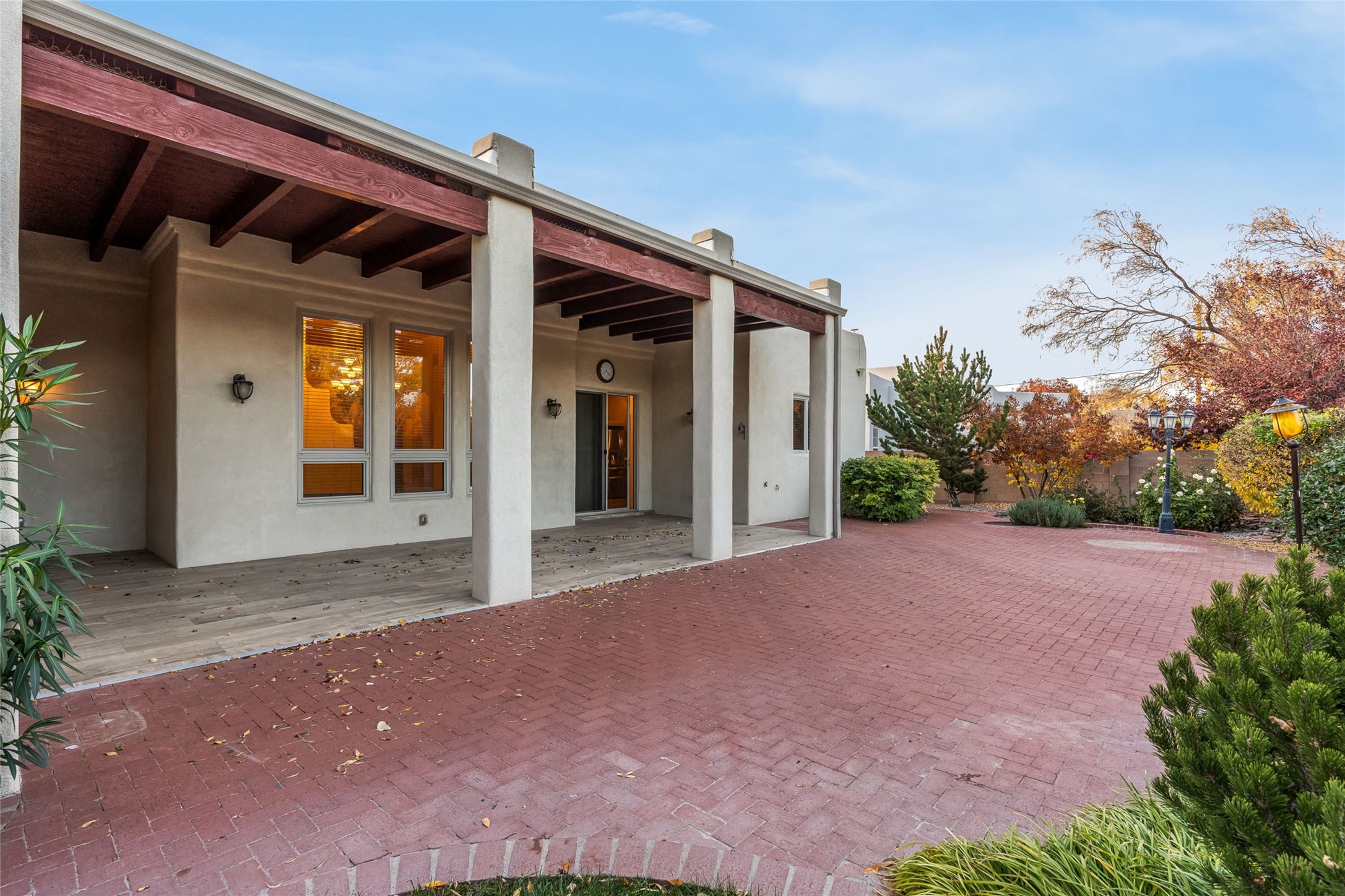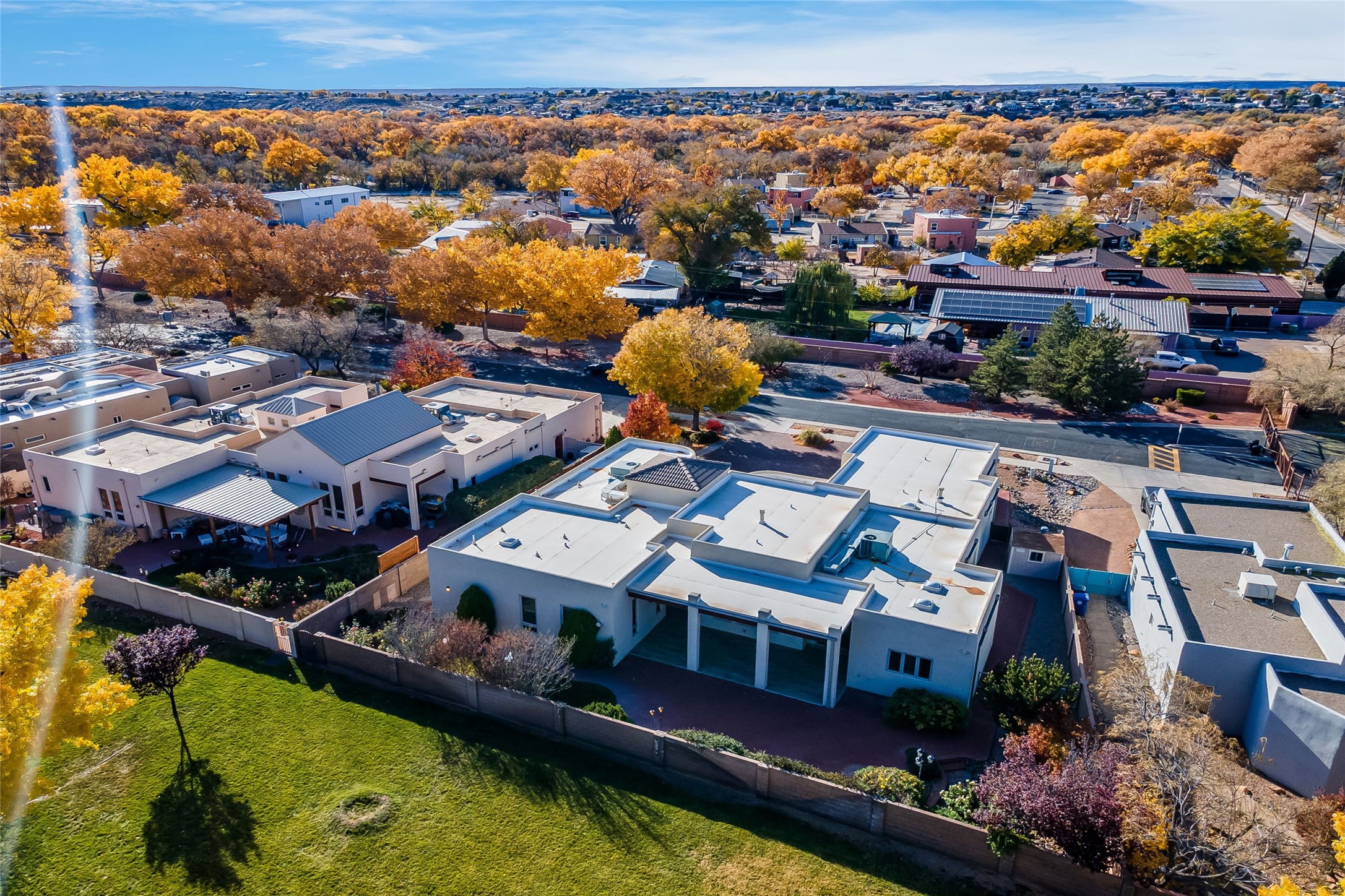 One level, 3,514 sq. ft. 3 bed + home office, Separate Dining, Living + Den. Meticulously maintained with 3-car Garage. Brand new HEIL HVAC package units for heat and refrigerated air January 2026. Roof tune up December 2025. Ready to move in! Located in the gated Gardens on the Rio Grande community in the heart of Old Town, this beautifully maintained single-story ADA friendly home offers a rare blend of comfort, quality, and timeless style. The floorplan flows easily from room to room, giving each space purpose while still creating an open, welcoming feel.Travertine flooring runs throughout the home and sets a warm, upscale tone. The living room and separate den give you two distinct gathering spaces--perfect for entertaining or simply spreading out. A dedicated home office provides a quiet place to work. while the formal dining room is designed for dinners, celebrations, and everyday enjoyment.The kitchen sits at the center of it all with great connectivity to the main living spaces, making hosting effortless. Natural light fills the rooms, and the thoughtful layout gives the home a calm, spacious character.The primary suite rests in its own private wing and offers generous space and direct access to the lush backyard. Two additional bedrooms are well-sized and separate from the main suite, giving guests or family members their own privacy. Indoor outdoor dining on the extended covered backyard patio. Tiled flooring brings an elevated experience to outdoor living while the well designed landscape adds visual colorful appeal.This property has had only one owner and it truly shows in the level of care. Recent improvements such as the newer TPO roof and updated stucco add modern reliability to the home's classic charm. The oversized three-car garage is a standout feature.Premium lot designed with direct access to the neighborhood's open-space park, a special amenity for daily walks or easy outdoor relaxation.