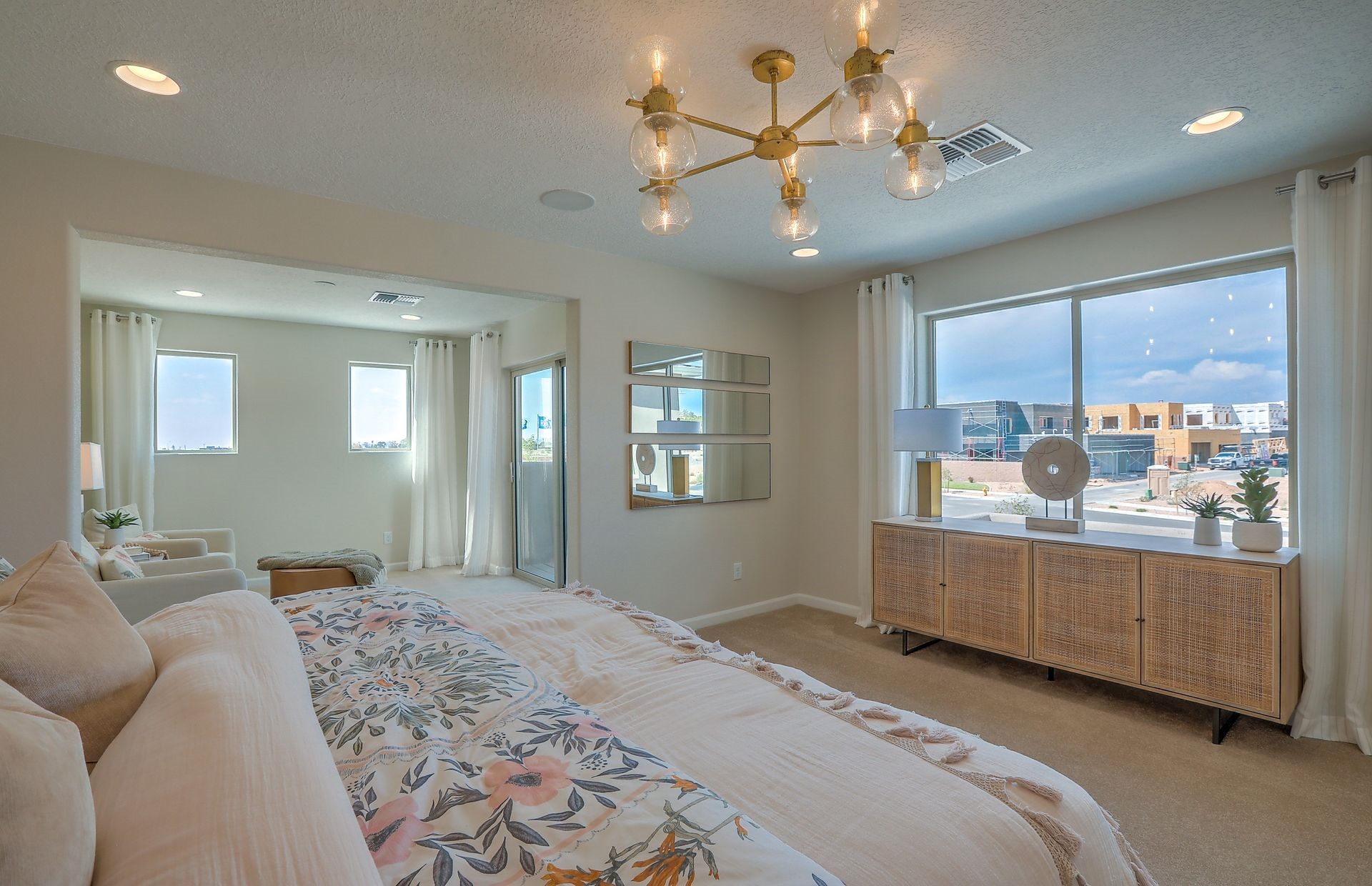 This brand new home has never been lived in and is ready in February for move in! This luxury townhome features a nice corner homesite giving you only 1 neighbor. Large owner's suite with owner's retreat with a balcony. Open kitchen with plenty of counter space and large kitchen island. Situated in a prime Santa Fe location, close to every convenience. Low maintenance living at its finest. Easy commute to anywhere and just 3 minutes to interstate 25