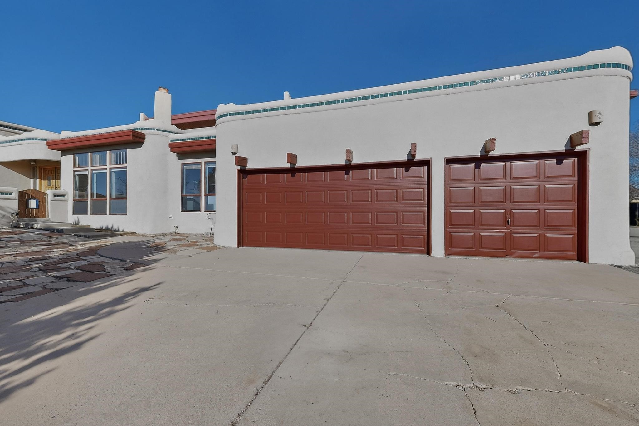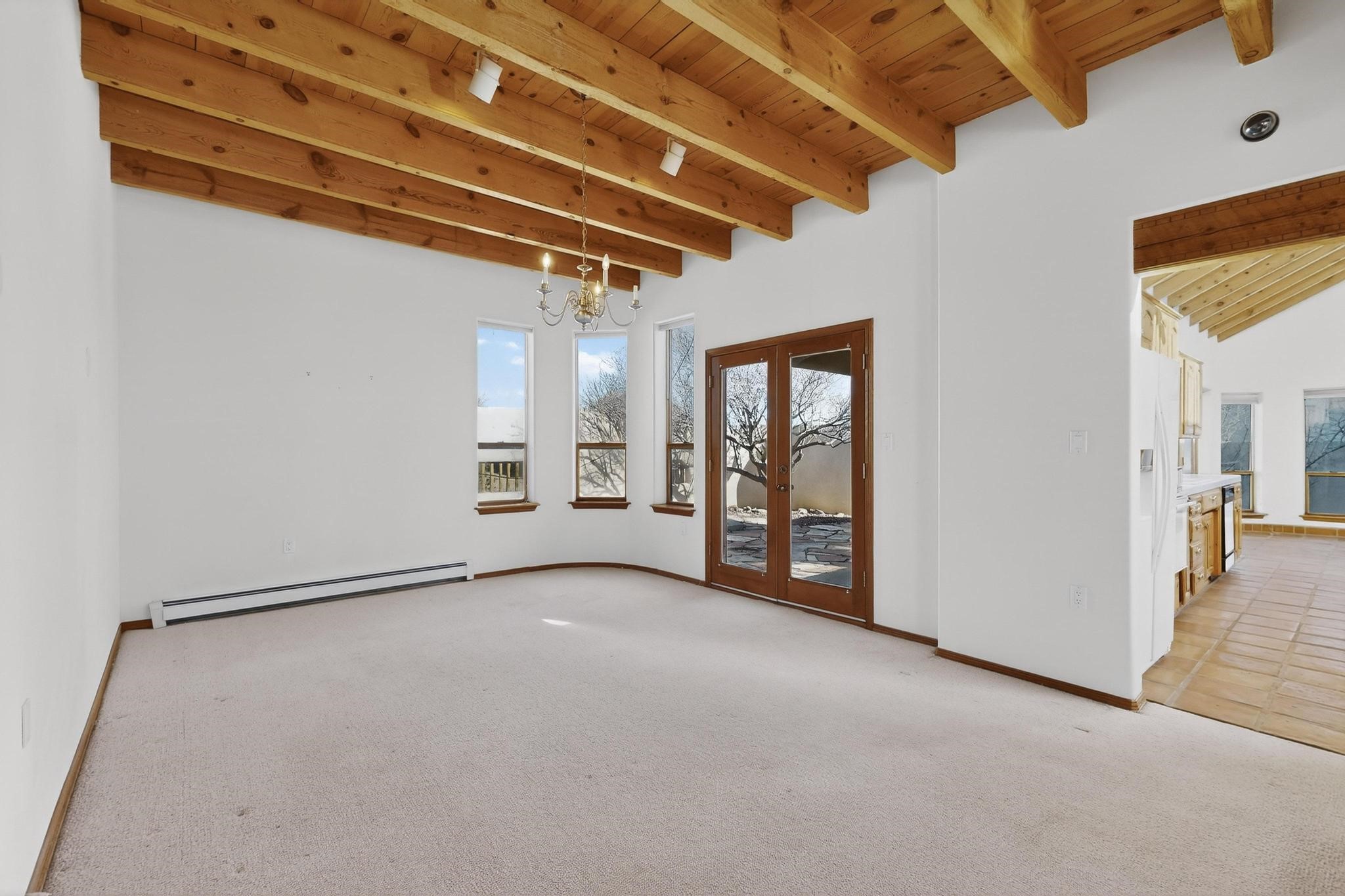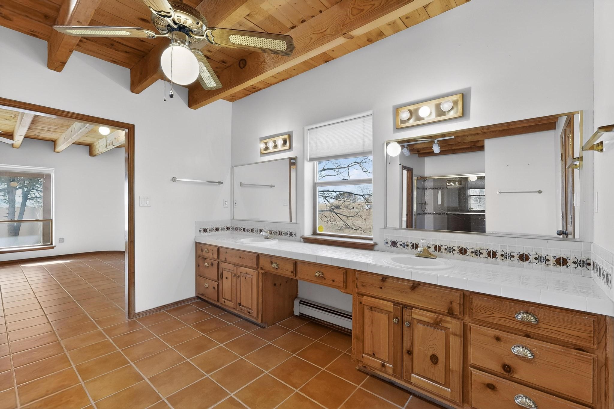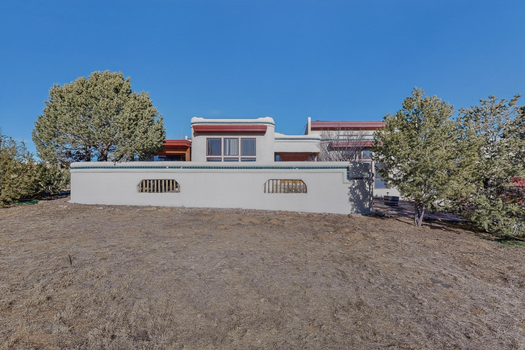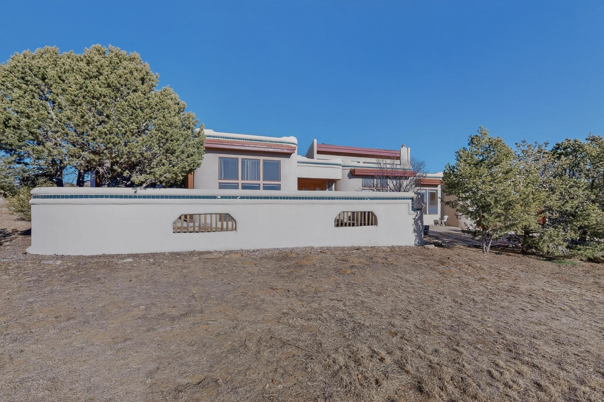 "Dear buyers, please don't let my blemishes and wrinkles scare you. With some love and attention, I can be a safe comforting haven for your family. My bones are good as are the special features of me. Love, 3 Solano Court."Remarkable opportunity to obtain a 3963sf multi generational 4 bedroom home in Eldorado. Born with a passive solar design and high ceilings with deep southern glazing this home is full of sunlight. Saltillo tile floors, beam and viga ceilings, high clerestories, nichos, 2 kiva fireplaces, mini splits and a brand new roof, this contemporary pueblo home is amazing. A spacious country style kitchen with large breakfast bar and breakfast nook will accommodate plenty of family entertainment. There is an adjoining family room, sunken living room and a formal dining room/den off the kitchen. the owners suite features a spacious bathroom and walk in closet, plus there are 3 guest bedrooms with a 3/4 and full bath. The laundry includes a tub and plenty of extra storage. On going through the 3 bay garage you can enter the studio/guest wing which includes a 2 large rooms, bath and a separate 4th garage. A walled private flagstoned courtyard and portal in front and to the rear offer plenty of outside enjoyment. The paved driveway also includes plenty of guest parking. This home is within easy reach of the Eldorado Community Center amenities, local shopping, school, library and senior center, and only minutes into Santa Fe.