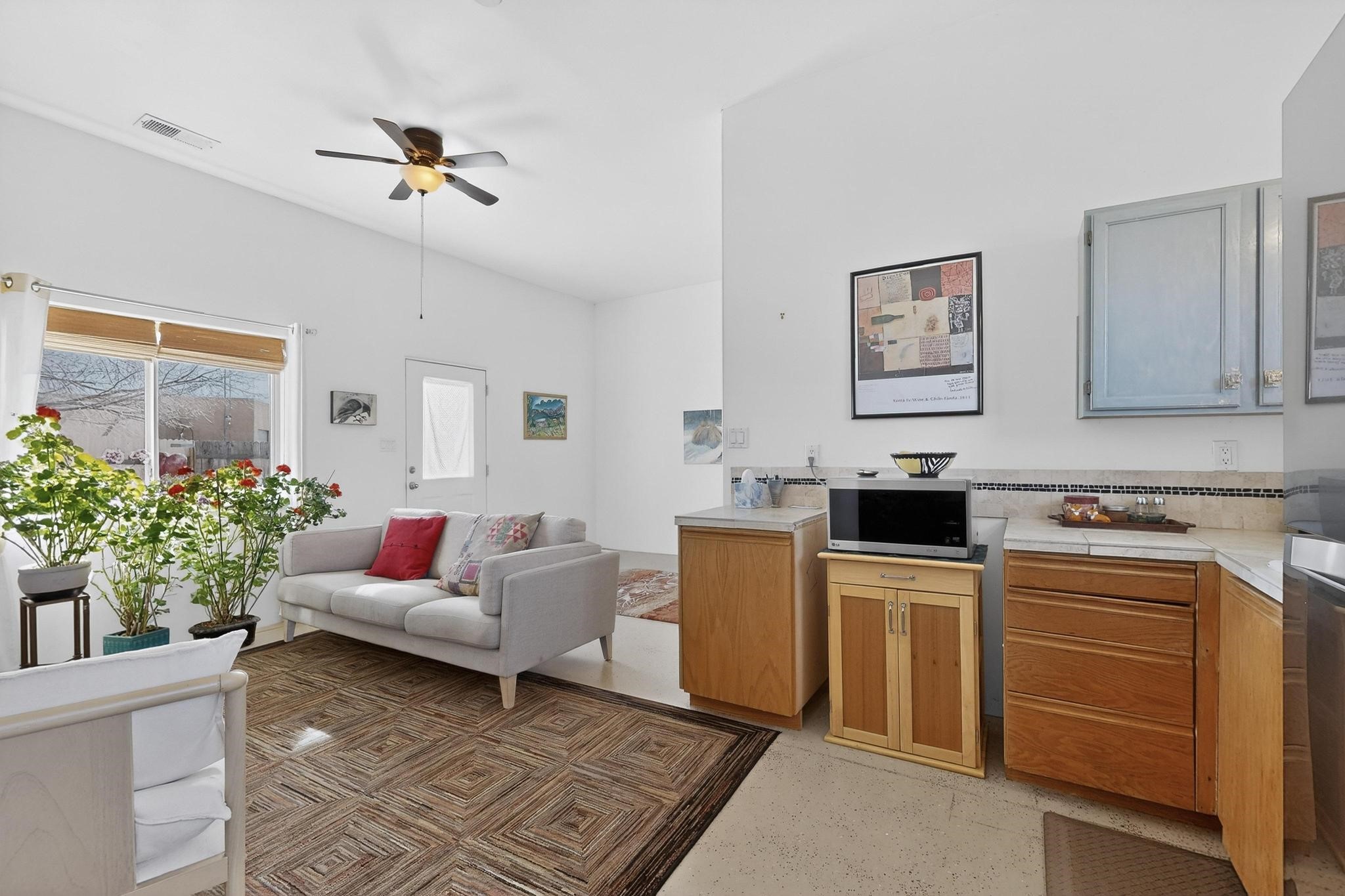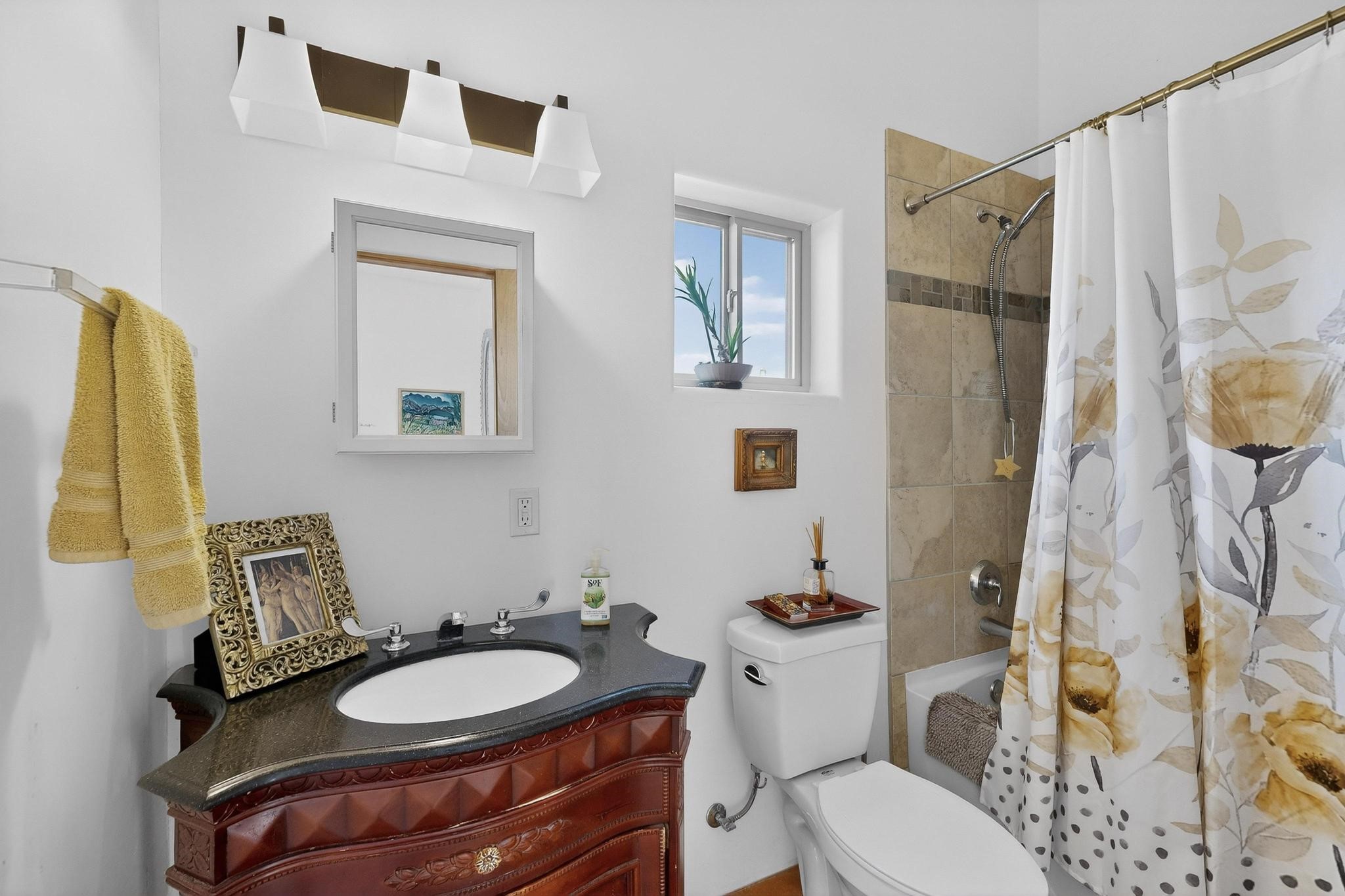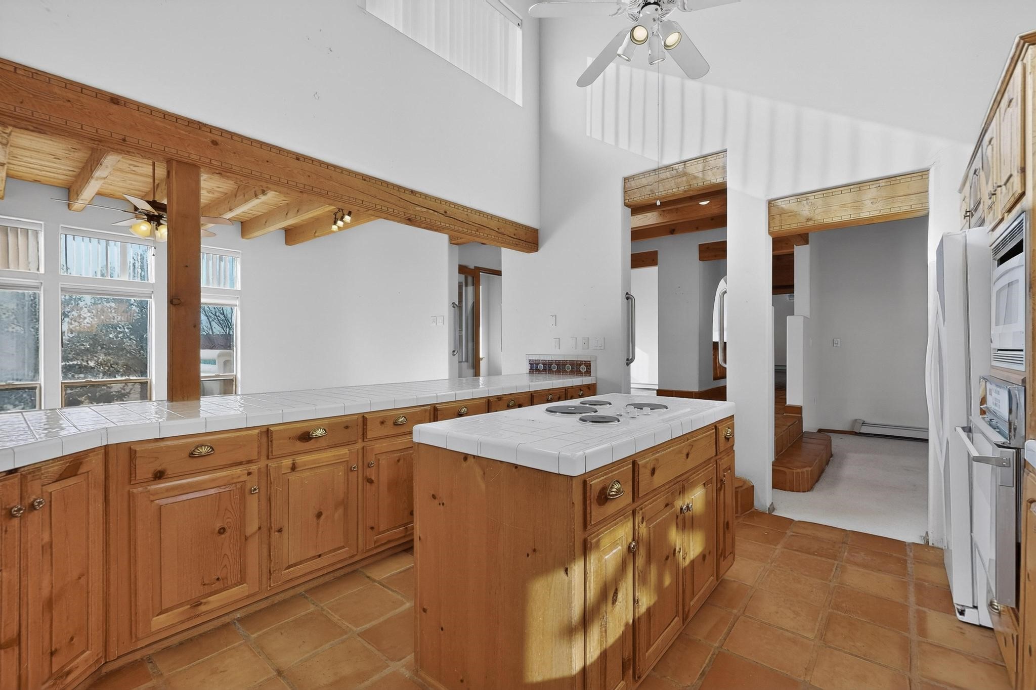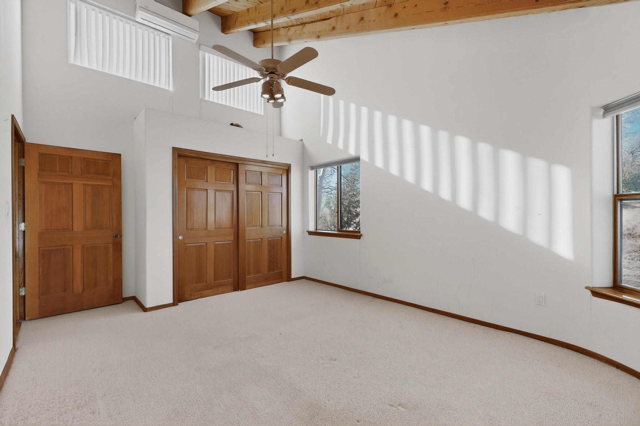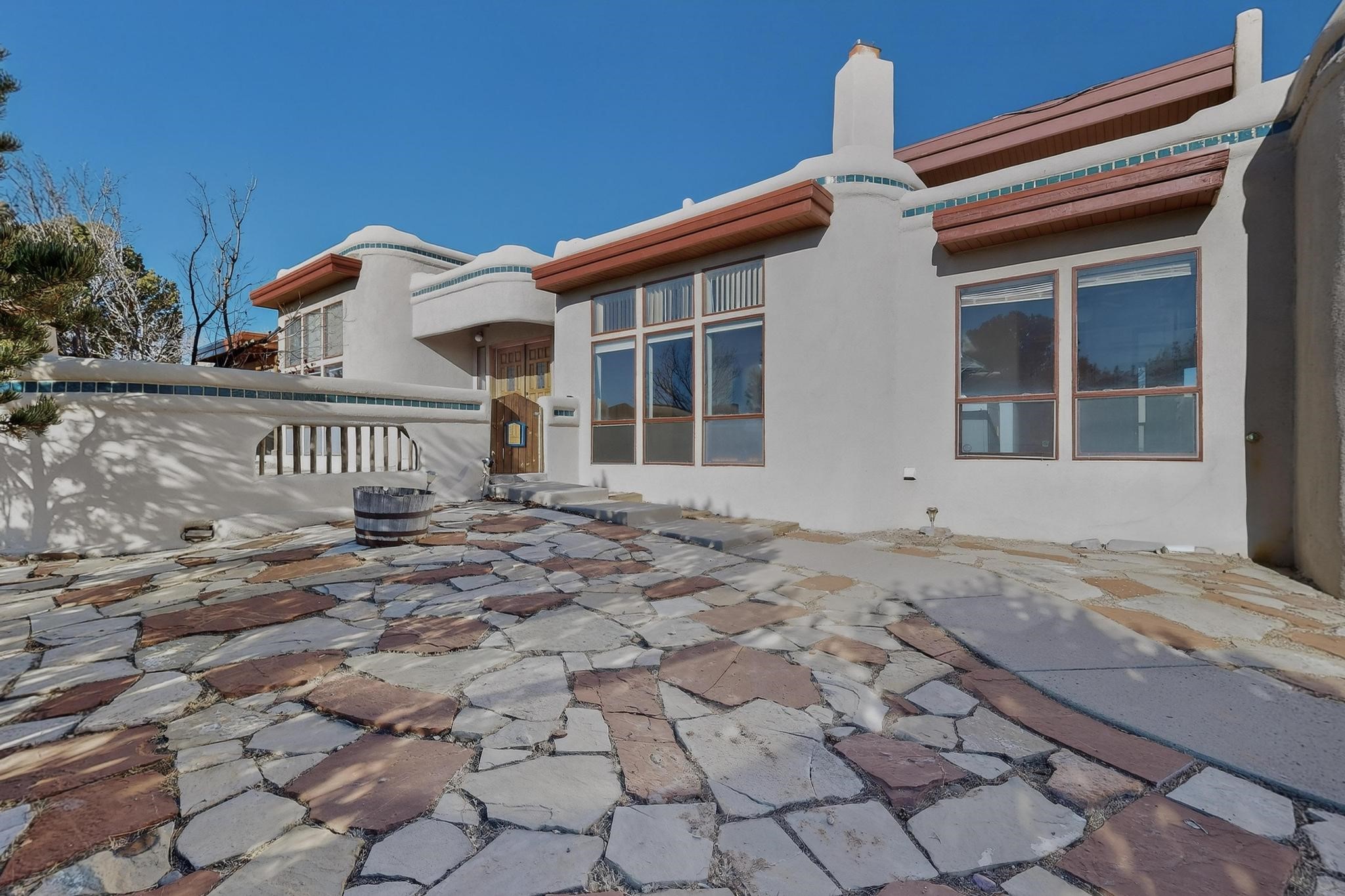 "Dear buyers, please don't let my blemishes and wrinkles scare you. With some love and attention, I can be a safe comforting haven for your family. My bones are good as are the special features of me. Love, 3 Solano Court."Remarkable opportunity to obtain a 3963sf multi generational 4 bedroom home in Eldorado. Born with a passive solar design and high ceilings with deep southern glazing this home is full of sunlight. Saltillo tile floors, beam and viga ceilings, high clerestories, nichos, 2 kiva fireplaces, mini splits and a brand new roof, this contemporary pueblo home is amazing. A spacious country style kitchen with large breakfast bar and breakfast nook will accommodate plenty of family entertainment. There is an adjoining family room, sunken living room and a formal dining room/den off the kitchen. the owners suite features a spacious bathroom and walk in closet, plus there are 3 guest bedrooms with a 3/4 and full bath. The laundry includes a tub and plenty of extra storage. On going through the 3 bay garage you can enter the studio/guest wing which includes a 2 large rooms, bath and a separate 4th garage. A walled private flagstoned courtyard and portal in front and to the rear offer plenty of outside enjoyment. The paved driveway also includes plenty of guest parking. This home is within easy reach of the Eldorado Community Center amenities, local shopping, school, library and senior center, and only minutes into Santa Fe.