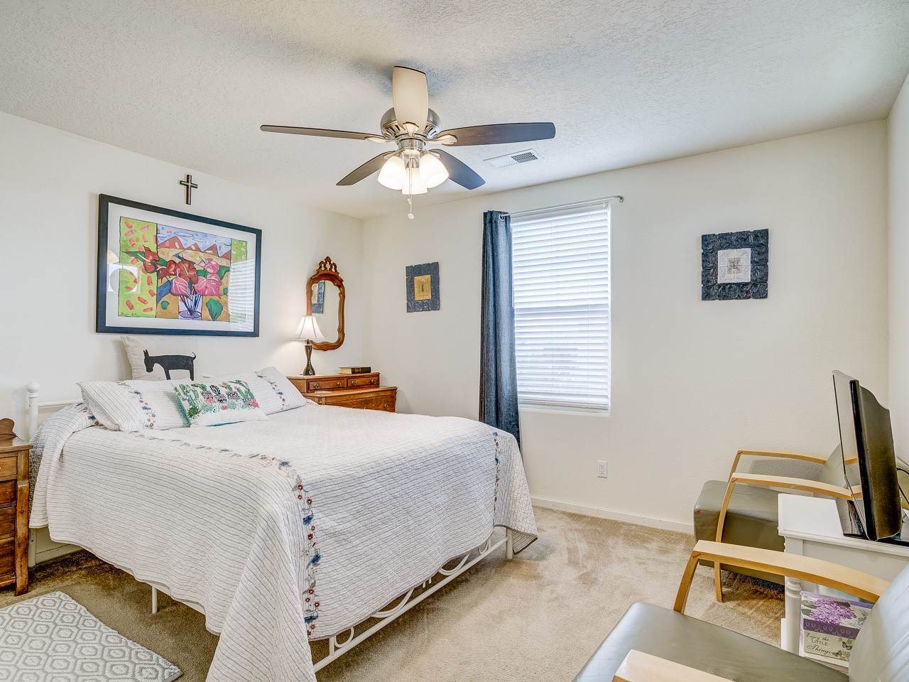 Discover the charm of Santa Fe living at 15 Via Sagrada, a delightful, lovingly maintained 2-bedroom, 1-bathroom single-family home located in the desirable La Entrada of Rancho Viejo community. Featuring a an open-concept design, this property offers a perfect blend of subtle finishes and inviting living spaces. The interior is nicely lit and centered around a cozy gas kiva fireplace, ideal for embracing the unique Santa Fe ambiance. Silicon GACO Roof Coating was applied in November 2025 and comes with a 6 year transferable labor and material warranty! Enjoy sunrise views from the backyard patio! This home is an excellent choice for a first-time buyer, a potential investment property, or a low-maintenance home base for those who love to travel. Over 50% of the Rancho Viejo community is dedicated to natural open space and parks, with miles of paved multi-purpose trails. Just minutes from the Santa Fe Community College, IAIA, shopping, restaurants, and Presbyterian Medical Center. Easy access to Hwy 599, Interstate 25 and a Railrunner Station. Move right in and enjoy the Santa Fe lifestyle!