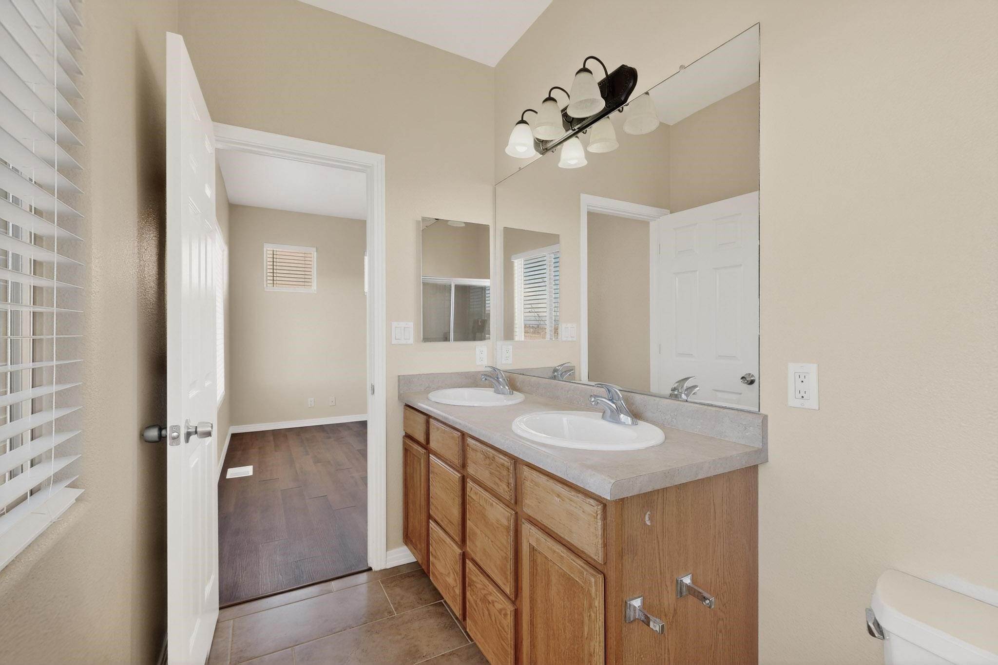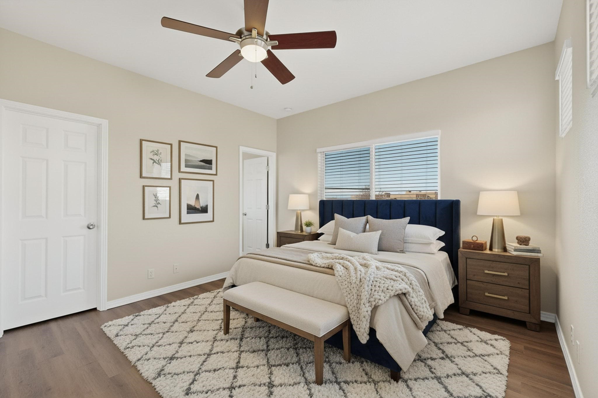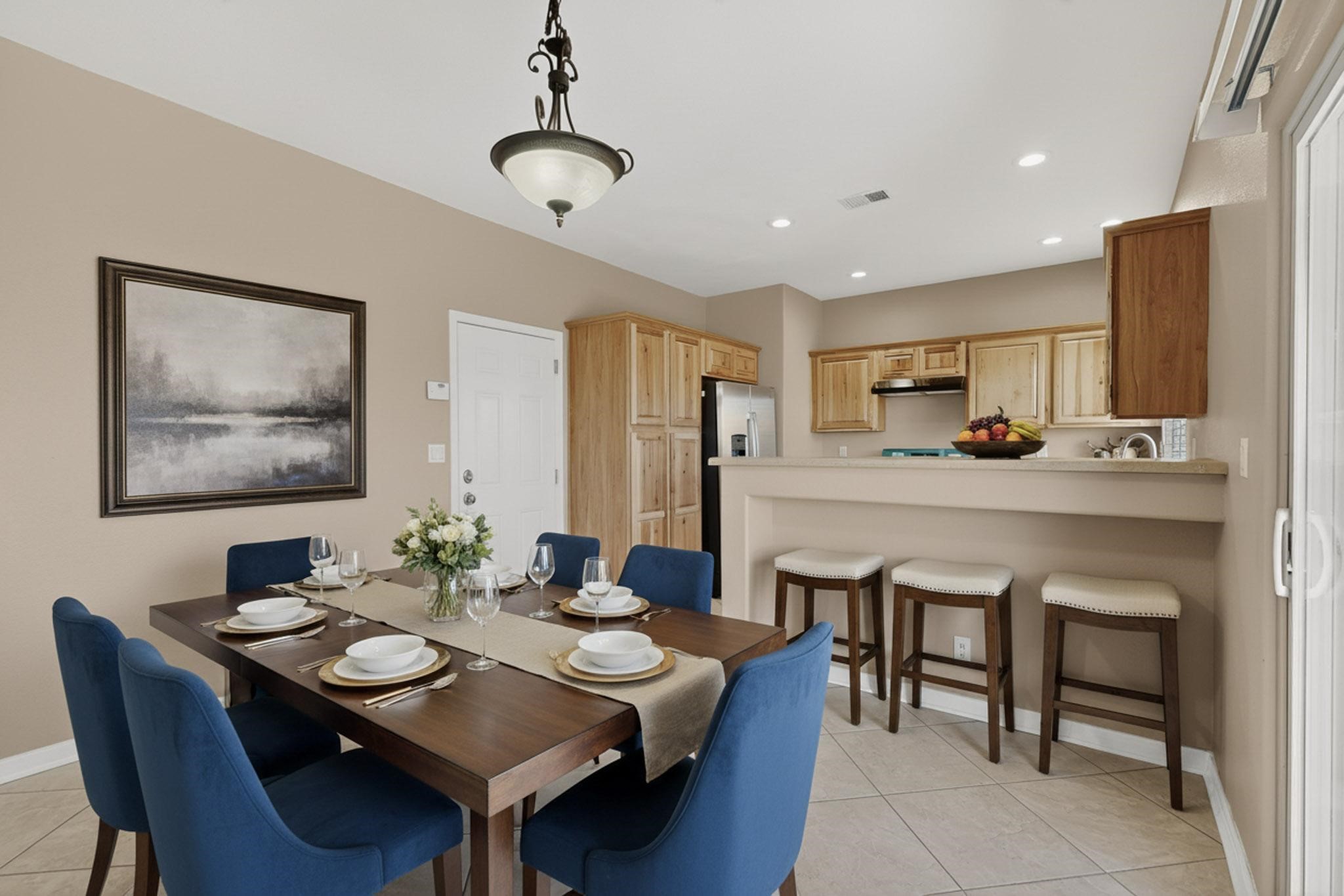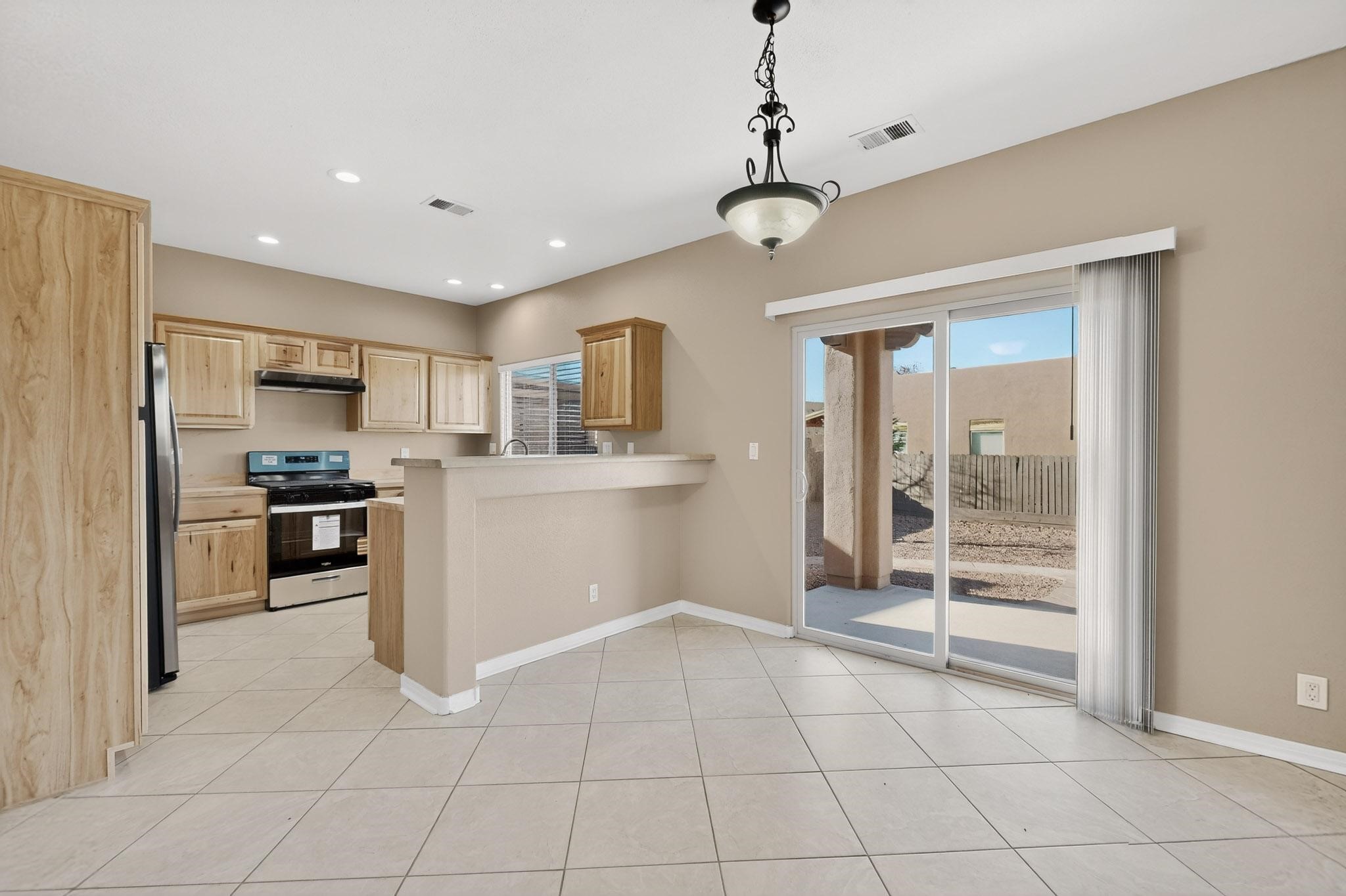 Welcome to this beautifully updated 5-bedroom, 2.5-bathroom home offering modern comfort and move-in-ready appeal! Step inside to discover fresh new flooring throughout, complemented by a brand-new paint job that brightens every room. The kitchen features sleek NEW cabinets, countertops, a refrigerator, and stove--perfect for everyday living and entertaining. Outside, the curb appeal shines with NEW exterior paint, fresh xeriscape landscaping design, and freshly stained wood fencing for added privacy. The finished garage also boasts durable NEW epoxy flooring. Recent mechanical upgrades ensure peace of mind: a new water heater (less than 2 years old), new air conditioning and condenser (less than 3 years old), and a roof replaced with premium silicone foam approximately 5 years ago, backed by a 10-year guarantee from the installation date.