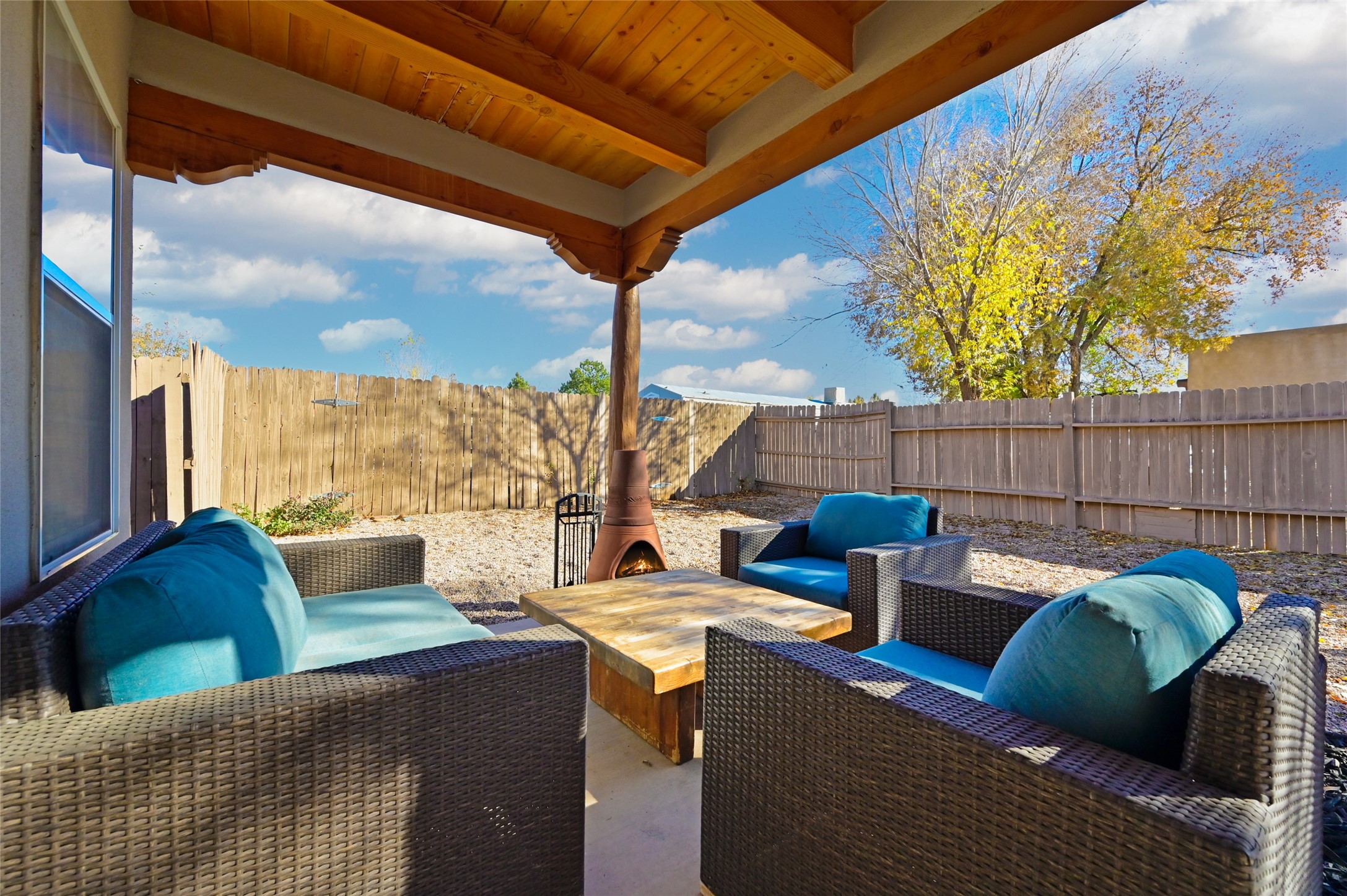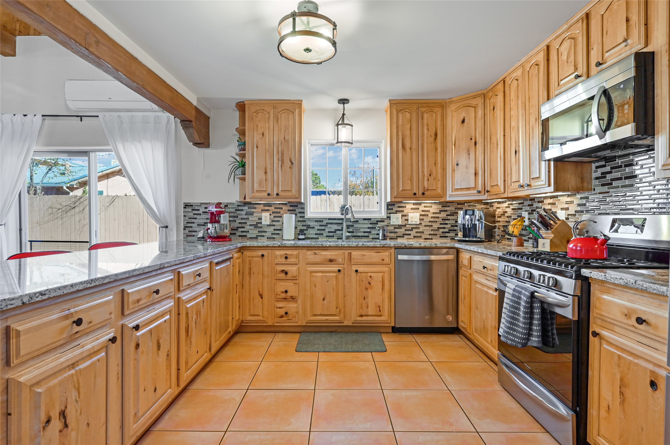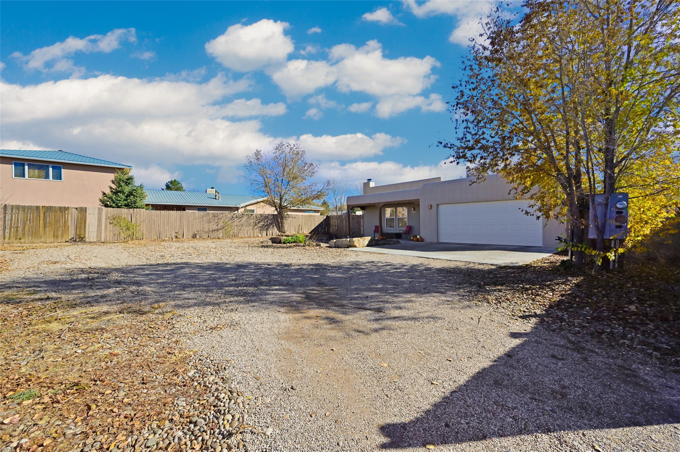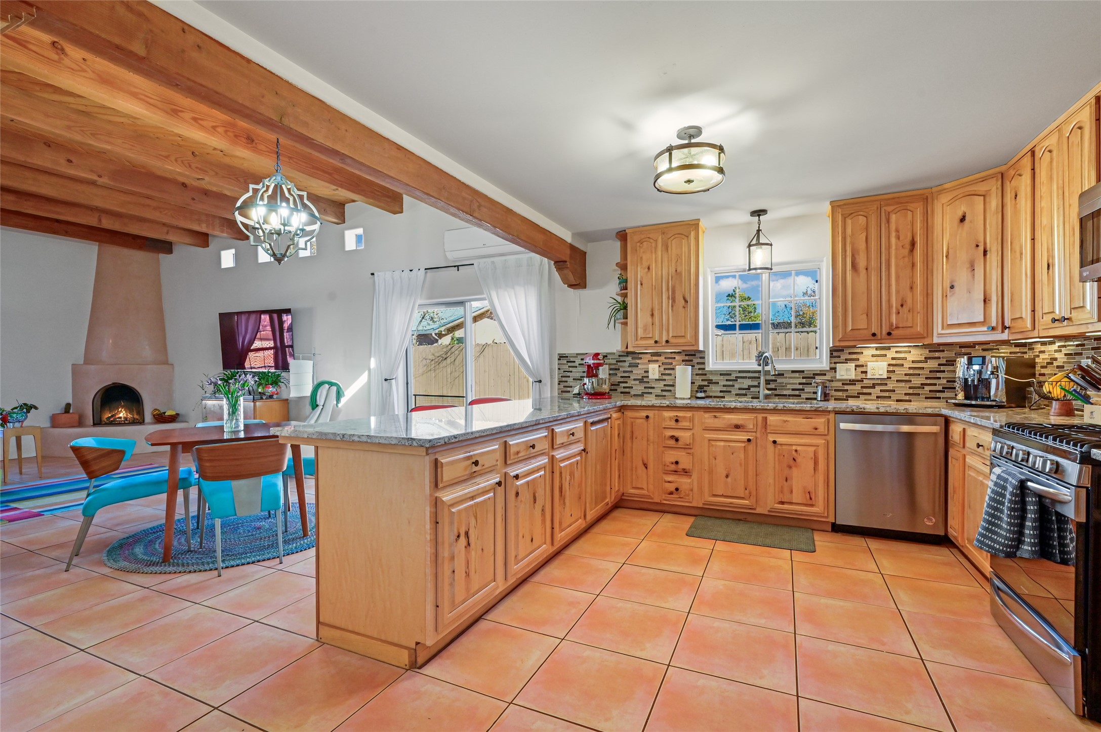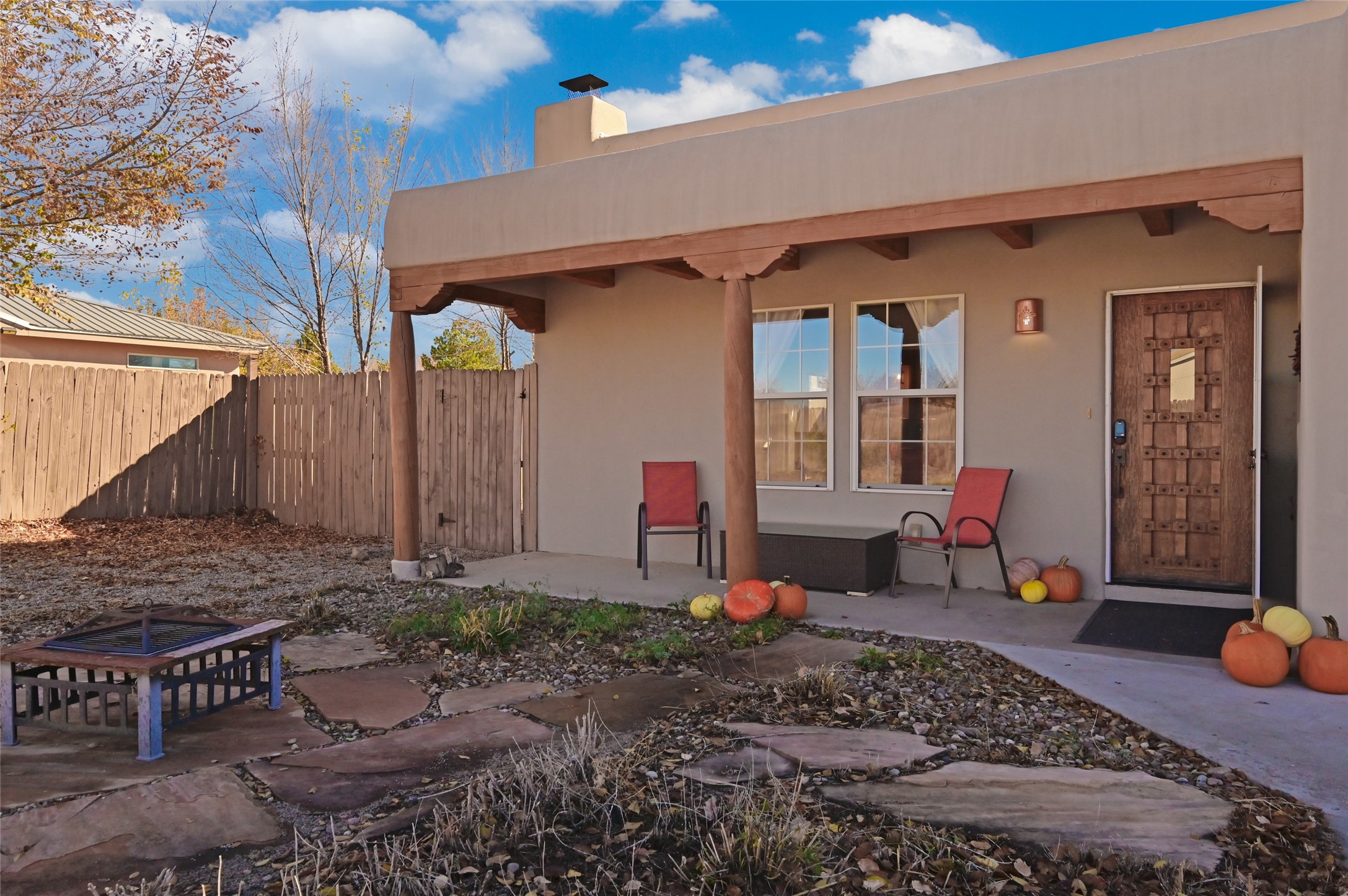 You will be delighted the minute you walk into this move in ready gem. Loaded with Santa Fe style, yet with all the modern touches, tile floors, mini-splits, granite counters, SS appliances. The open flow from living area to dining room and kitchen is perfect for gatherings with family and friends. The Owner's suite and oversized second bedroom are situated allowing for access to enjoy the backyard covered patio. The location is central to trails, shopping, the plaza, and fine dining, and located just down the street you can enjoy the neighborhood park. Once you see this home, I think you will agree it has a lot to offer.