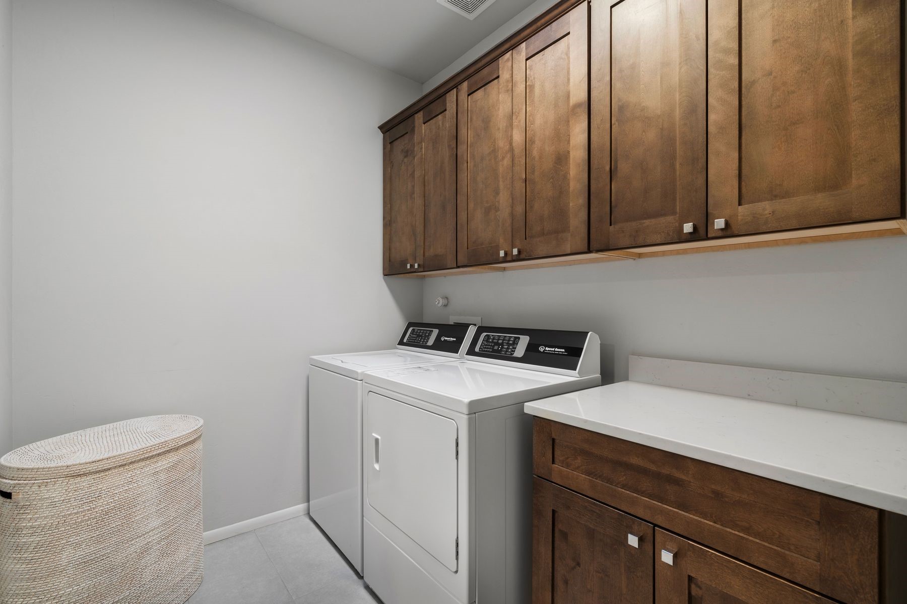 Bathed in soft natural light, this refined single-level contemporary residence artfully blends warm, sophisticated finishes with sweeping vistas of the Sandia and Jemez Mountains. The open-concept living and kitchen spaces flow seamlessly, creating an atmosphere that is both elegant and welcoming. Expansive sliding glass doors extend the living experience to a generous covered portal--an ideal setting for tranquil evenings and effortless indoor-outdoor living.The primary suite is a serene sanctuary, featuring a spa-inspired bath with a deep soaking tub, dual vanities, and a walk-in closet thoughtfully connected to the laundry room for everyday ease. Two well-separated en-suite guest bedrooms offer privacy and comfort, each finished to the same elevated standard found throughout the home.Thoughtful design details abound, including curated tile selections, custom window treatments, and a garage outfitted with a Level 2 ChargePoint EV charger--balancing modern convenience with understated luxury. Set in a peaceful setting framed by endless mountain views, this exceptional home offers a daily experience of comfort, beauty, and refined living.