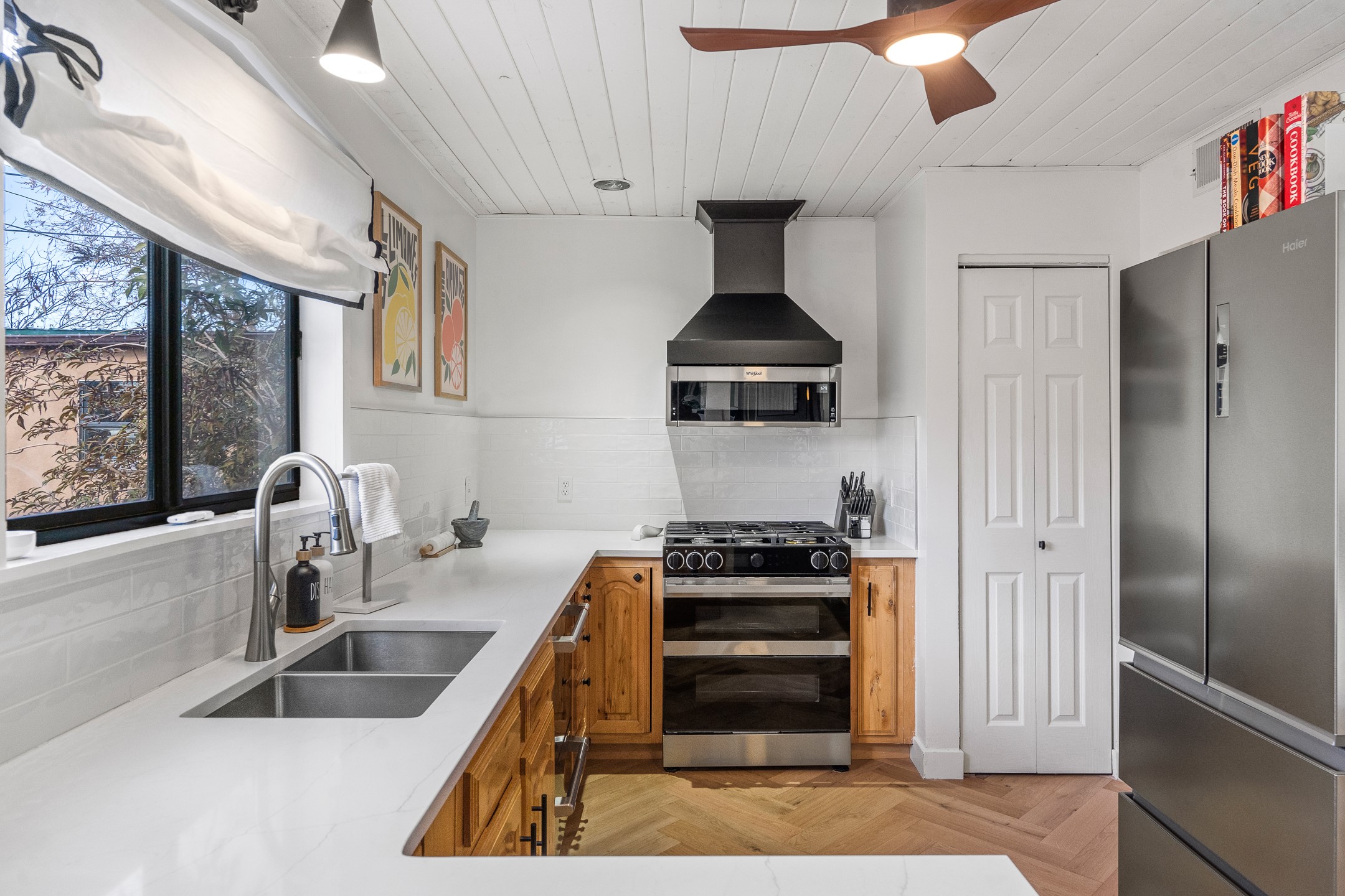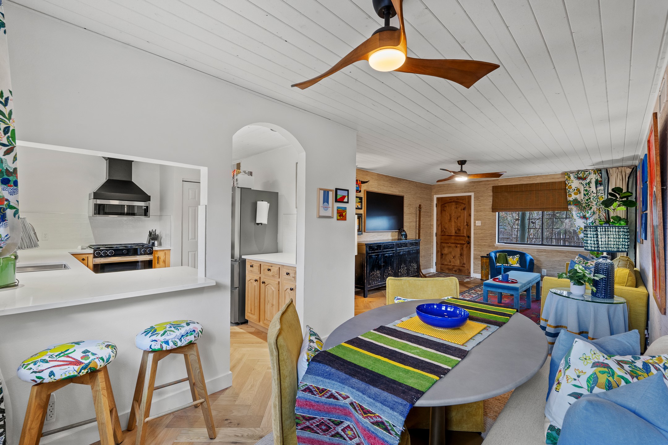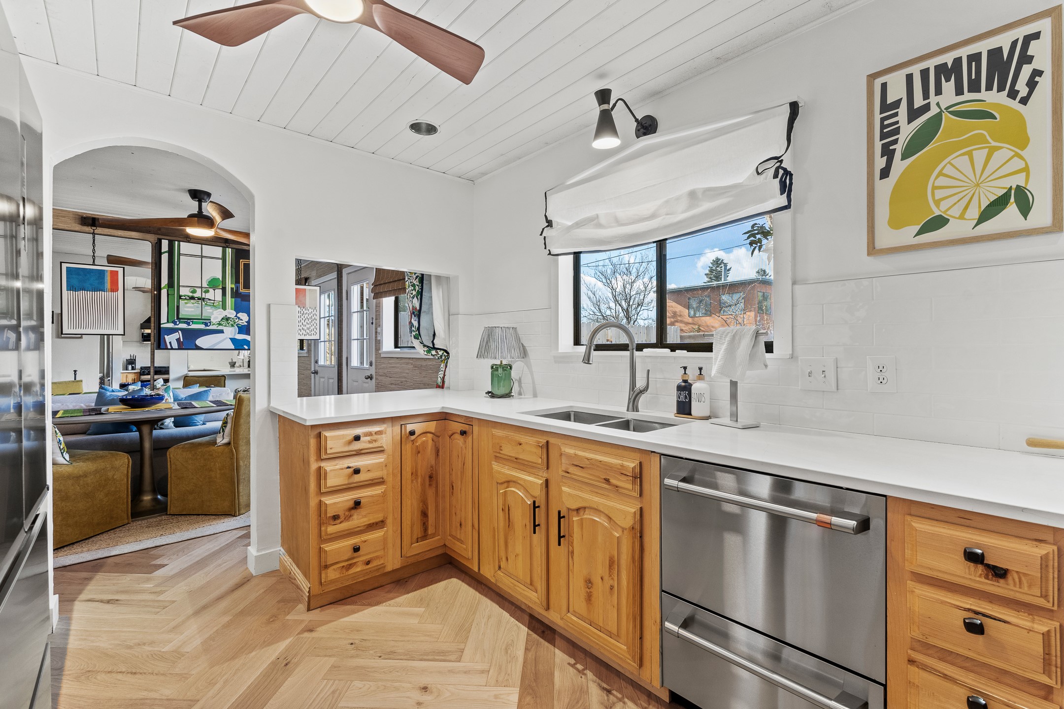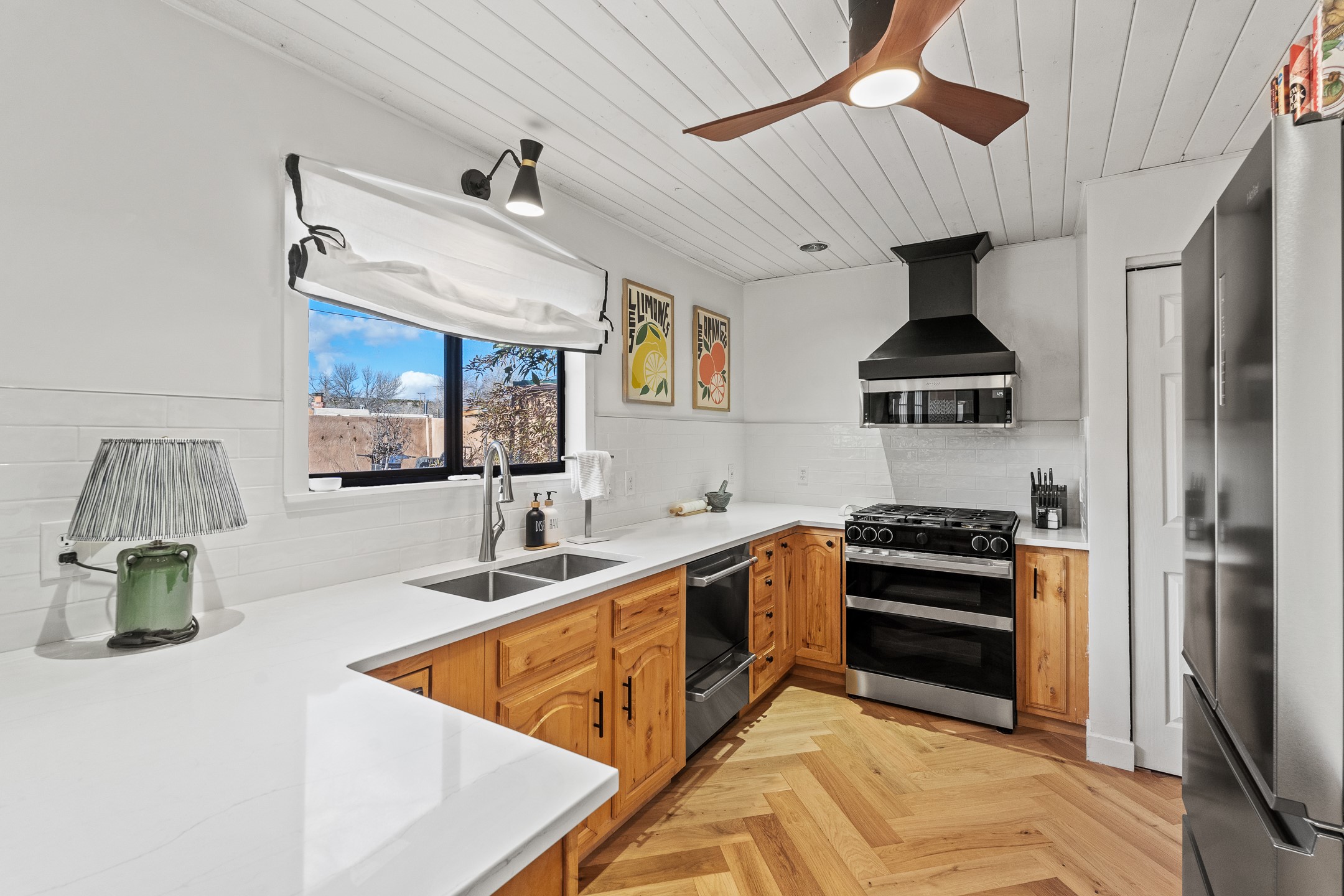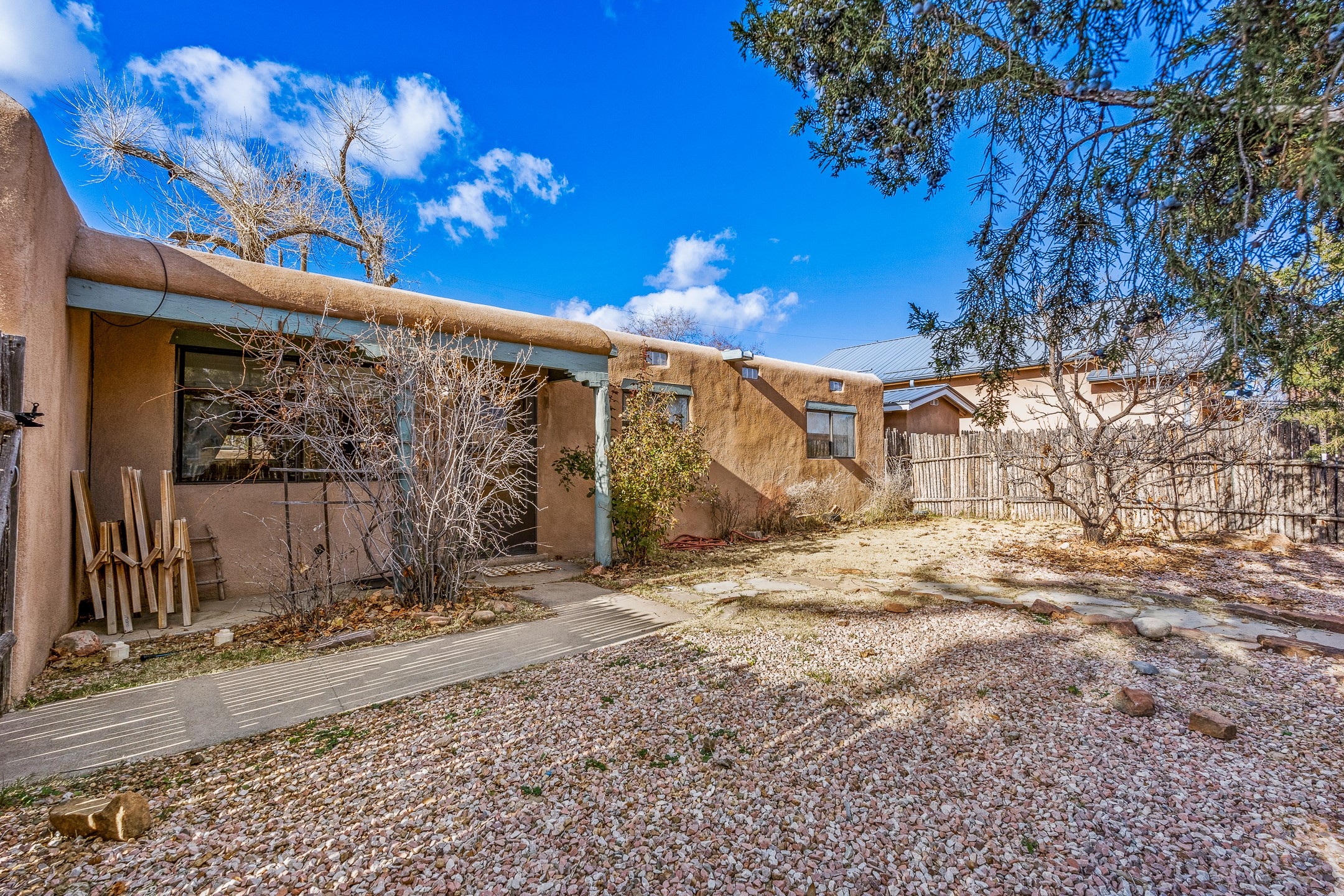 Completely remodeled and stylishly true to its mid-century roots, this three bedroom one bath house in Barrio La Canada with an attached one bed one bath is sure to wow. So much in this house has been improved or upgraded, there's nothing left to do but enjoy. The long list of upgrades includes but is not limited to new HVAC, appliances, kitchen counter tops, doors, flooring, walls and ceilings, as well as a new electrical panel and a roof sealing. The attached casita has its own entrance and yard and is just as charming as the primary. A shed in the back provides extra storage. Two miles from the plaza and short walk from the Santa Fe River, this move in ready home is convenient to everything. Priced at stated value from a recent (November 2025) appraisal.