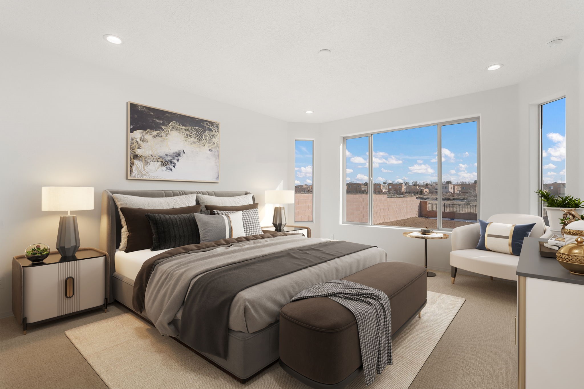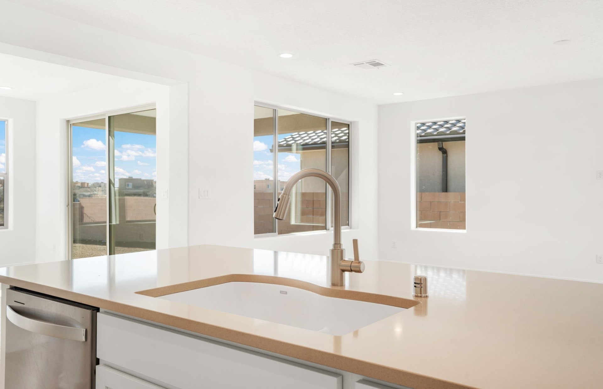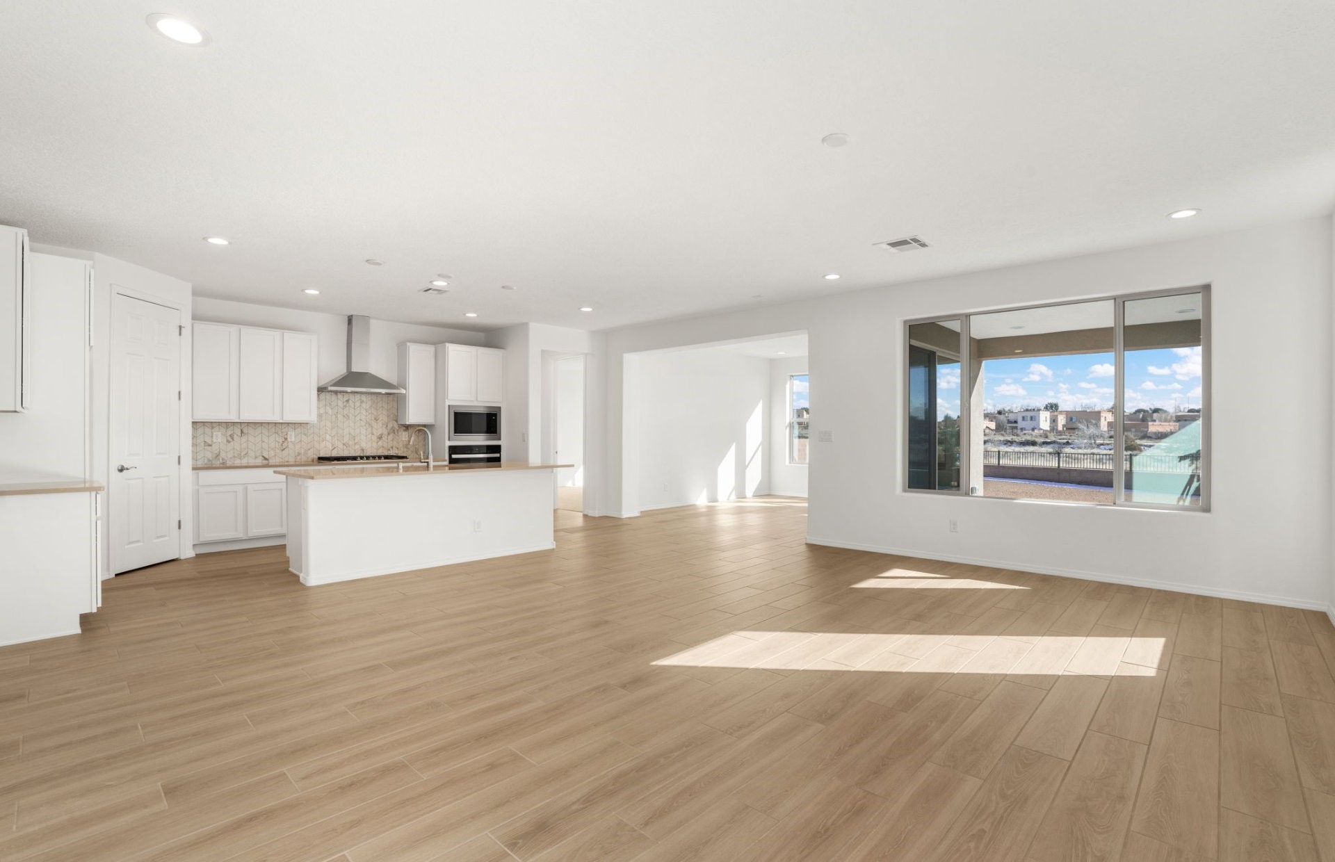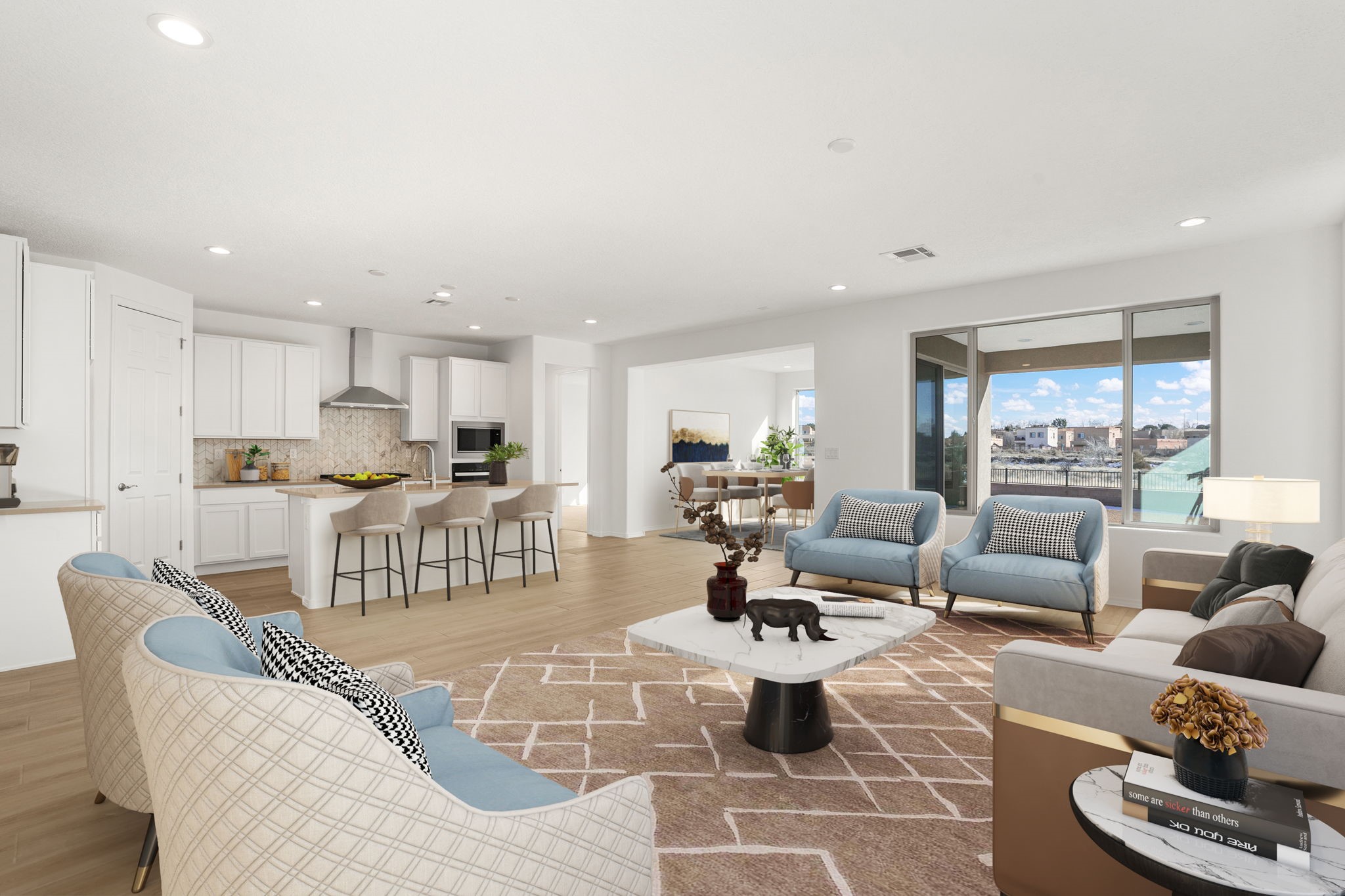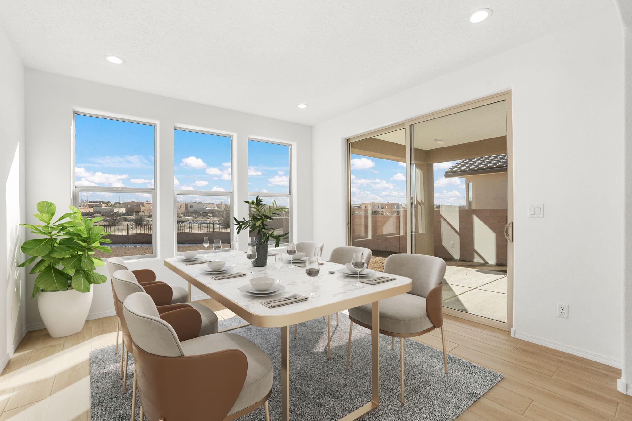 Welcome to this beautifully designed single-story home that blends comfort, function, and style. Featuring a thoughtful split-bedroom layout, this cozy home features 4 bedrooms, 2 baths. The open-concept kitchen features a large island, upgraded 42" cabinets, and gorgeous Silestone countertops. Beautiful plank tile flooring and upgraded fixtures throughout. Enjoy the Santa Fe weather on the covered patio in back. Pulte's Award-Winning Warranty and energy efficiency is included. You will love this home!