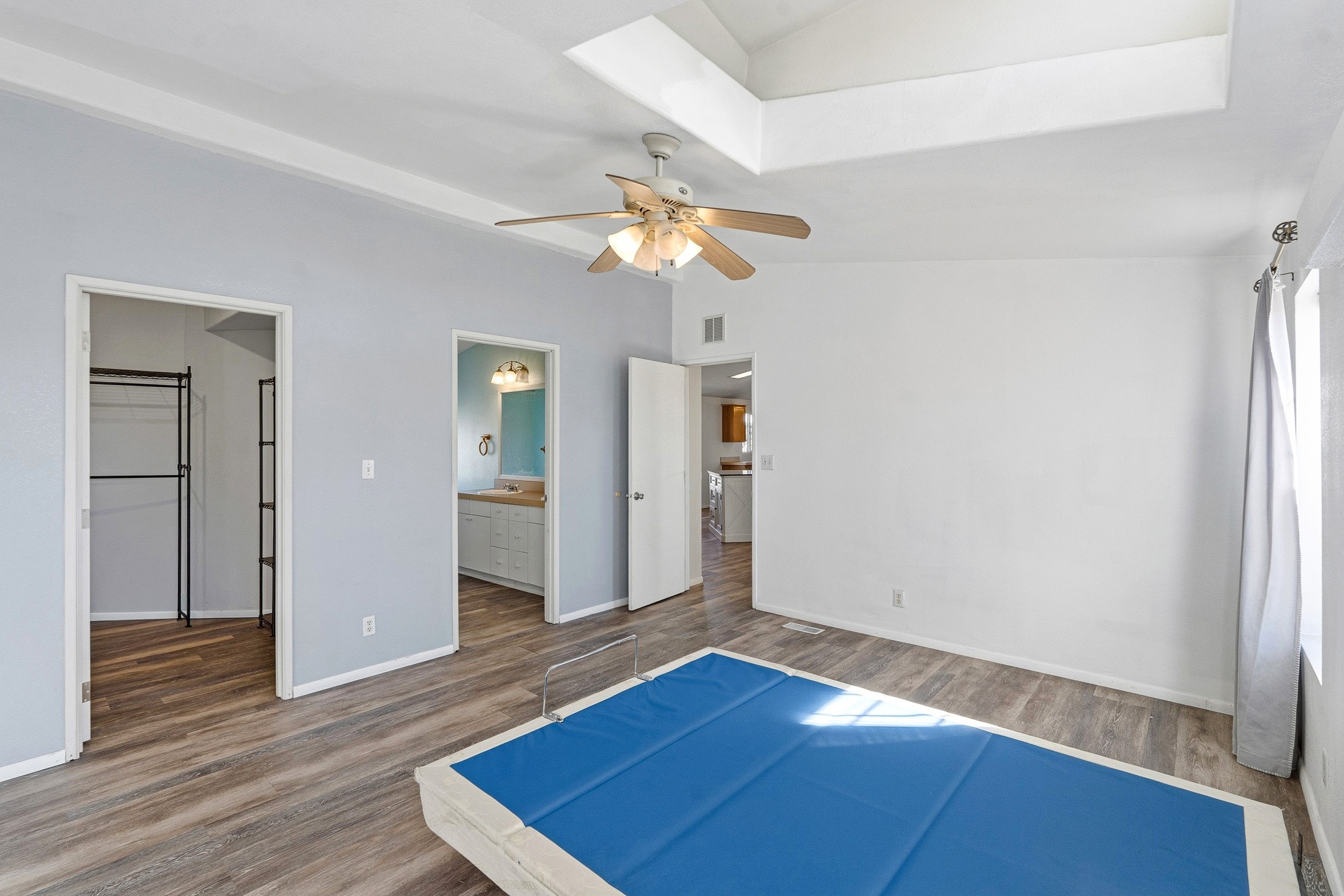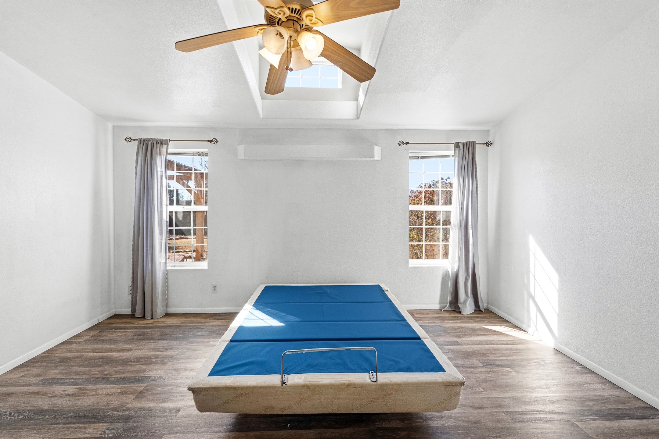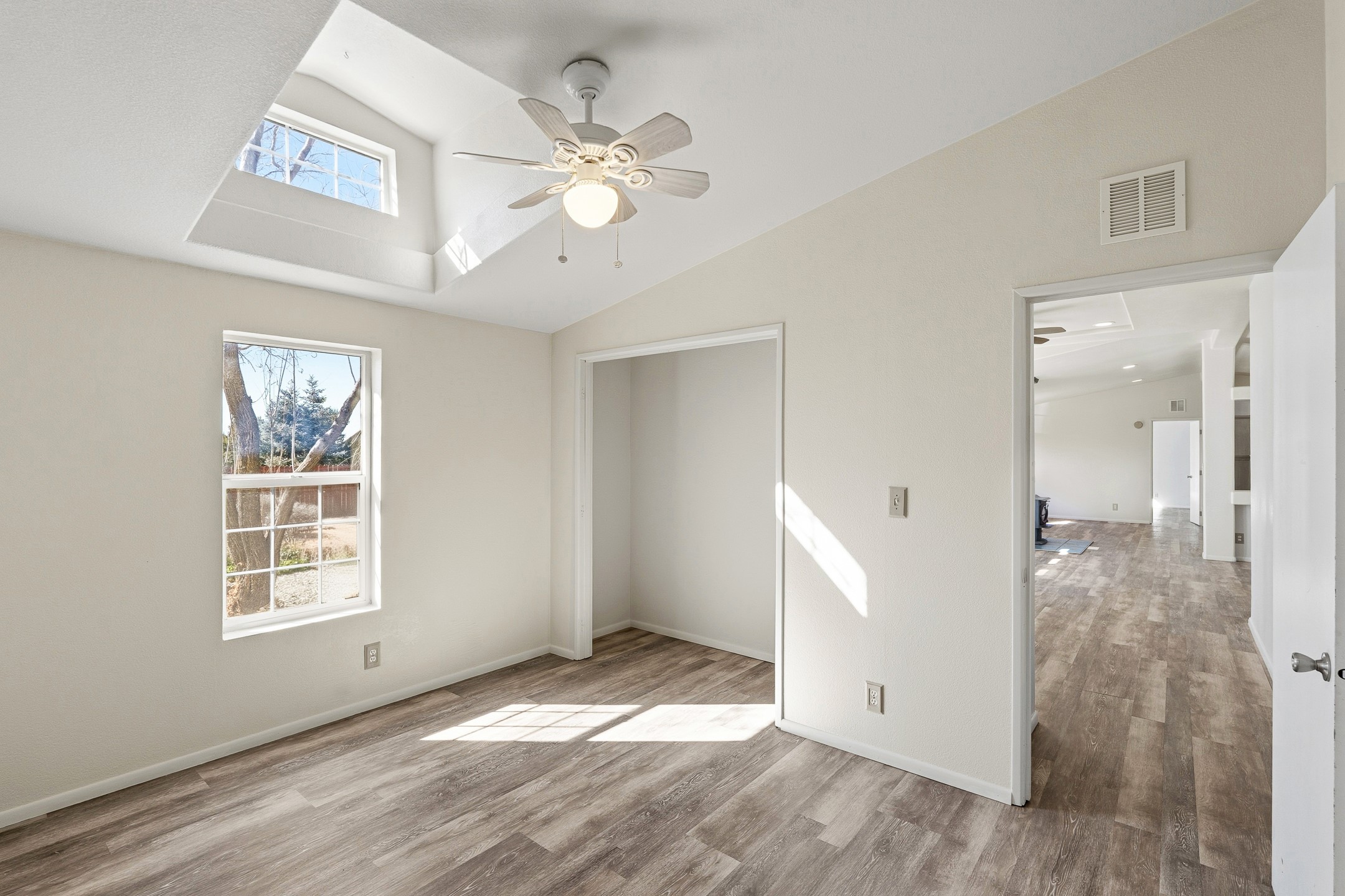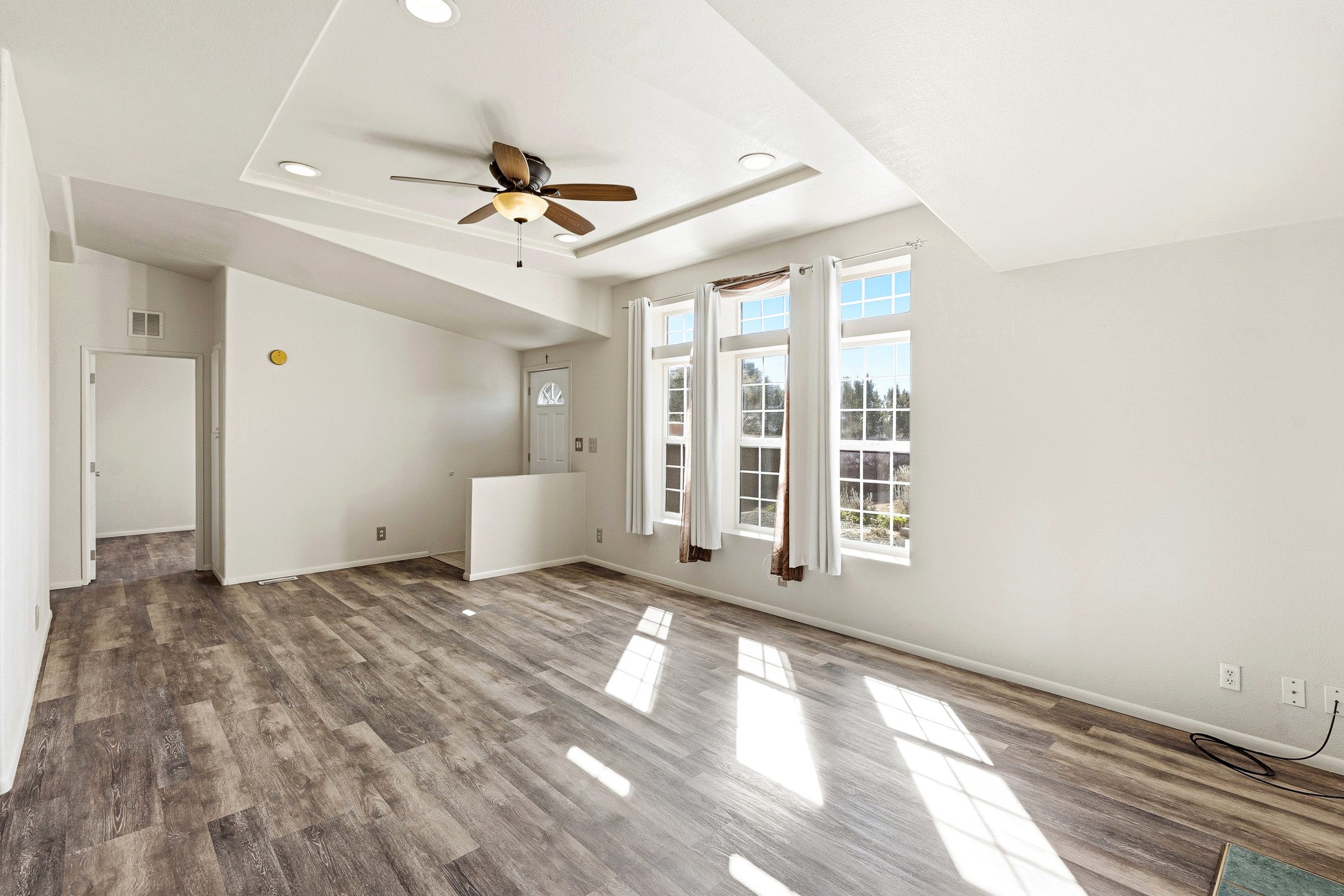 Peaceful private home in a rural setting with easy access to amenities and downtown Santa Fe. Enclosed front yard, metal roofing, refrigerated ac. Large new shop building for all your creative activities and storage. Large lot is fully fenced for your privacy and enjoyment.