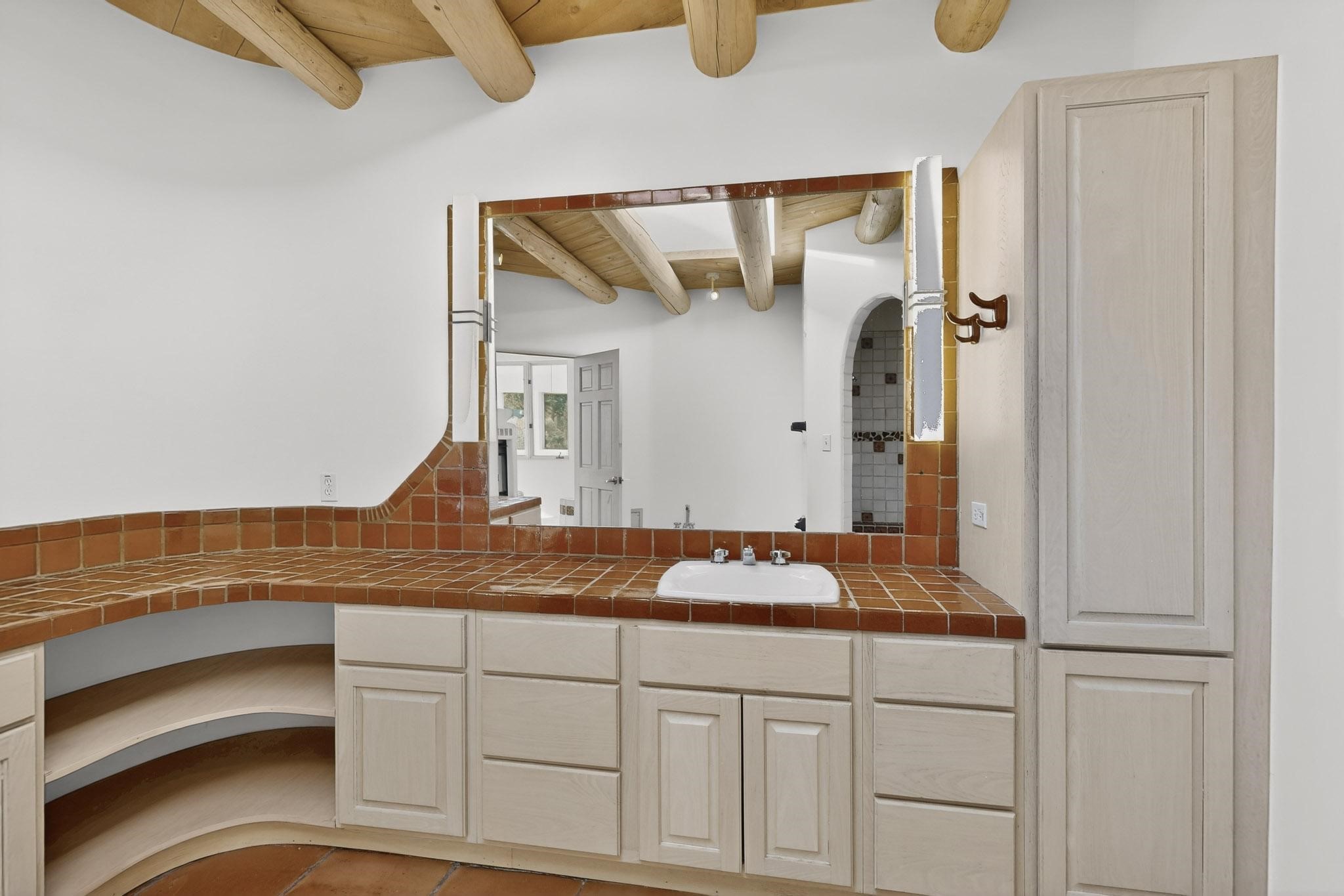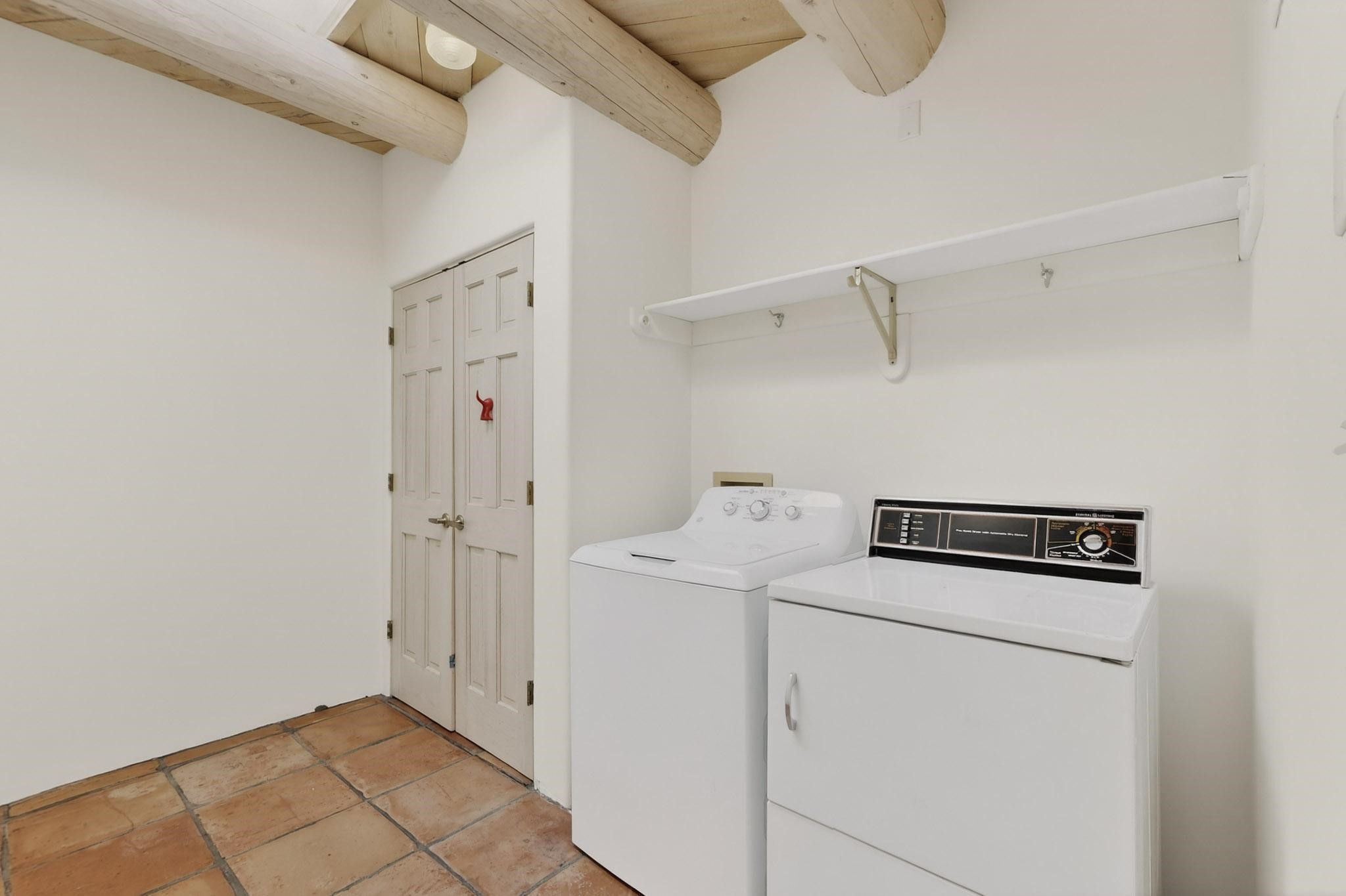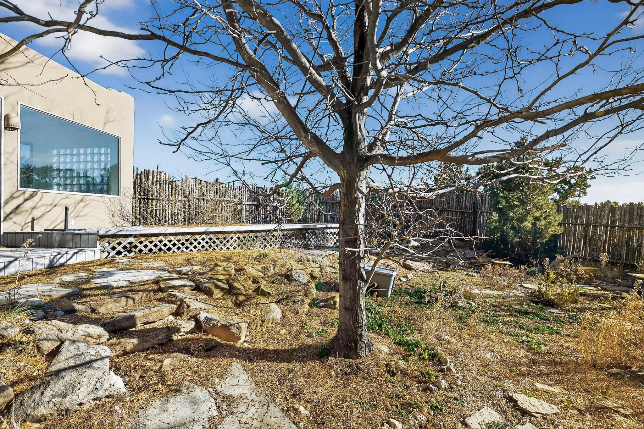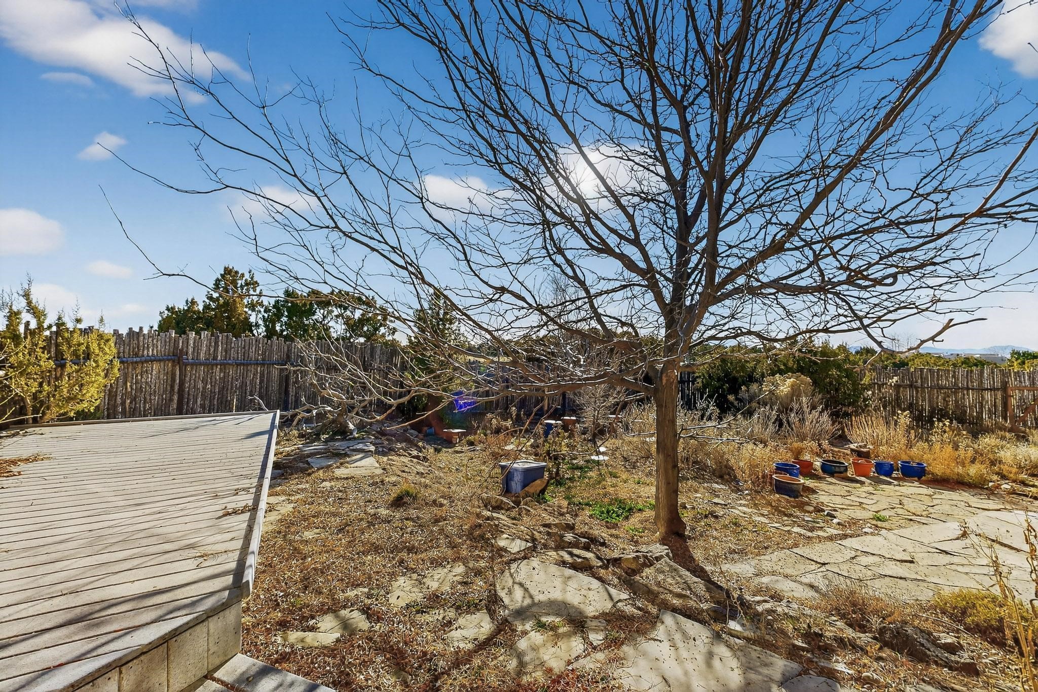 Lovely Eldorado home, situated on an expansive and beautifully landscaped almost 2-acre lot, is filled with natural light and exudes Santa Fe charm. Enjoy panoramic mountain views and amazing sunsets from inside the home and multiple outdoor areas enclosed by coyote fencing and flagstone walk-ways. Offering 2 bedrooms and 2 bathrooms with approximately 2800 square feet, the home features versatile areas perfect for a range of uses. A heated flex space (with gas stove) with appx 390 sqft, separate entrance and direct access to the home provides the ideal setting for a studio, office, workout room, or playroom. Off the spacious primary suite, you'll find a cozy office or sitting room with built-in desk space, as well as a large, light-filled appx 550 sqft unheated room with direct outdoor access--perfect as a work-out room, sitting/TV area, or relaxation space. There is ample storage throughout. The inviting living room boasts soaring ceilings with vigas, a kiva fireplace, and abundant natural light. The owner's suite includes a fireplace and ensuite bath with separate tub and large walk-in show all offering a serene retreat. Car enthusiasts will love the oversized garage (approx. 1,365 sq ft) with room for up to six cars & possibly an RV. Additional highlights include: 4 fireplaces-Abundant skylights-Radiant heat (we have been told not Kitec or Entran II)-Wood doors-Large laundry room with closet & washer/dryer-Saltillo tile floors-Rooftop viewing deck-Vigas in almost every room including bathrooms-Nichos-Banco-Corbels-Archways-Ceiling fans-Newly paved Frasco Rd-Multiple decks and sitting areas and more. This unique property combines Southwestern character with extraordinary versatility and spectacular views.