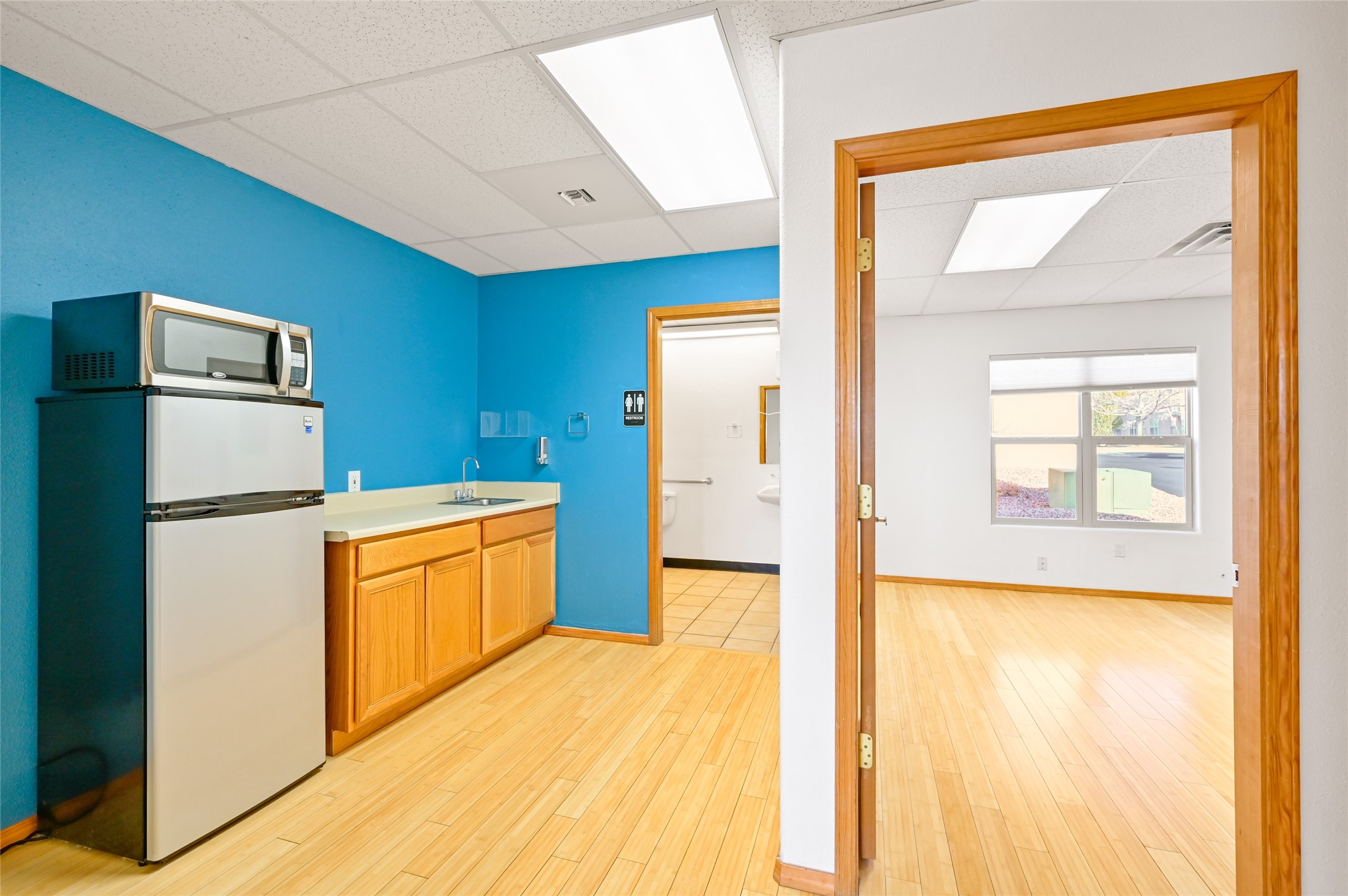 Efficiently situated office in the Aspen Drive Office Condominium. The space has waiting/reception area with 2 large offices, kitchenette/break area, in-suite restroom and storage closet. There are beautiful bamboo floors and great natural light throughout. The complex is professionally managed with well-maintained parking lot and landscaping. Must see office space!