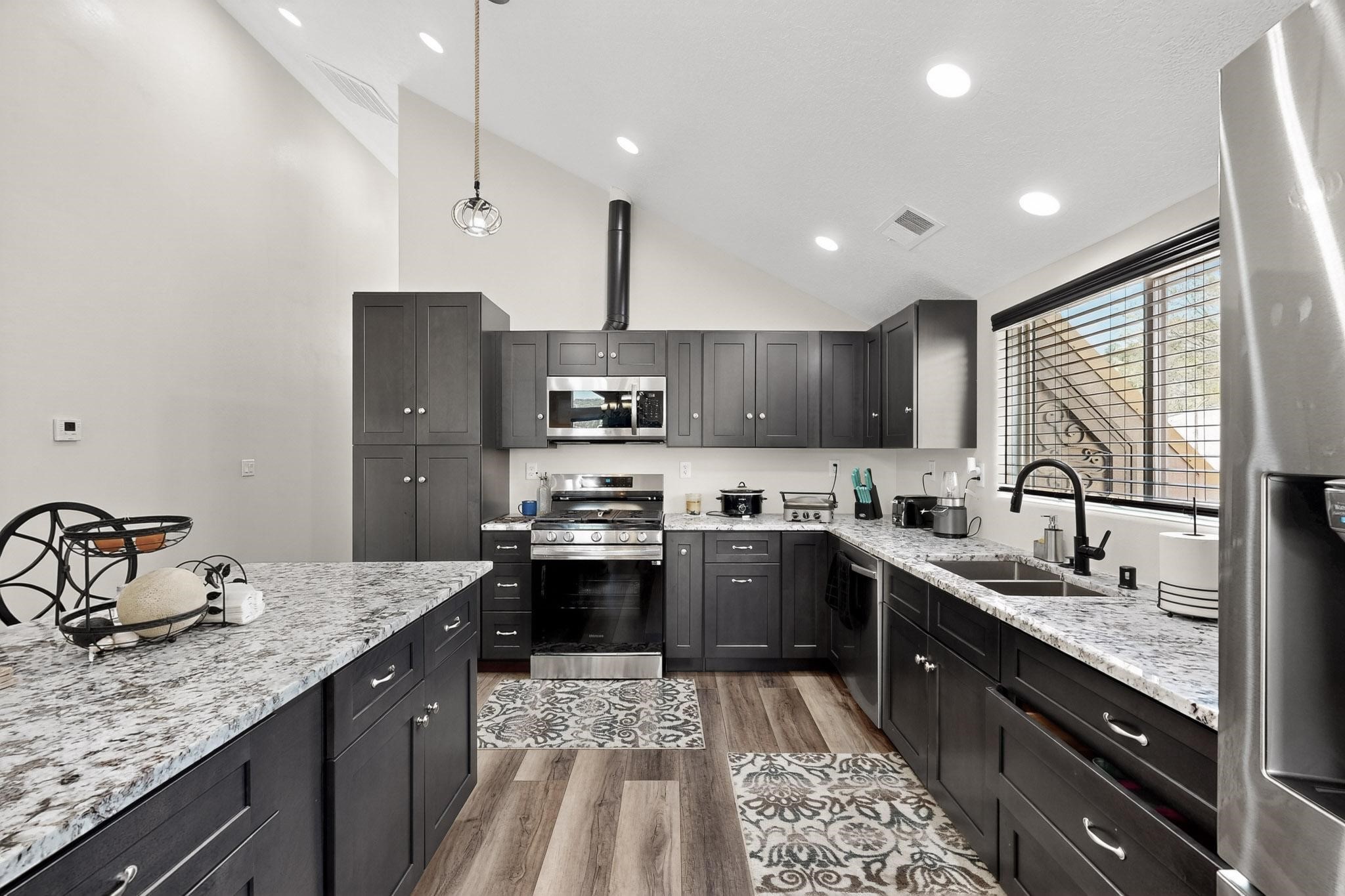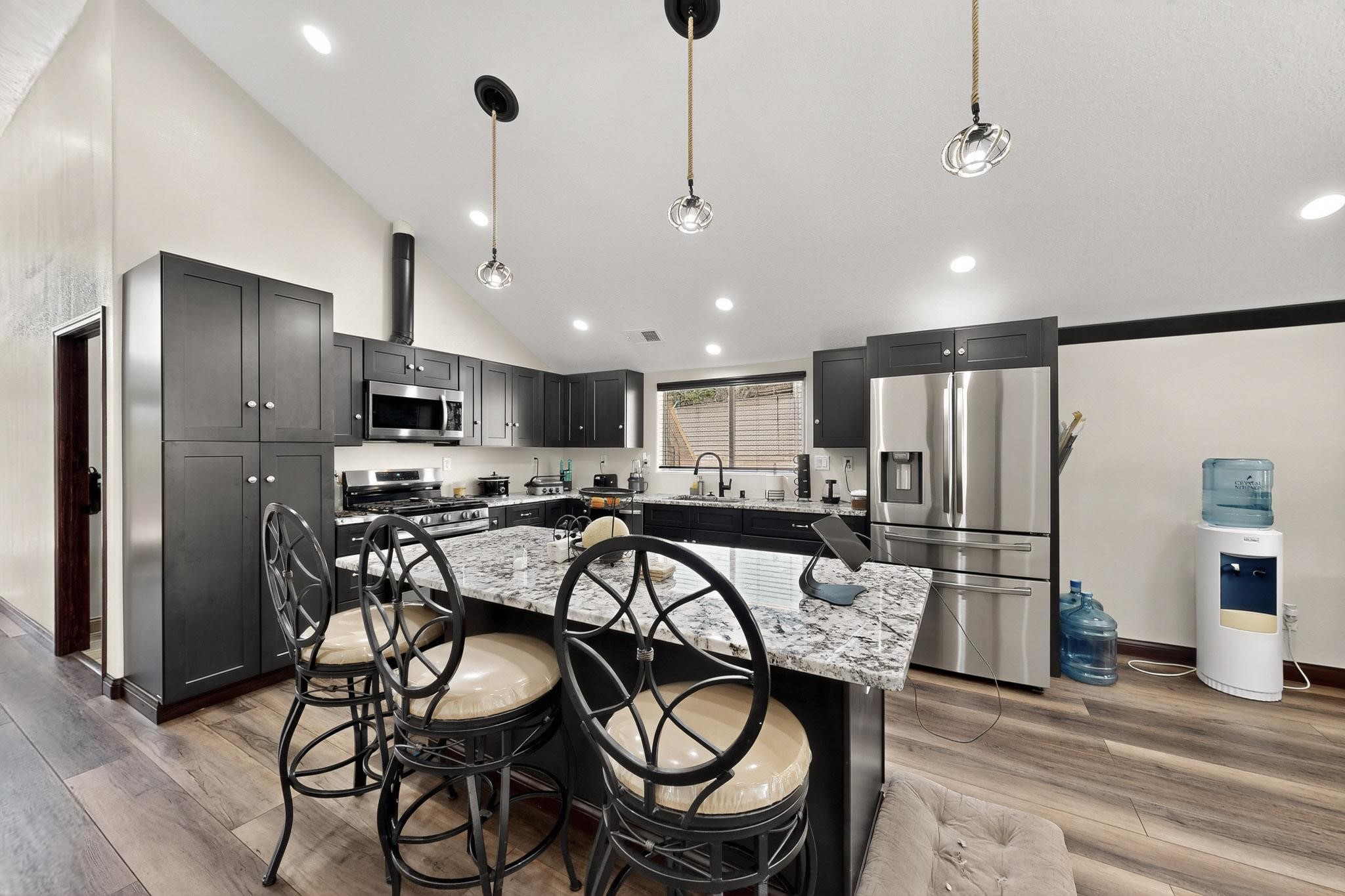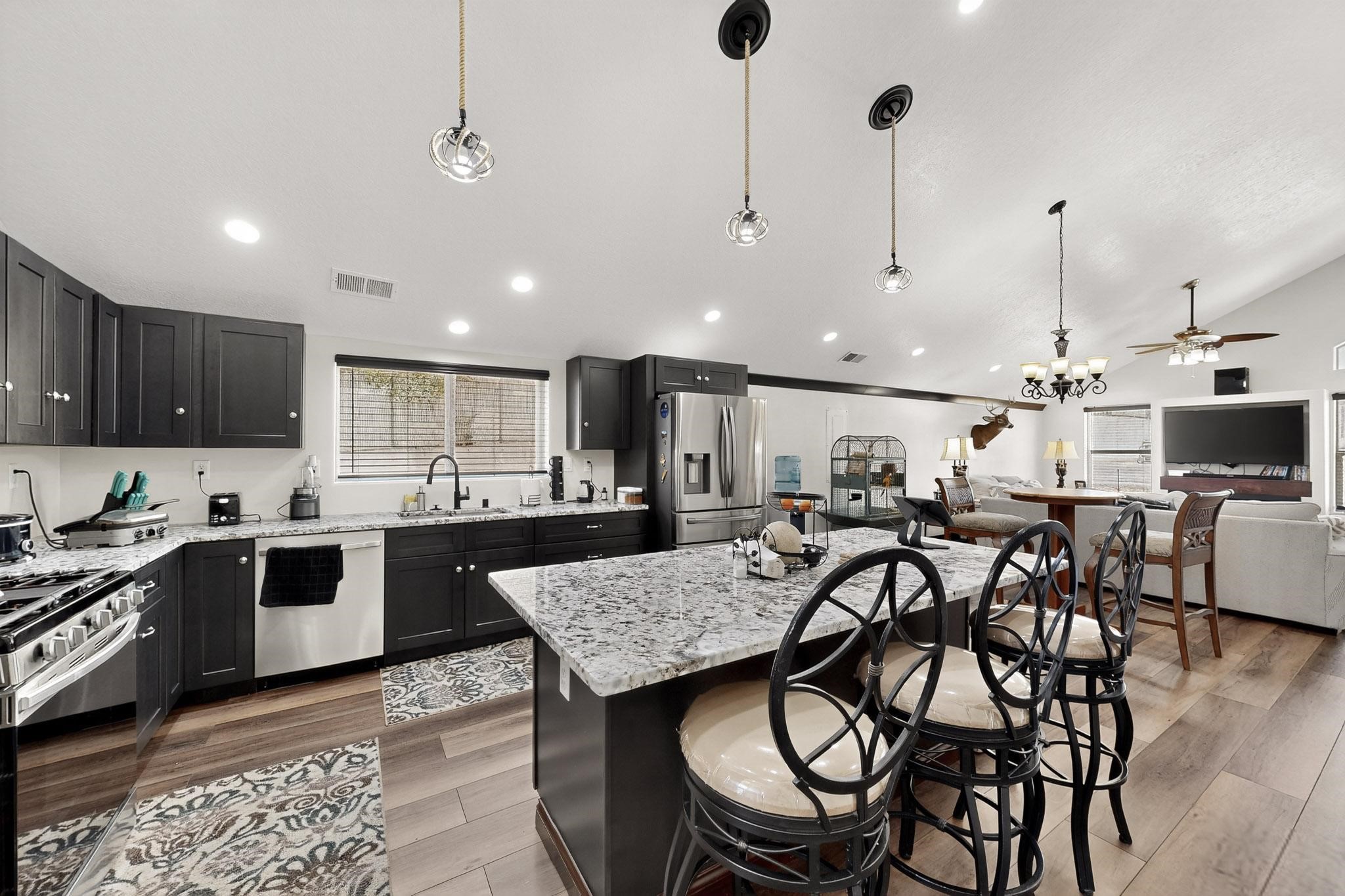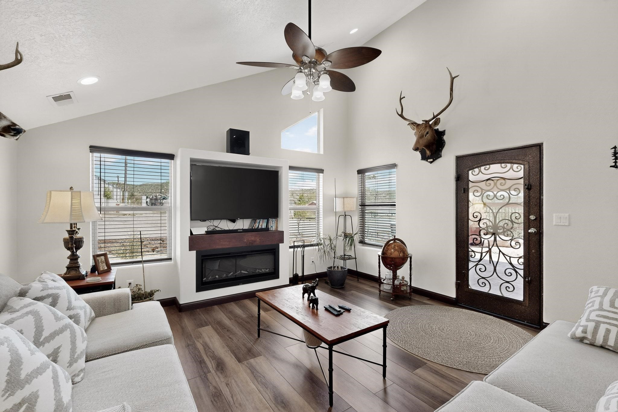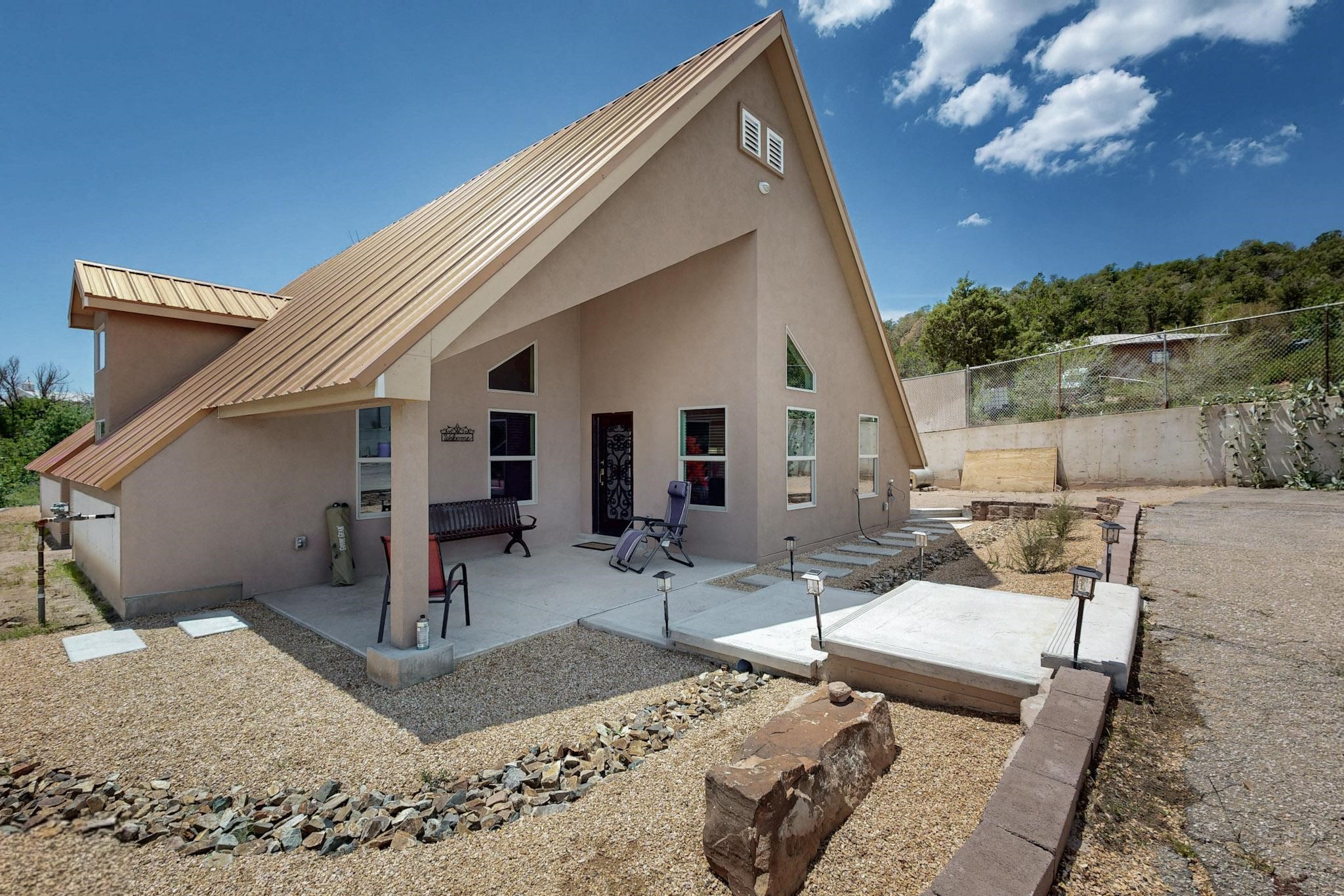 NEW CONSTRUCTION situated in a great location in Cedar Crest in North Highway 14. It has refrigerated air, central air heating, Metal roof with two wells and a septic. Luxury finishes with wrought iron doors, double pane low e windows, and real wood doors. Granite counters and all stainless steel appliances. The property includes a lot in the west of it. It has an amazing unique style that fits the aesthetic of the Mountain. Property is zoned mobile home or home it us to be zoned Commercial. Property can be converted back to Commercial. Fully landscape with concrete, trees and xeriscape featuring a lot of upgrades. Fully gated with an electronic gate and wrought iron. Please do not miss out this opportunity.