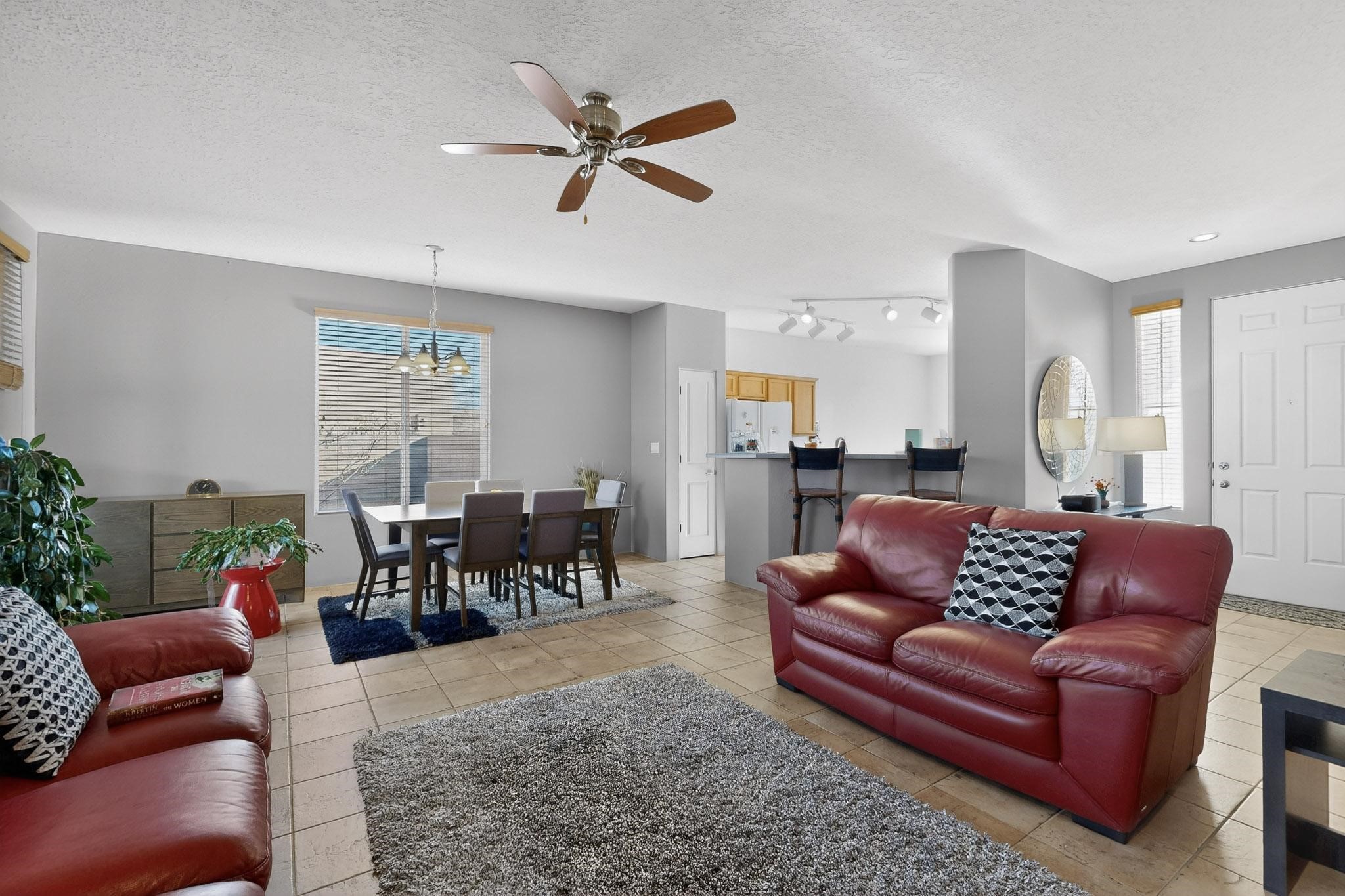Welcome to this delightful single-level home, thoughtfully cared for and gently lived in. As you step into the inviting foyer, you'll be greeted by an open, airy layout that immediately creates a sense of warmth and comfort. The living area offers a cozy fireplace and a view to the back patio, making it the perfect spot to unwind and enjoy your time at home. The home's neutral color palette compliments tile flooring throughout the main spaces. Adjacent to the living area, you'll find a flexible office or den, ideal for working from home or relaxing with a good book. Home has two well-separated bedrooms plus an office or sitting room. The spacious kitchen features a cozy eat-in nook, perfect for casual meals and morning coffee. Step outside to the beautifully landscaped, low-maintenance yard. The private patio offers a serene outdoor retreat to savor wonderful summer days and evenings. Conveniently located to Santa Fe Community College, dining and shopping amenities. Just a short drive to Highway 599--this location is perfect for commuters to Los Alamos. Santa Fe Downtown Plaza is only about 20 minutes away.