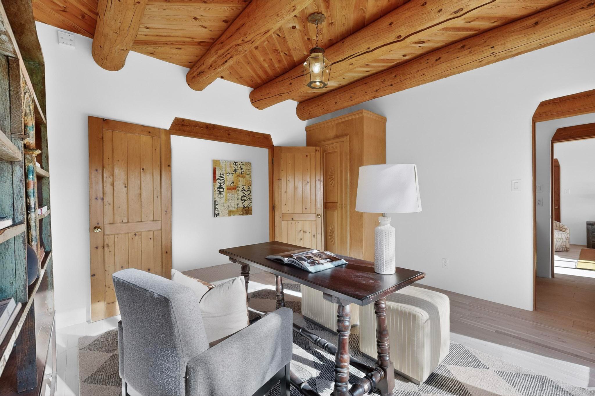 Commanding an elevated position in one of Santa Fe's most coveted locations, this impeccably reimagined residence offers a rare blend of refined luxury, privacy, and inspiring views. Thoughtfully curated for sophisticated living, the home features three bedrooms--or two bedrooms plus a private office--and three beautifully appointed bathrooms, ideal for both gracious entertaining and serene everyday comfort. The interior has been extensively and meticulously remodeled, showcasing new hardwood flooring throughout, a chef's kitchen adorned with custom cabinetry, quartz countertops, and a full suite of new, high-end appliances, and spa-inspired bathrooms finished with contemporary materials and elegant detailing. The result is a timeless, light-filled interior that seamlessly balances modern design with Santa Fe's distinctive character. There is a new HVAC system, forced air heating and central AC, to provide year round comfort. There is an outlet for your EV charging center in the garage. This turnkey property in an exceptional location with understated sophistication represents a distinguished offering in the Santa Fe market.