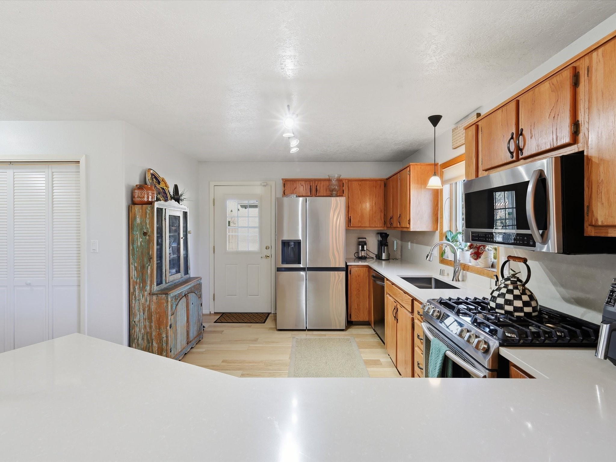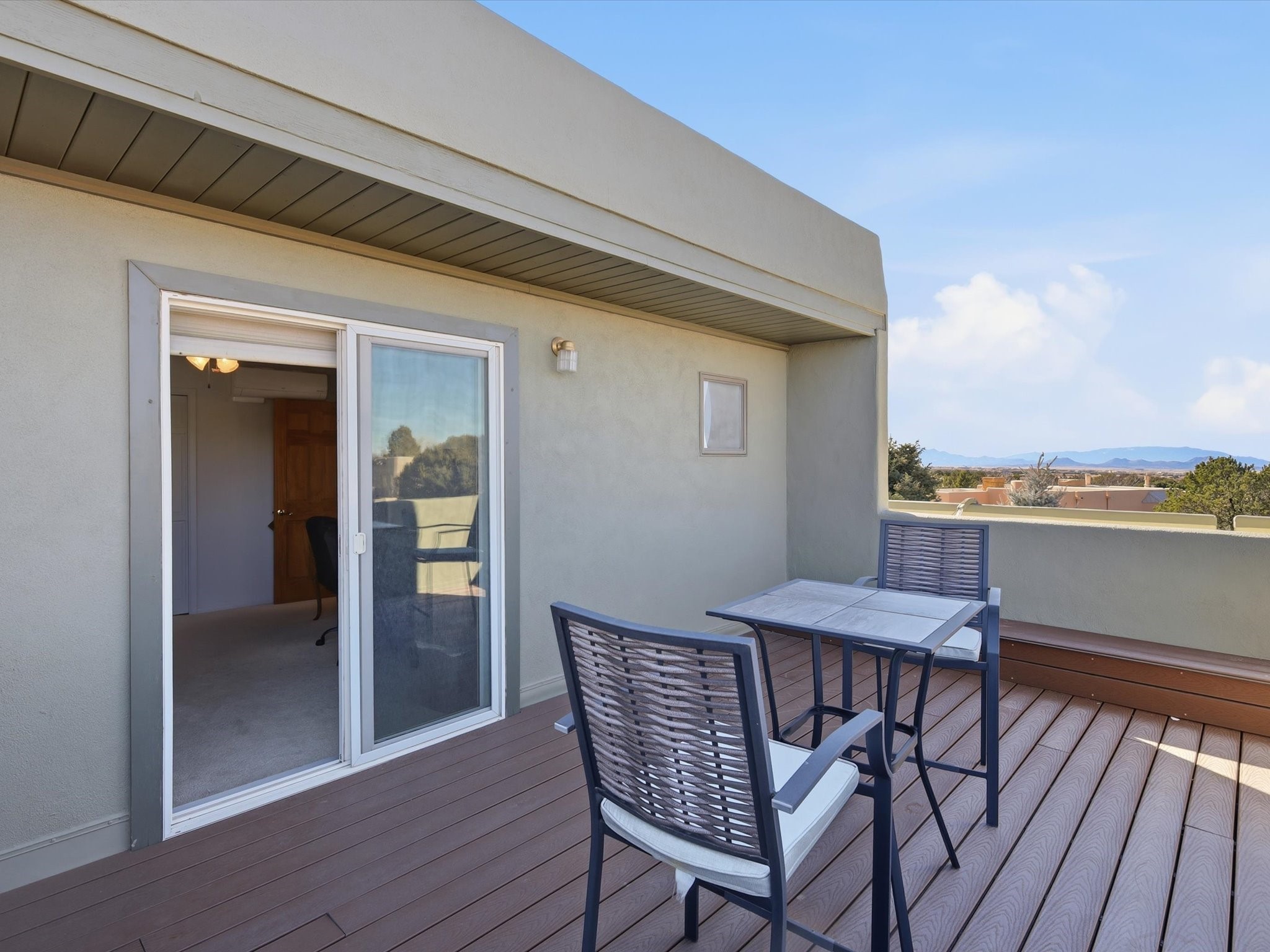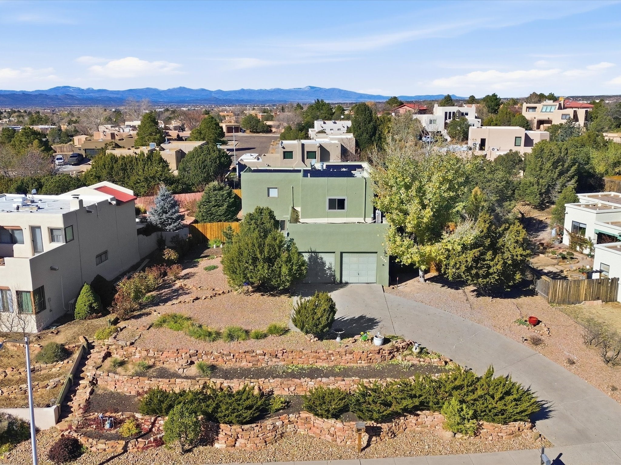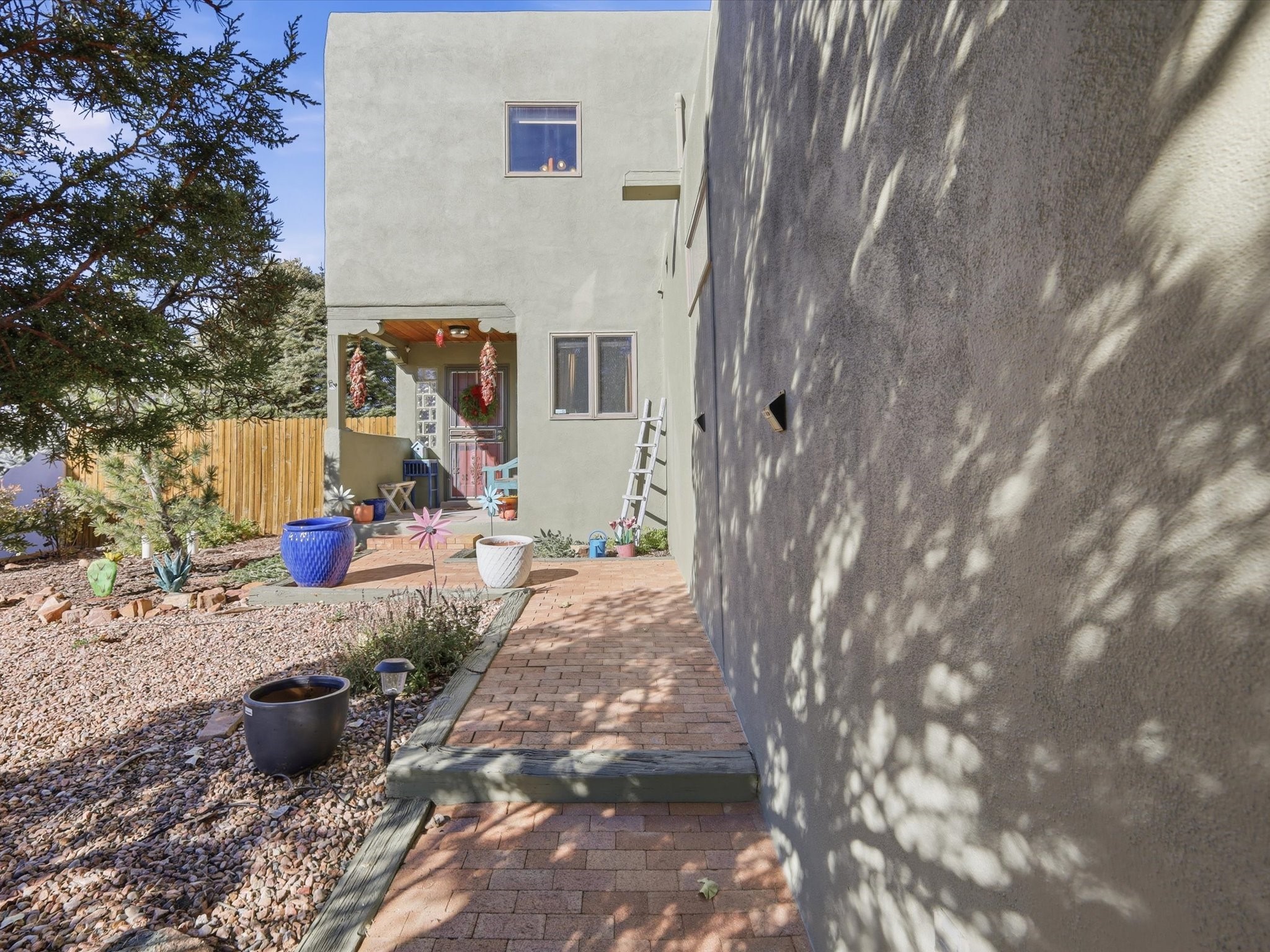 Renovated and truly move-in ready, this thoughtfully updated Santa Fe home offers peace of mind and great upgrades throughout the entire property. Improvements include a brand-new Gaco roof-sealant refinishing, a new stucco exterior, an upgraded heating and cooling system, solar panels, and a new water heater--providing both energy efficiency and long-term savings. Inside, the home features refreshed living spaces with refinished cabinetry, hardwood floors, quartz countertops, and fully remodeled bathrooms that blend modern comfort with classic Santa Fe charm. Every renovation was carefully completed to enhance functionality, durability, and timeless style. A detached studio adds exceptional versatility and value, complete with its own heating and cooling system--ideal for a home office, art studio, guest quarters, or flexible additional living space.