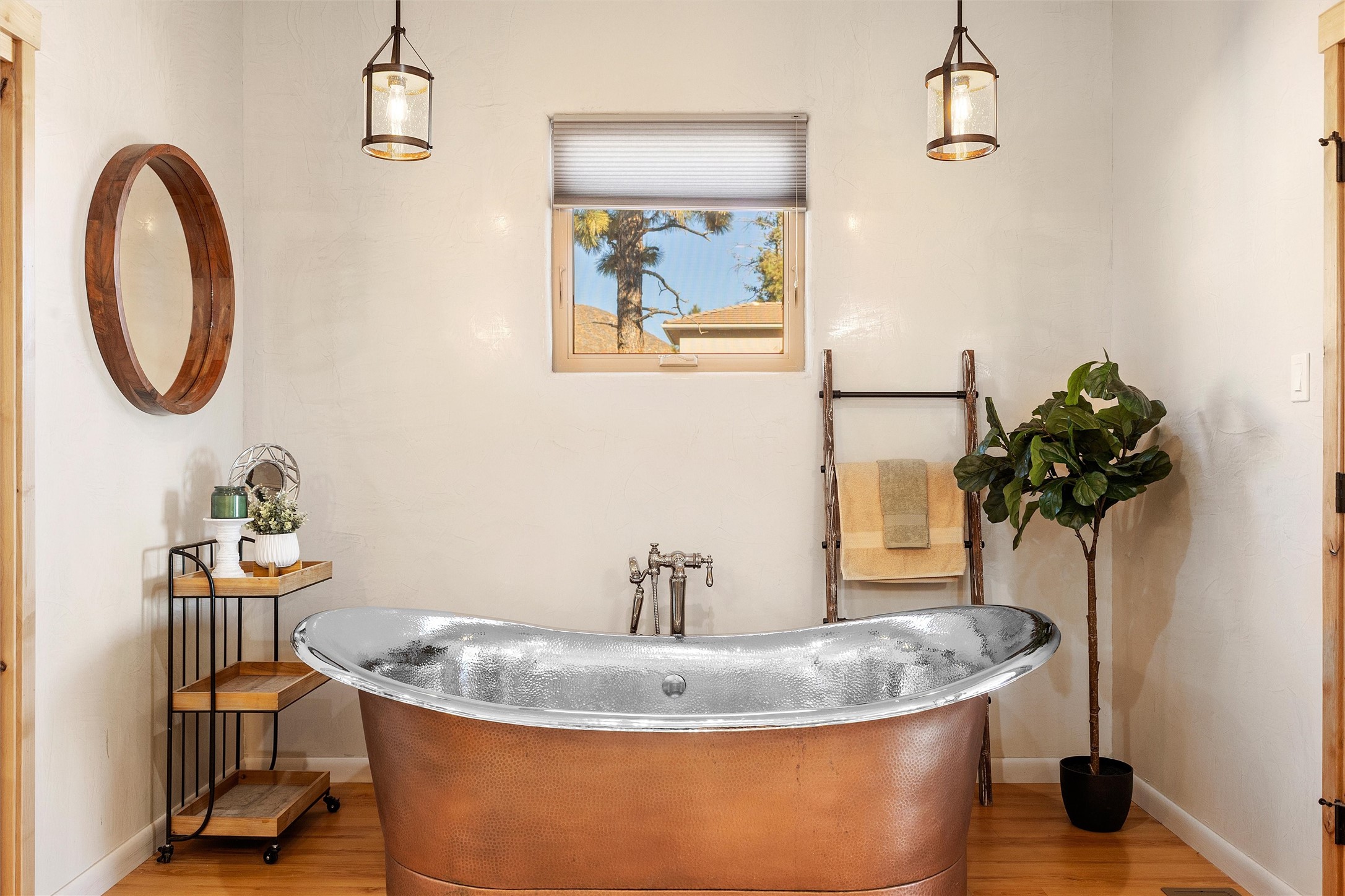 Tucked at the end of a quiet cul-de-sac in one of Los Alamos' most desirable neighborhoods, 1610 Solana is a truly rare offering. Set on over one acre (the largest lot in the neighborhood) and backing to National Forest and County land for unmatched privacy and a breathtaking natural backdrop. With arguably the best views in town, you'll enjoy sweeping vistas of the townsite, the Sangre de Cristo range, and more from multiple spaces throughout the home.Finished in 2022, this stunning residence offers over 3,500 square feet of modern, beautifully crafted living space and all of the contemporary amenities today's buyers expect. The primary suite is a showstopper with a private deck walkout, an enviable walk-in closet, and a spa-inspired ensuite highlighted by a copper soaking tub.Designed for comfortable main-floor living, the upper level includes two additional bedrooms, one with its own ensuite plus an additional full bath. Venetian plaster walls add softness and sophistication to the main living areas, while multiple gathering spaces provide room to relax or entertain with ease. Head outside to the wrap-around deck with a covered porch, the perfect place to take in the views in every season.The walkout basement expands your options with another spacious family room, a guest bedroom with attached bath, and a versatile bonus room ideal for an office or additional guest space, complete with a Murphy bed.An oversized two-car garage offers generous storage and flexible space for a home gym or workshop, and the large laundry room with attached mudroom just off the garage keeps daily life organized and effortless.New, modern, spacious, and surrounded by nature, 1610 Solana delivers the Los Alamos lifestyle at its finest.