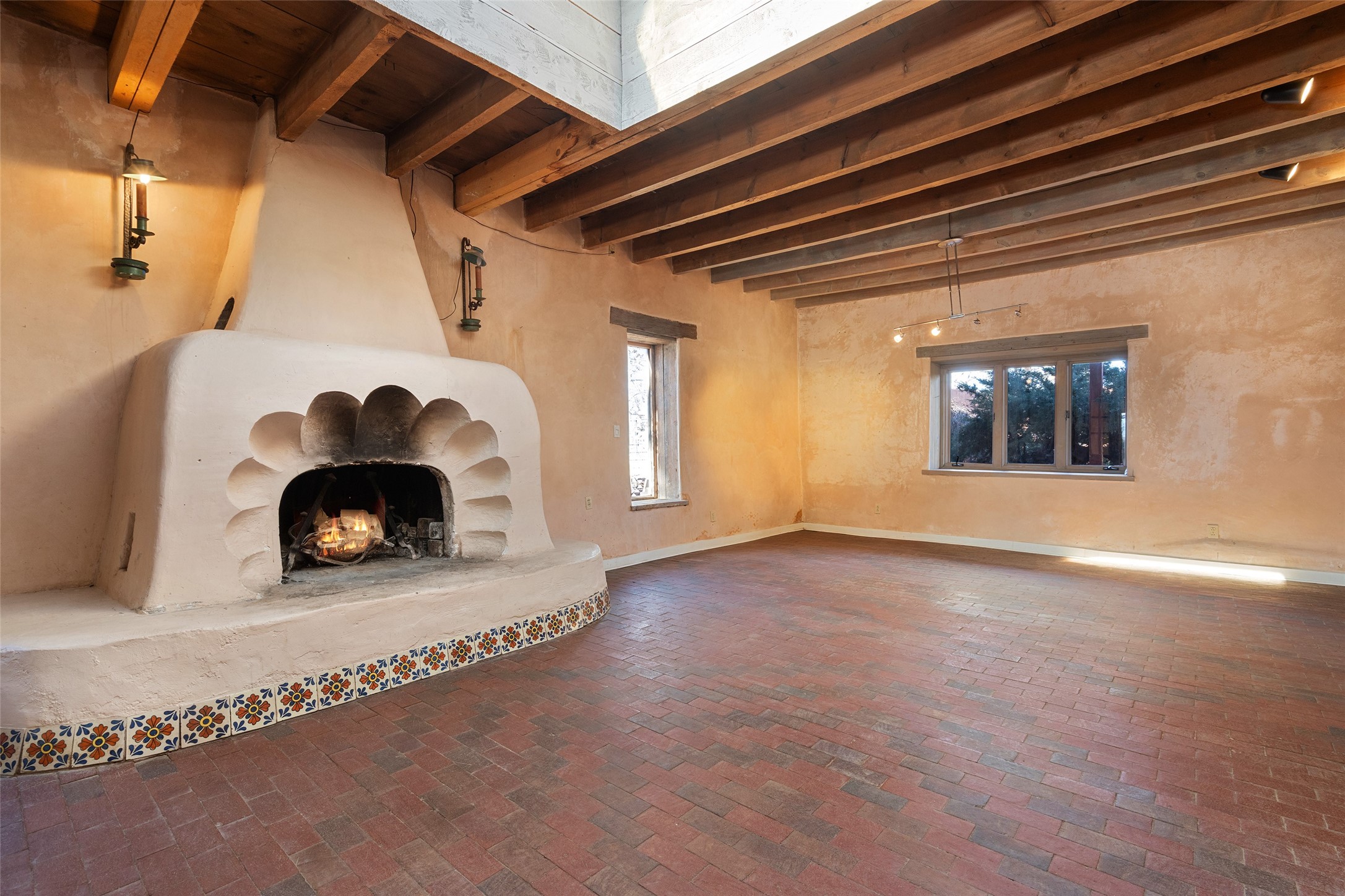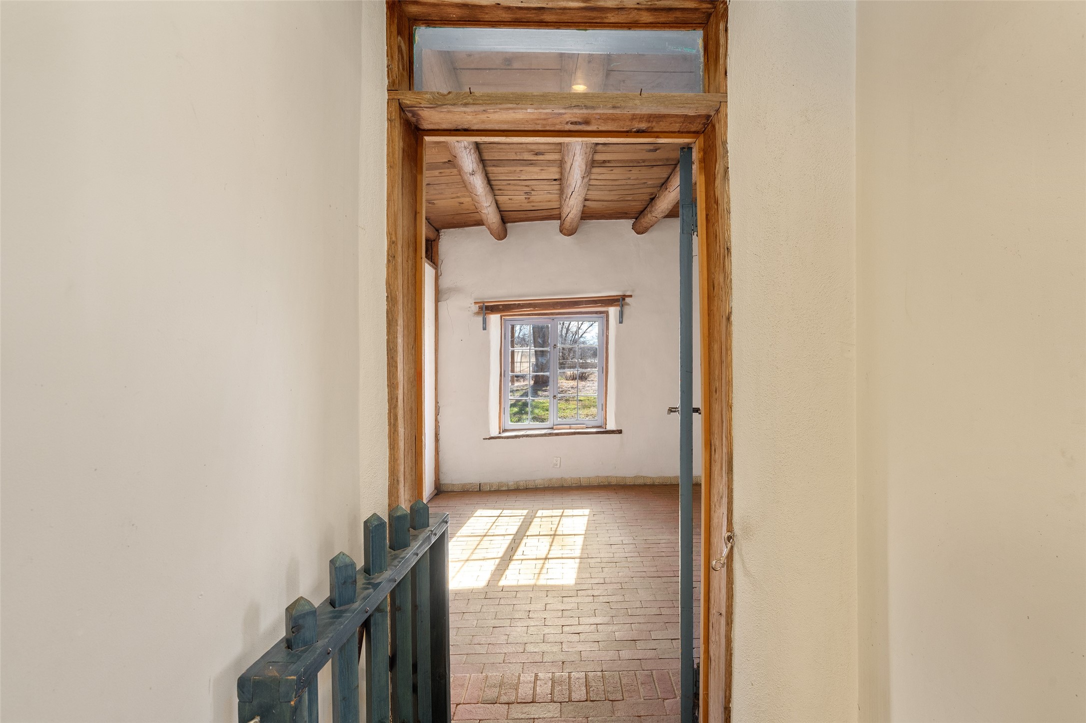 This historic Galisteo Hacienda presents a rare opportunity to restore an iconic adobe estate set on 3.8 acres within the village of Galisteo, one of the largest landholdings under Traditional Community zoning, which supports residential, live/work, and art gallery uses. Dating to the 1800s, the property once served as the headquarters of Don Jos Ortiz y Pino's sheep empire and later as the iconic Quartermill Farm - home, studio, and gallery of acclaimed artist Priscilla Hoback--making it uniquely suited to continue as a creative live/work estate. Located in the heart of Galisteo Village, the property includes a former gallery along a central village road and a substantial adobe main house privately set behind it.The hacienda features two residential wings with four bedrooms and three baths, a large library, grand living and dining rooms, multiple fireplaces, and authentic architectural details. A generous inner courtyard with mature trees, portals, and a koi pond creates a serene, campus-like setting ideal for both living and creative pursuits, complemented by fruit trees, gardens, and expansive village acreage.Equestrian facilities include a large handcrafted stone and adobe barn with spacious stalls and turnouts, wash rack, hay loft, tack room with bath, and an oversized arena, supported by a private well dedicated to the barn. Additional structures include an art studio with sink and loft, and a one-bedroom guest house--formerly the historic town bar--offering flexibility for guests, staff, or extended work use.The property is in need of renovation and restoration, presenting an exceptional opportunity for a discerning buyer to reimagine a historically significant live/work estate, blending residential life, creative enterprise, and community engagement in one of Galisteo's most storied village settings.