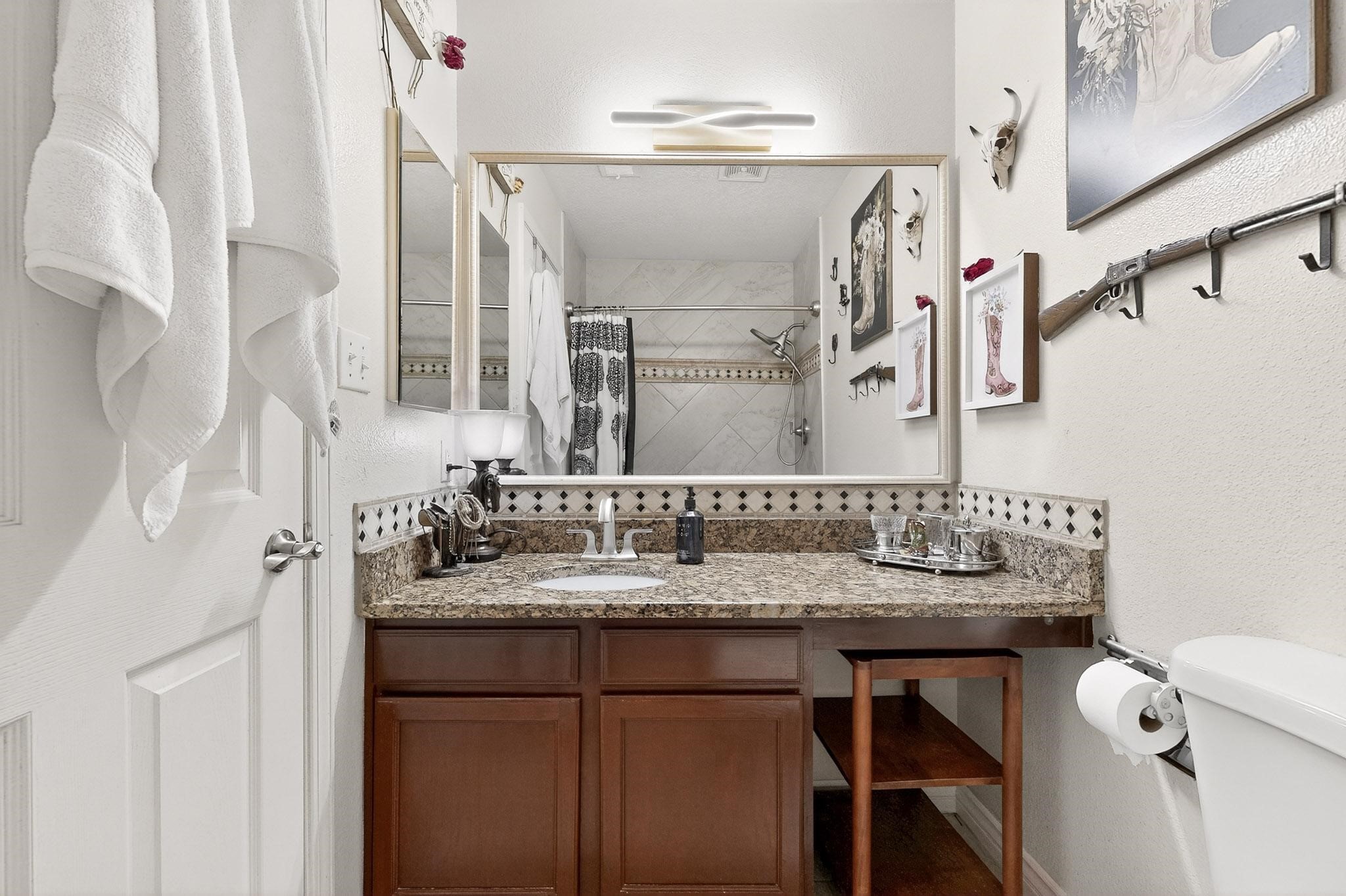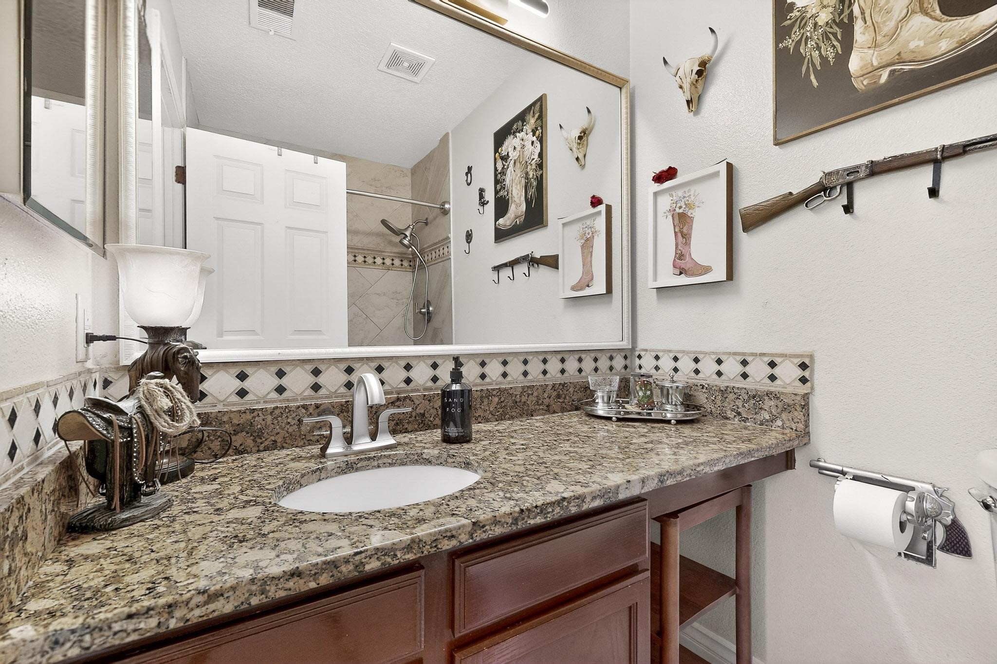 Immaculate, upgraded, and move-in ready! This stunning 4-bedroom, 2-bath home has no HOA and no PID, making it an exceptional find. The owners have invested over $170,000 in thoughtful renovations inside and out, creating a one-of-a-kind property. Features include an ash wood front door, tile flooring throughout, updated kitchen cabinetry and newer appliances, and beautiful mahogany French doors opening to the backyard. The living space is enhanced by an electric fireplace with a newer mantel, custom '' mirrors in the living and dining areas, updated bathrooms, ceiling fans, and refreshed lighting throughout. Additional improvements include a newer water heater and furnace, a finished garage with a new garage door, two 220V outlets, and a heavy-duty metal roof with recent maintenance and new roof bolts installed. Exterior upgrades continue with a custom 16' x 8' shed with metal base plate, a custom 1,000-pound side gate, refreshed portal ceilings in both the front and back, and newer stucco on the foundation. Conveniently located near US-550 with easy access to shopping and everyday conveniences - this home is truly turnkey and ready for its next owner.