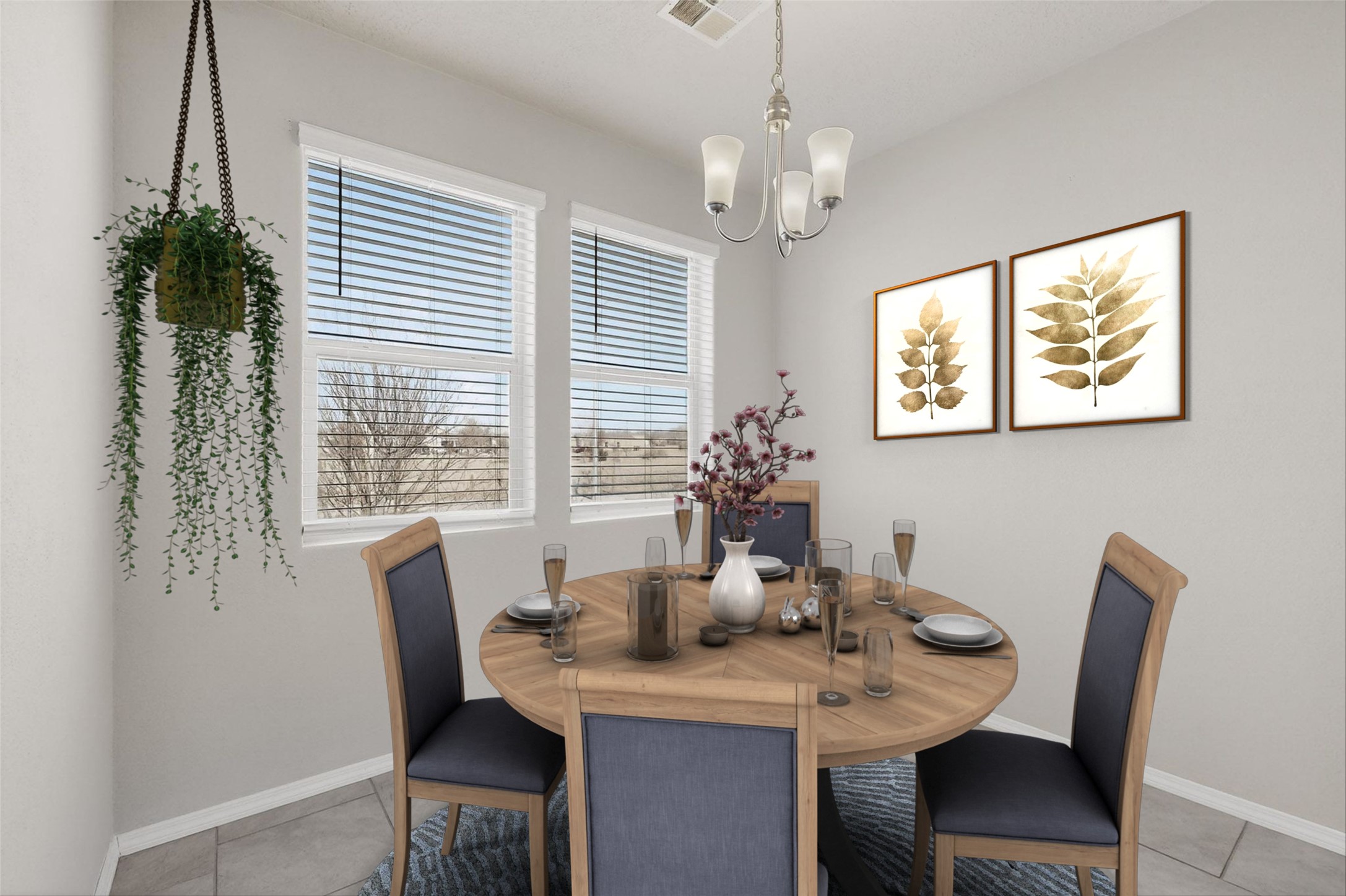 Opportunity is knocking with this 3 bedroom, 2 bathroom single level detached home in the completely sold out Cielo Azul Subdivision. Located across the street from the community open space you will be just steps away from daily walks/strolls, bike rides or walking your 4 legged loved one. Upon entry, the open concept kitchen and living area offer the perfect space to gather. The kitchen is sleek with granite counters, stainless appliances and lots of natural light. Casual eating can be enjoyed at the kitchen island or marvel in the separate dining area with great views of the community park. Wonderful separation of bedrooms allows the primary suite privacy with views to the walled back yard. Move-in ready with a finished garage, tankless water heater, refrigerated A/C, Washer & Dryer and matching stainless appliances. The backyard awaits your landscaping ideas and the location is great with easy access to 599 for both Los Alamos and Albuquerque commuters.