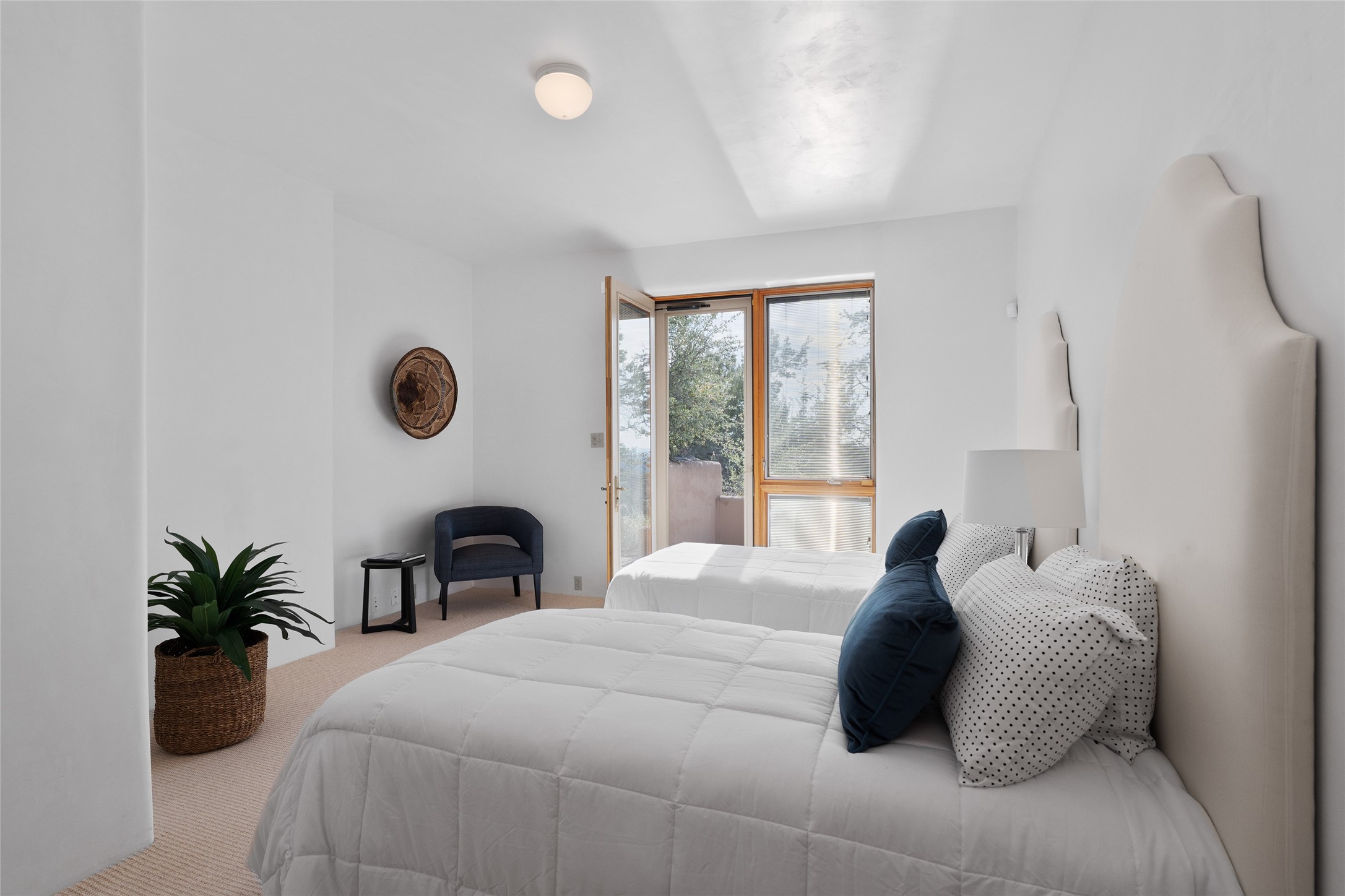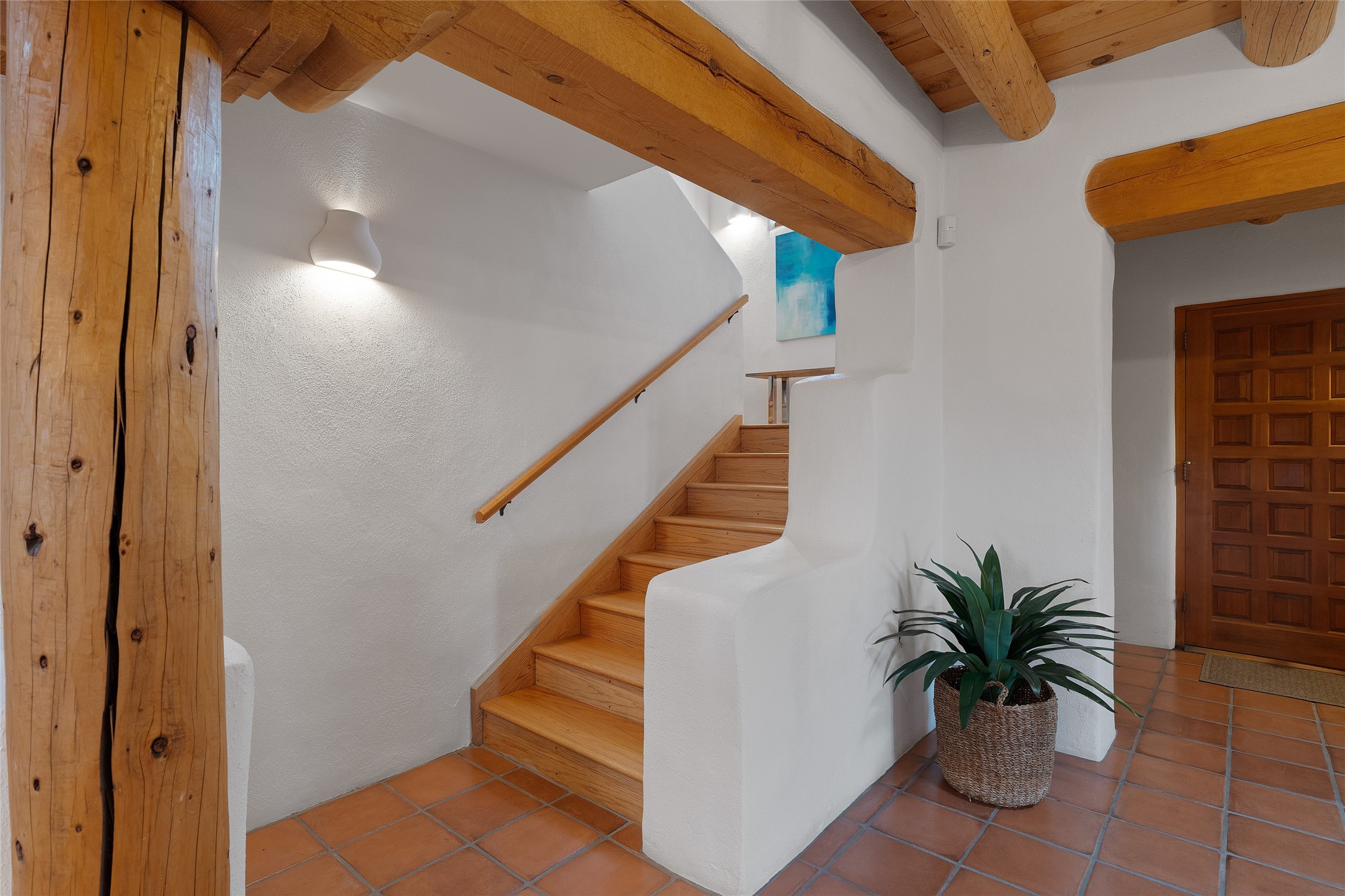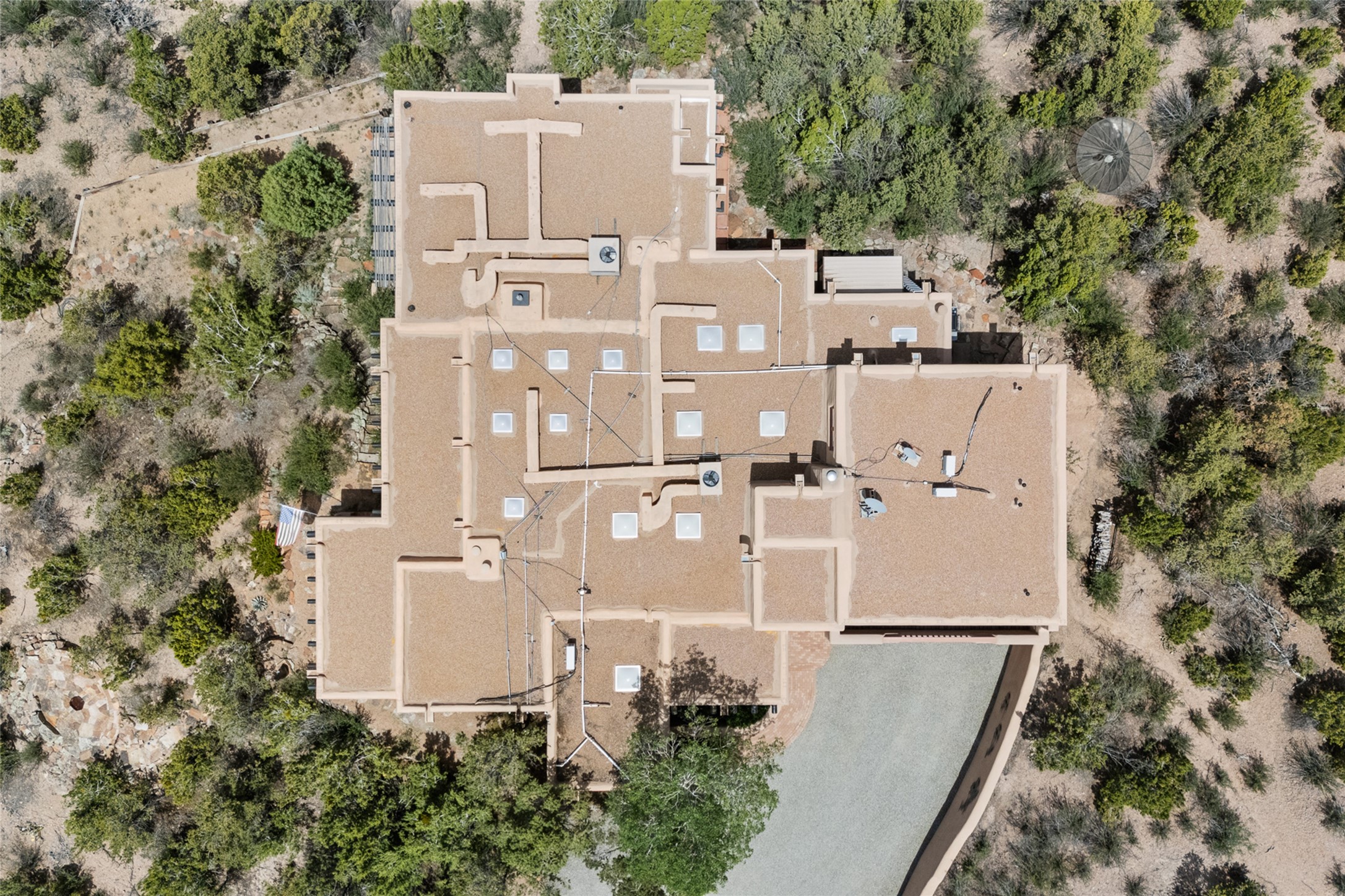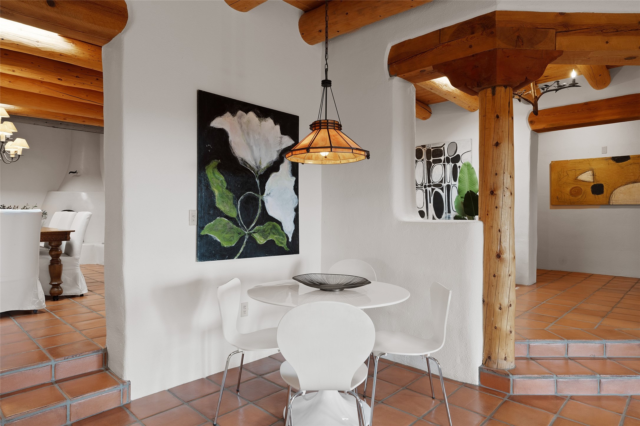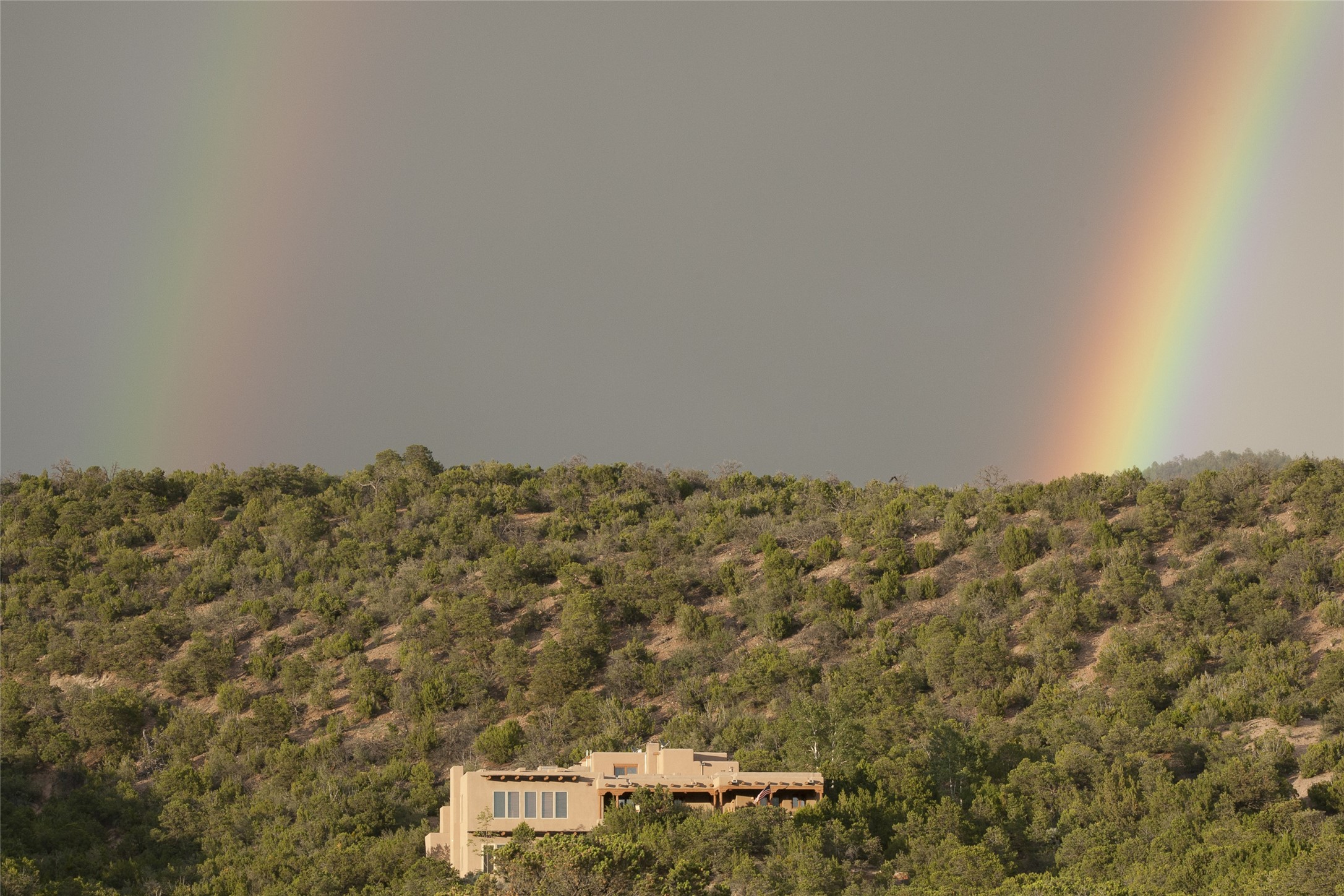Here's a rare chance to own a very special property in gorgeous, exclusive Los Caminitos, and wouldn't you like to live on Love Street- Camino Amor! A classic Santa Fe Style Hacienda sits atop a glorious ridgeline on 27 lush, private acres in the luxurious green hills of private Los Caminitos with views that go on forever and ever, overlooking vistas far and wide for miles! This is easy living, with easy entertaining flowing through spacious rooms with high finished ceilings and all of the Santa Fe touches; vigas, corbels, lintels, nichos and bancos that enhance this happy ambience. 5 bedrooms and 6 baths with a nice separation of spaces comfortably accommodate all your family and friends! It is silent out here...You can hear the cicadas and the bluebirds, and see millions of stars at night in the big, deep, dark sky. You can be alone with the universe here. This impeccably maintained home is move-in ready now as it is, or you could take it to the next level and create a publishable showplace. As an owner in the lovely gated community of Los Caminitos, whose website you may visit for further information, you will be a member of the private Los Caminitos Clubouse with pool, tennis, pickleball, barbecue facilities and private party house for members use. A stones throw to elegant Encantado, and about 12 minutes to the plaza, you are sure to come back home to peace, serenity, and love here on Camino Amor.