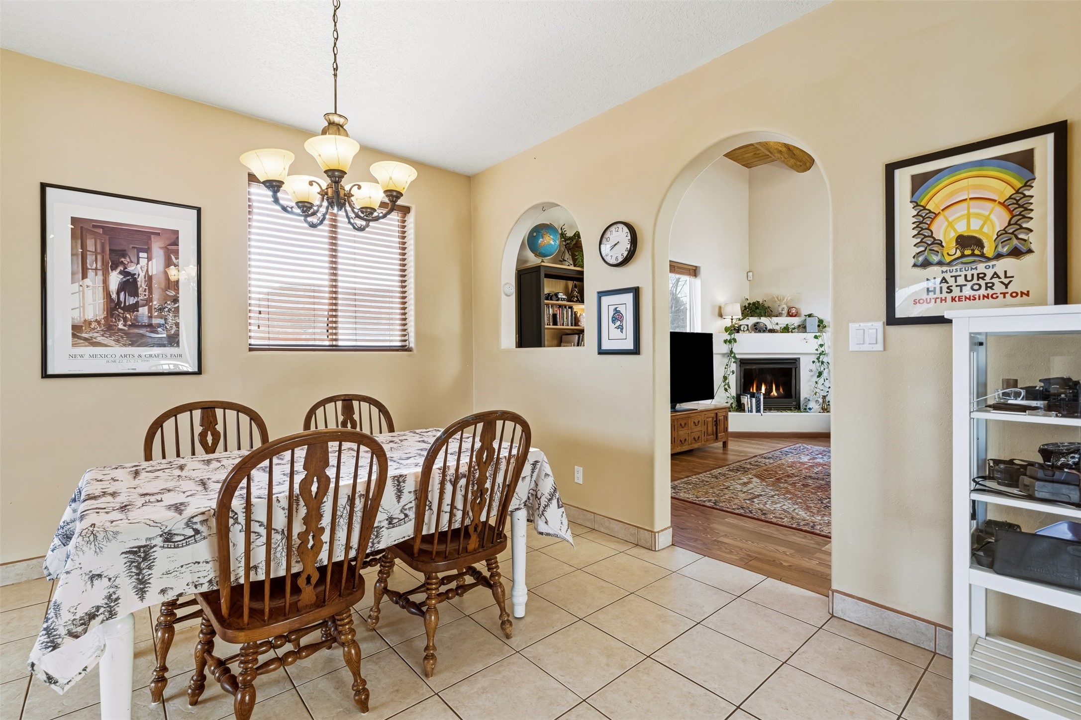 Discover your Santa Fe sanctuary at the peaceful end of a quiet cul-de-sac in the highly desirable Pueblos Del Sol neighborhood. This lovingly maintained home invites you into a sun-drenched expansive living room where authentic wooden vigas and beams soar across high ceilings, while a cozy gas fireplace creates an inviting focal point. The thoughtful main floor layout flows effortlessly from the living room to a large, open dine-in kitchen and back patio, additionally complemented by two spacious bedrooms, a full bathroom and laundry room.The second floor reveals a private retreat--an enormous primary suite featuring a spa-like ensuite bathroom and generous walk-in closet. A versatile fourth bonus room adapts perfectly as a home office, while the covered porch and expansive viewing deck showcase breathtaking sunsets and mountain vistas.Recent updates and quality features make this home truly move-in ready. The roof was re-sealed in 2023, the stucco remains in excellent condition, and radiant in-floor heating provides efficient, comfortable warmth throughout. Practical amenities include a two-car garage and a gated side driveway with ample space for a van or camper trailer. The backyard's fully finished, insulated shed with electricity transforms easily into a creative studio, yoga space, or private retreat.The neighborhood delivers exceptional convenience--top-rated schools, scenic walking trails, and nearby shopping and groceries--all while maintaining the serenity of this central, easily commutable location.Picture yourself enjoying lazy summer evenings on the covered back patio as children or pets roam the fully fenced yard, or greeting each morning from your second-floor deck with coffee and mountain views. This home strikes that rare balance between connection and seclusion, offering both the warmth of community and the peace of your own private haven. More than a house, this is where your family's story unfolds.