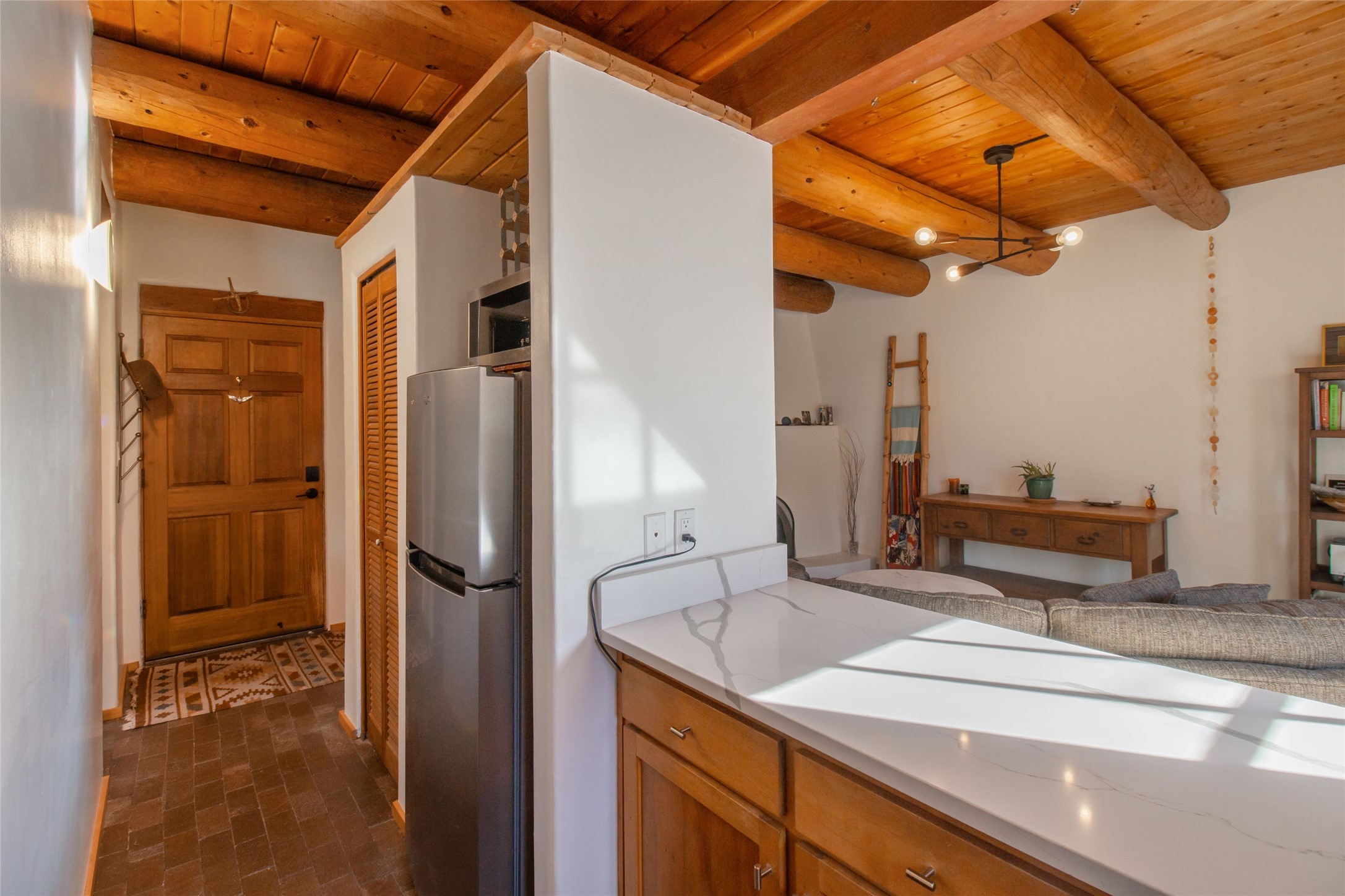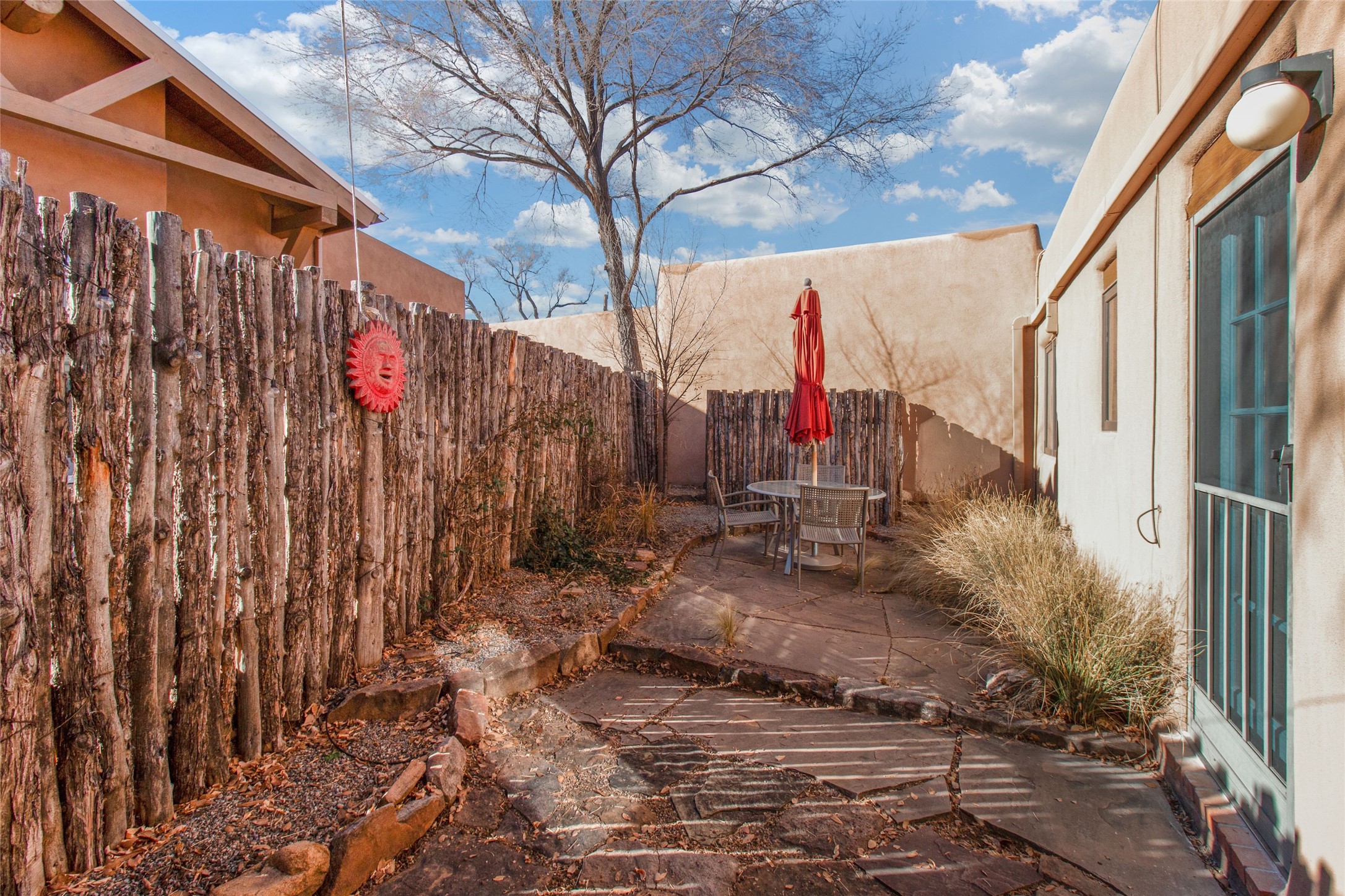 Quaint and inviting and recently updated 1-bedroom, 1-bath condo in Santa Fe's coveted Railyard District, ideal as an in-town pied--terre or great potential as an investment property. Distinctive brick floors and a thoughtfully efficient layout create a warm, authentic urban ambiance. Uniquely, this unit features both front and rear enclosed patios, offering rare private outdoor space. Enjoy effortless walkability to the Railyard, Farmers Market, Sky Cinema, acclaimed restaurants, the Guadalupe District, and the Plaza. HOA requires a 2-month minimum stay, perfect for extended Santa Fe living.