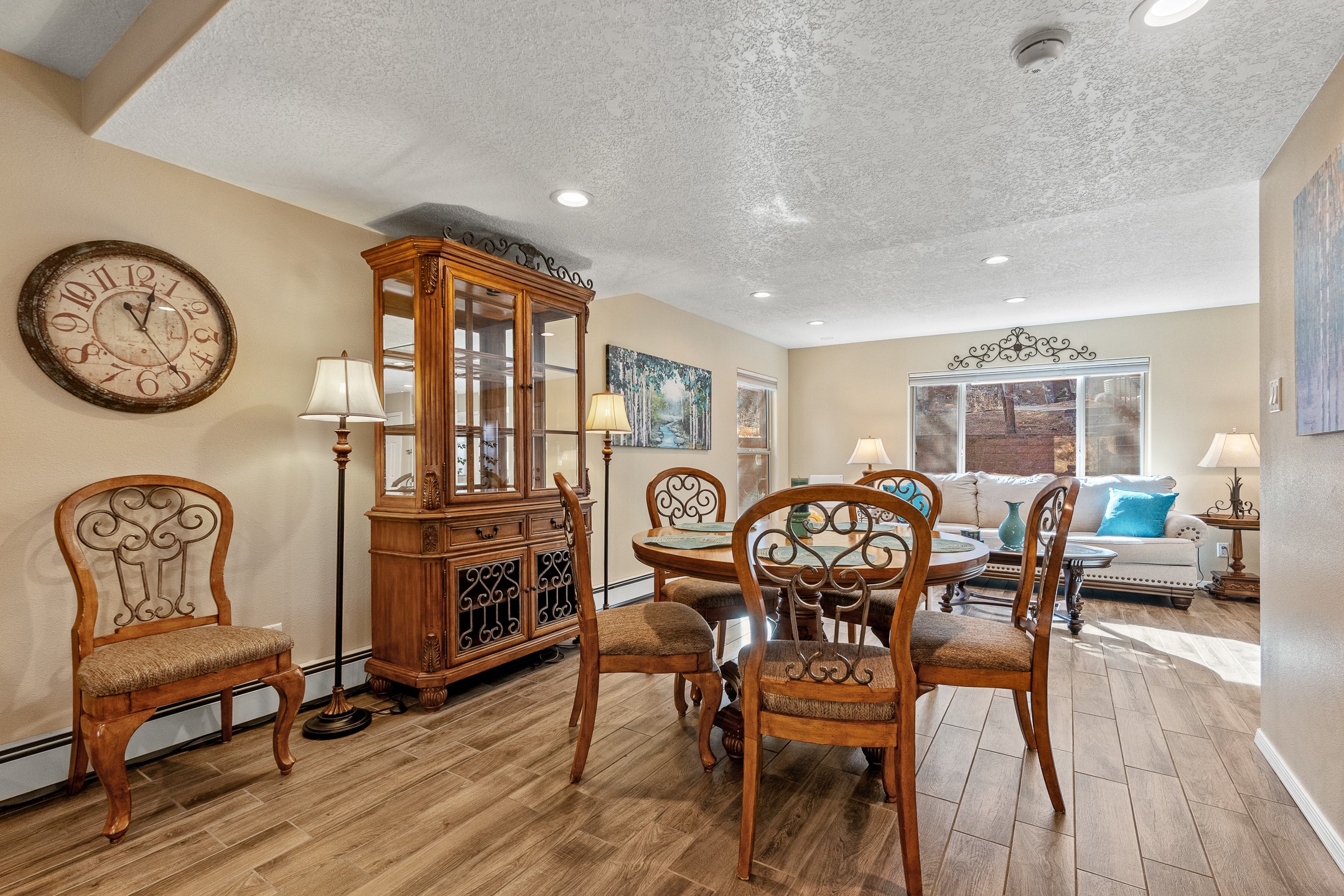 Beautifully remodeled townhome with a desirable multi-level floor plan, multiple decks with scenic views, mini split air conditioning, and a bright loft to top it all off. Welcome to 998 Alamo!Nestled among towering pines, this home offers a peaceful sense of retreat while still showcasing lovely views in North Mesa. Upon entry, you're greeted by updated recessed lighting and flooring that flows seamlessly throughout the main level. Just around the corner, a formal dining area opens to an inviting open-concept layout, connecting the kitchen and living room and extending onto a spacious deck--perfect for entertaining or simply enjoying the tranquil setting. The modern kitchen is equipped with stainless steel appliances, solid-surface countertops, and a charming window over the sink with views of the pines beyond. A conveniently located powder room completes this level.Upstairs, the living quarters await! The primary suite includes an en suite bathroom with a beautifully-tiled, modern shower, as well as a private deck to enjoy views of the night sky. The guest wing features two additional bedrooms, a full bathroom, and a dedicated laundry room.The next level reveals a bright and cheerful loft with large windows, offering flexibility as a home office, reading nook, or additional living space.On the lower level, you'll find a generous recreation area set up with a hot tub--perfect for relaxing after a long day. The spacious two-car garage includes ample storage.This thoughtfully updated home combines comfort, style, and serene mountain living. Don't miss the opportunity to make it yours--schedule a showing today before it's gone!