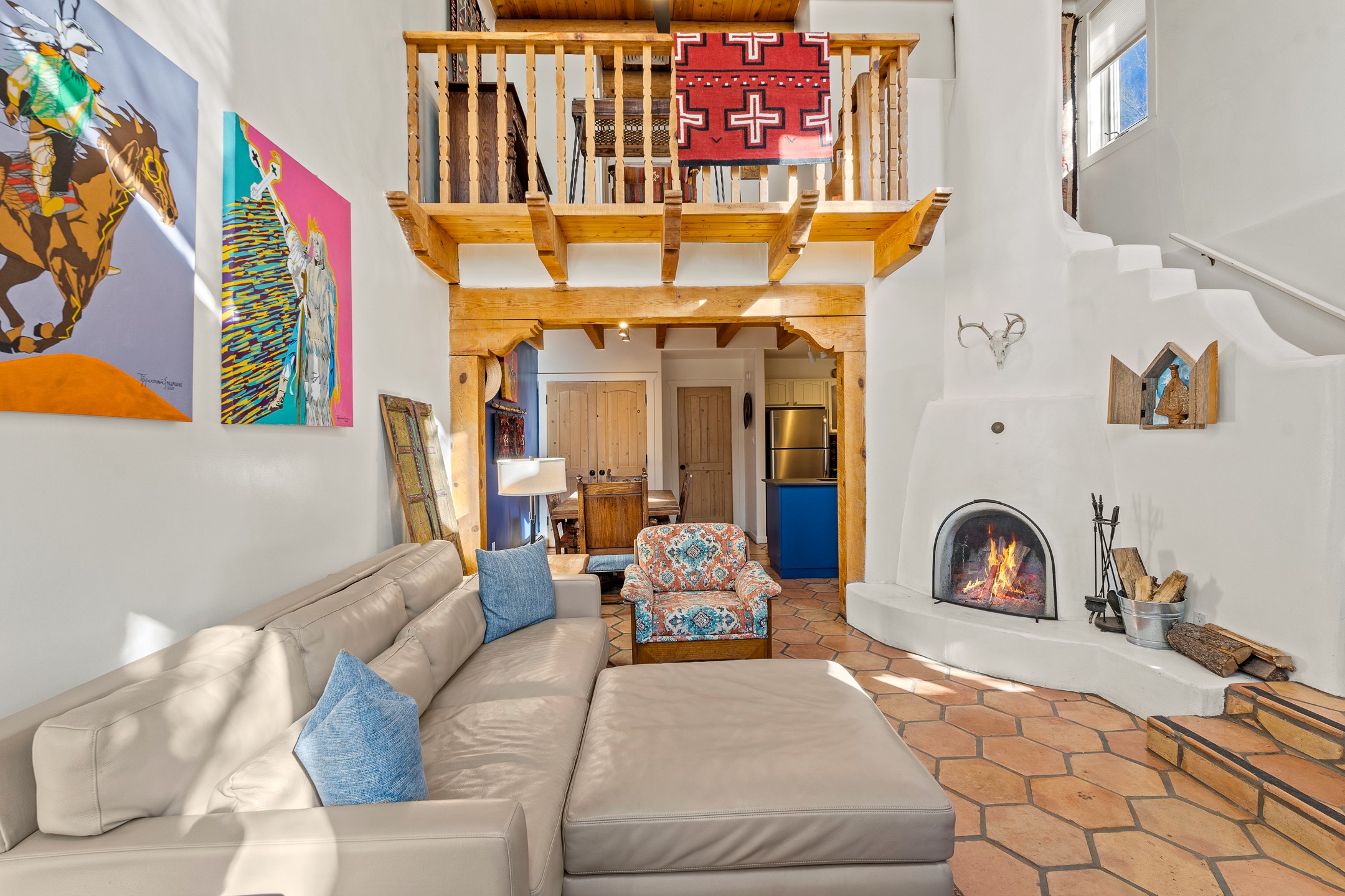 Tucked within the desirable Las Brisas community, 624 Galisteo Street, Unit 27 offers an exceptional opportunity to own a true lock-and-leave residence in the heart of Santa Fe. Just a short walk from the historic Santa Fe Plaza, this thoughtfully designed condominium places world-class dining, galleries, shopping, and cultural landmarks right at your doorstep, making it equally well suited as a primary residence, second home, or rental investment.The home blends classic Santa Fe character with comfortable functionality. Downstairs, the inviting living area is anchored by a cozy kiva fireplace--perfect for cool evenings and relaxed gatherings. The layout provides a natural flow between living, dining, and kitchen spaces, creating an atmosphere that feels warm and welcoming yet easy to maintain.Outdoor living is a highlight, with a private front courtyard ideal for morning coffee or evening dining, as well as a deck off the primary bedroom that provides a peaceful retreat above it all.With its prime walkable location, low-maintenance lifestyle, and strong rental appeal, this Las Brisas condominium captures the essence of Santa Fe living--charming, convenient, and endlessly enjoyable.