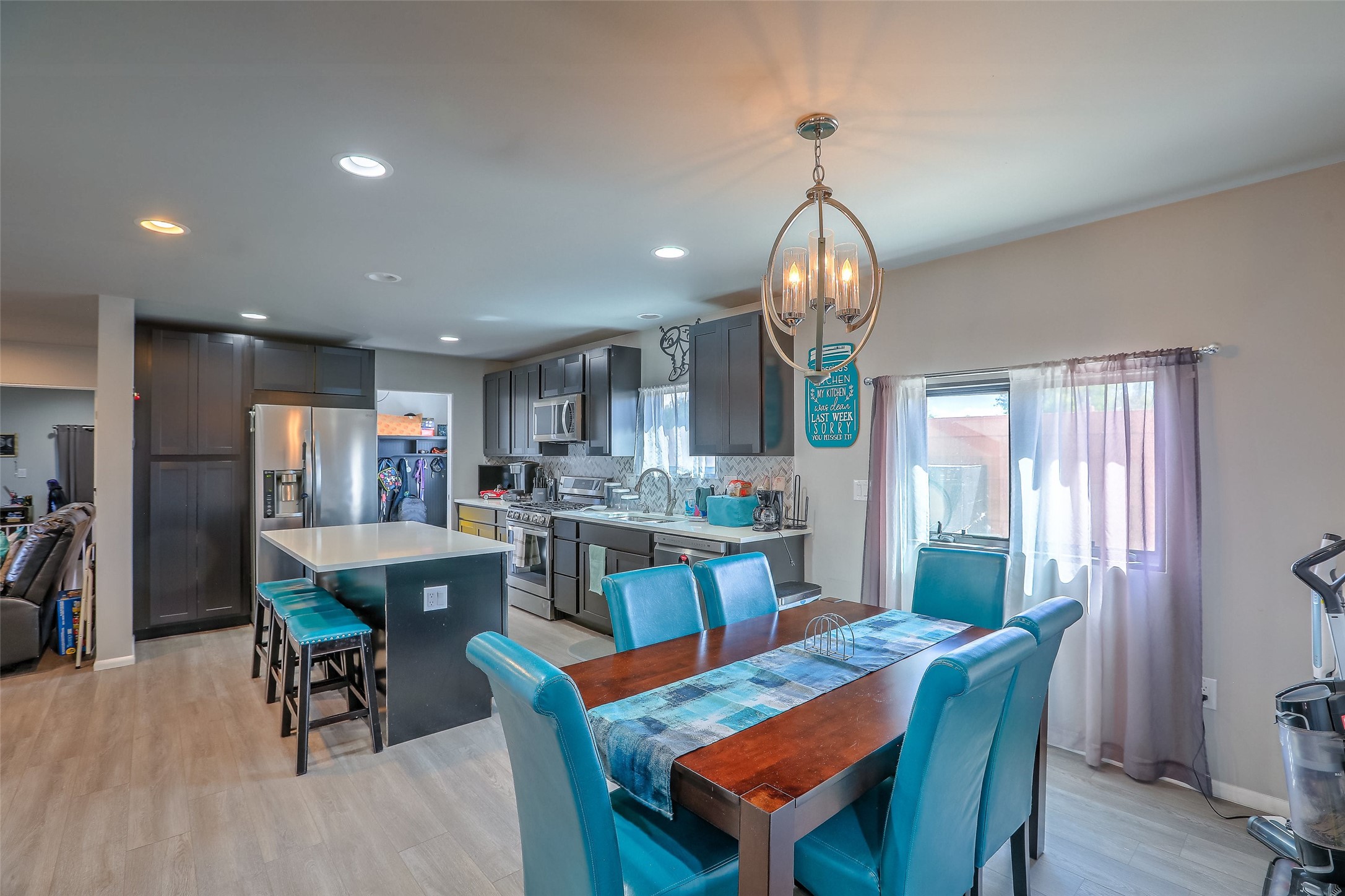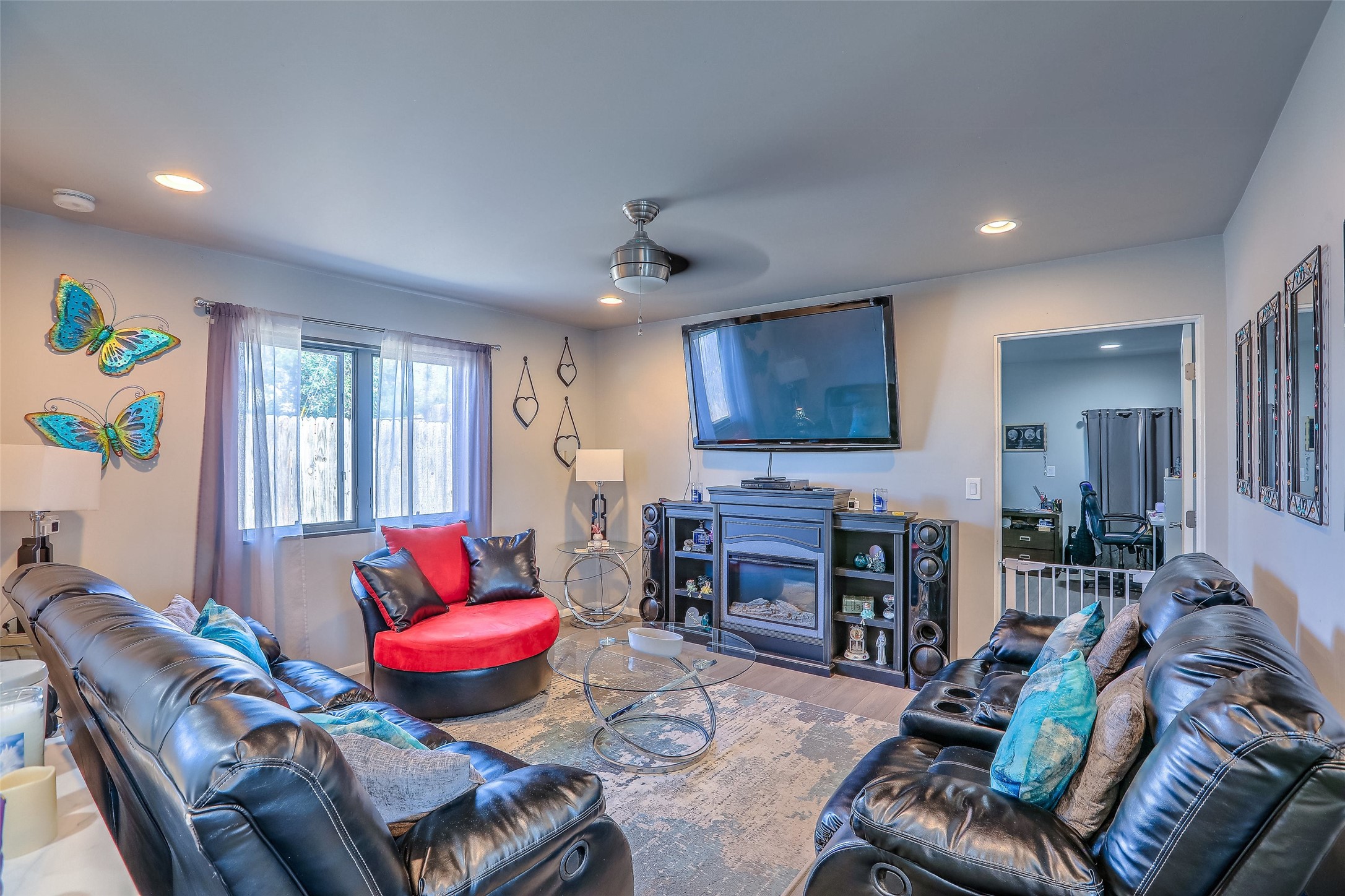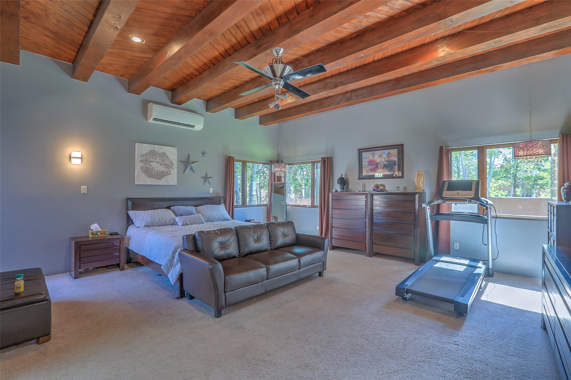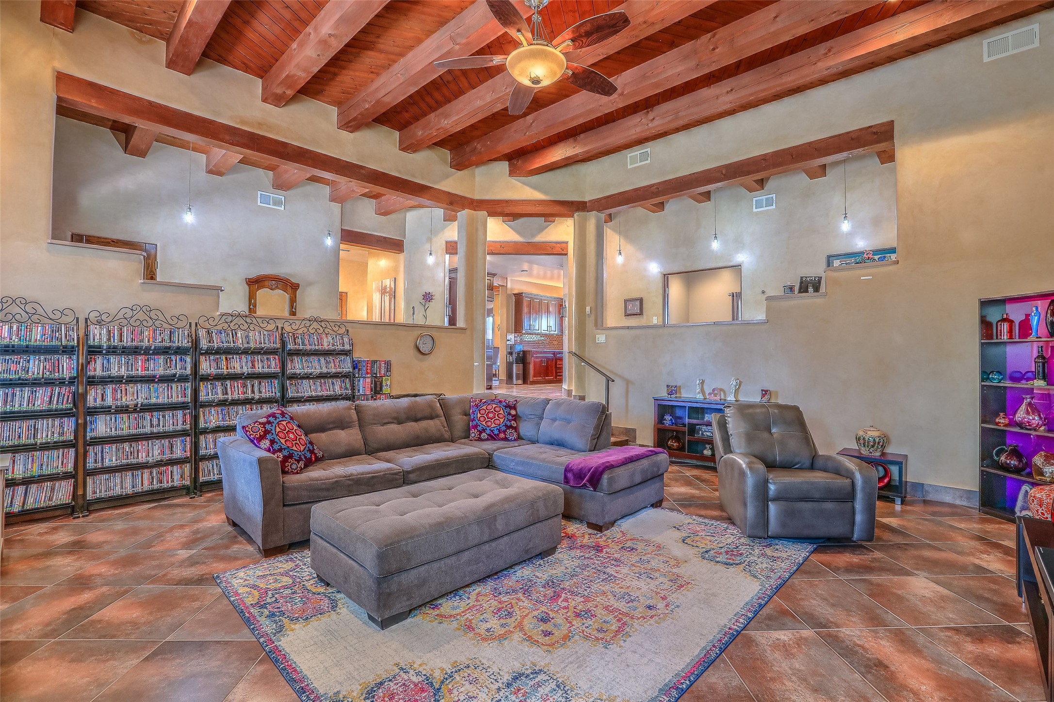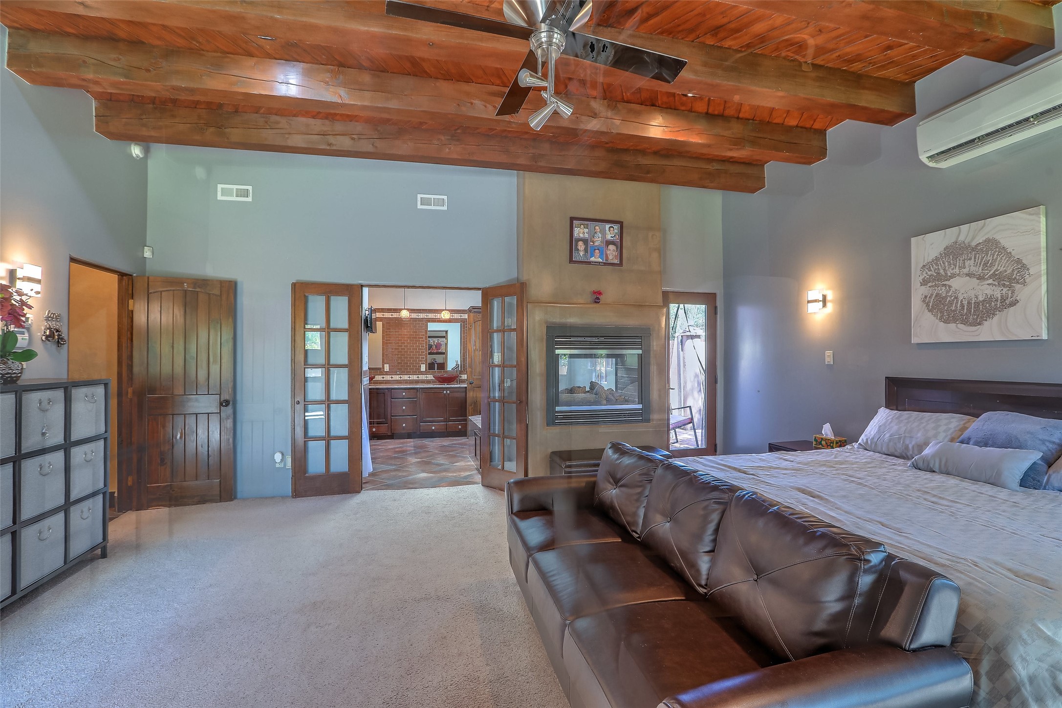 No showings until Mon 1/12. Priced to sell! Don't miss our on this opportunity!!! Absolute Stunner in Santa Fe! Perfect for a Large Family or Investor. Walk into the 2,764 SF 3 Bedroom, 3.5 Bath Primary Home and be greeted with Luxury! A Huge Sunken Family Room creates a Cozy and Intimate Atmosphere for Family Gatherings centered around a Fireplace accented with a Stonewall covering the entire South Wall. Magnificent Vigas and Diamond Finish Walls provide the Perfect Touch! The Kitchen is a True Chefs Delight! The Main Home includes an En Suite, Office, Radiant Floor Heating, Central Vac System, Water Softener System, and a High Efficiency Tankless Water Heater. The Comfy Primary Suite is equipped with its own Fireplace offering the Ultimate Relaxation. Attached to the Main Home is a Fabulous 1,008 SF Efficiency Suite with its own Private Entrance and includes 1 Bedroom, 1 Bath, Office, Full Kitchen, Laundry Room and Living Area. Behind the Full Size Enclosed Basketball Court you will find an additional 1,560 SF Guest Home that was built in 2022. This Modern New Home offers 4 Bedrooms; a Primary Suite, an En Suite, and 2 Guest Rooms and 3 Baths. Features include all Tile Flooring, Tankless Water Heater, TPO Roof, Fenced Yard and its own Private Road. The Two Large (480 SF Each) Utility Sheds/Carports also convey. Don't Miss Out on this One of a Kind Opportunity!!