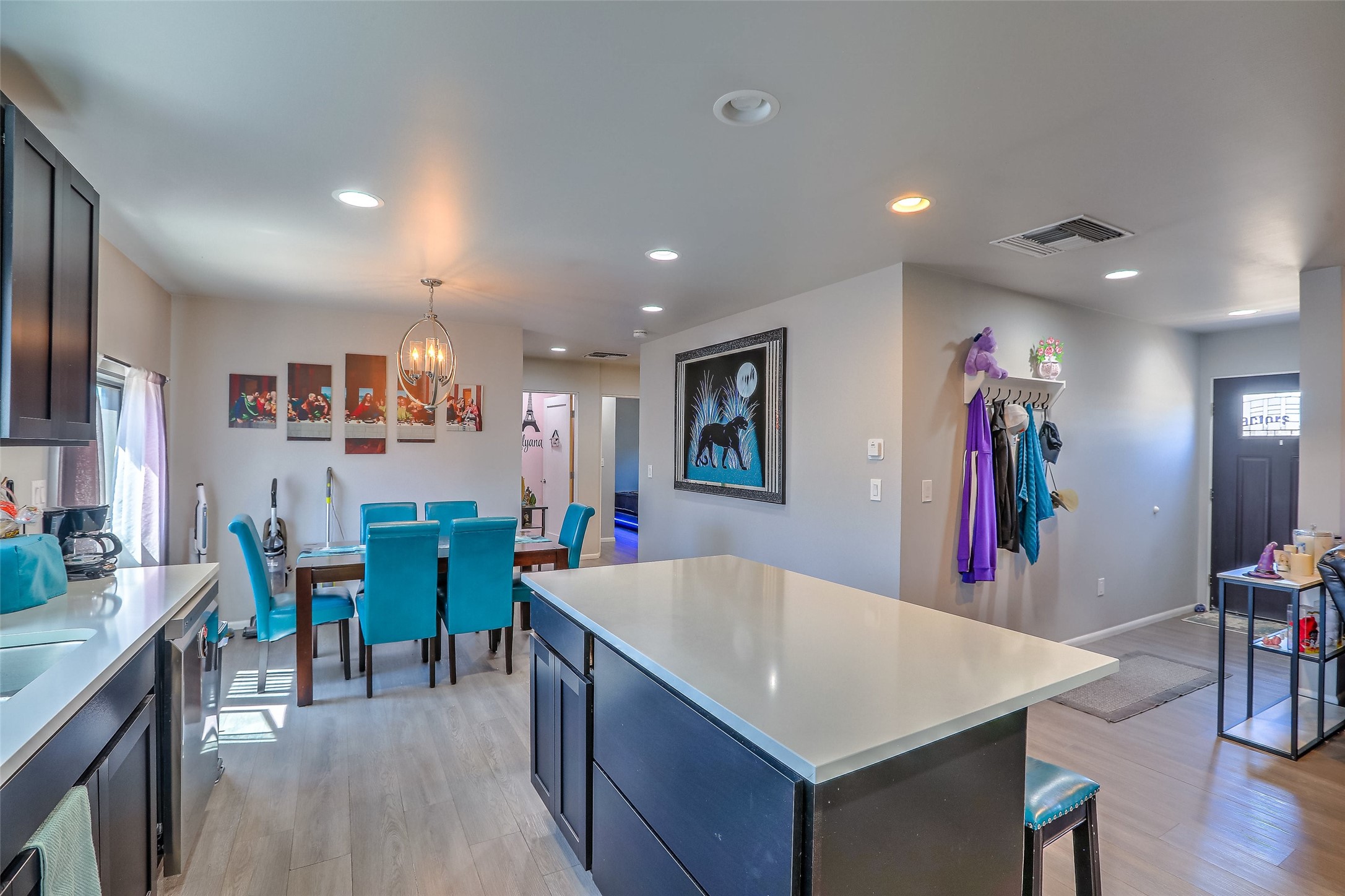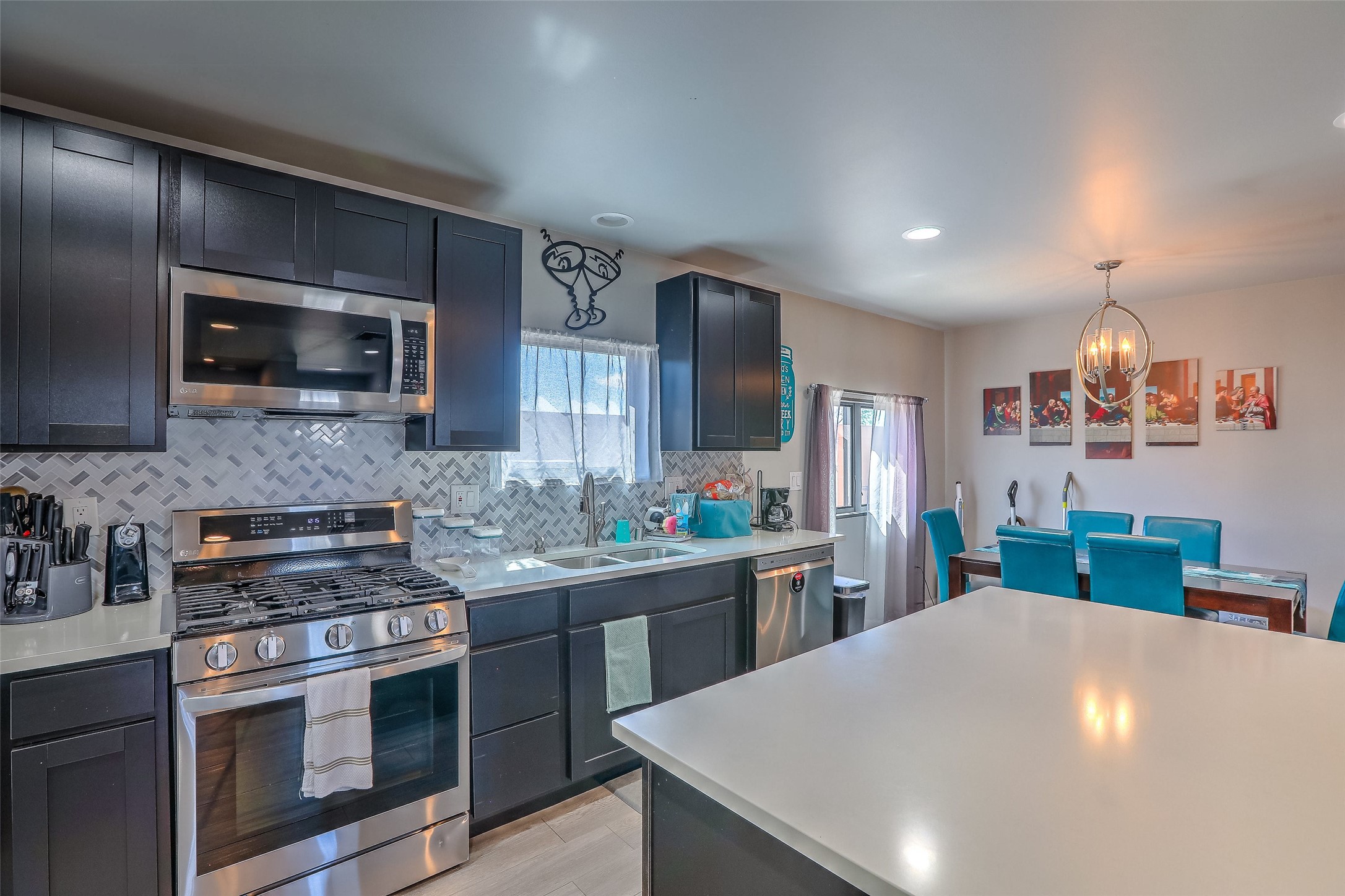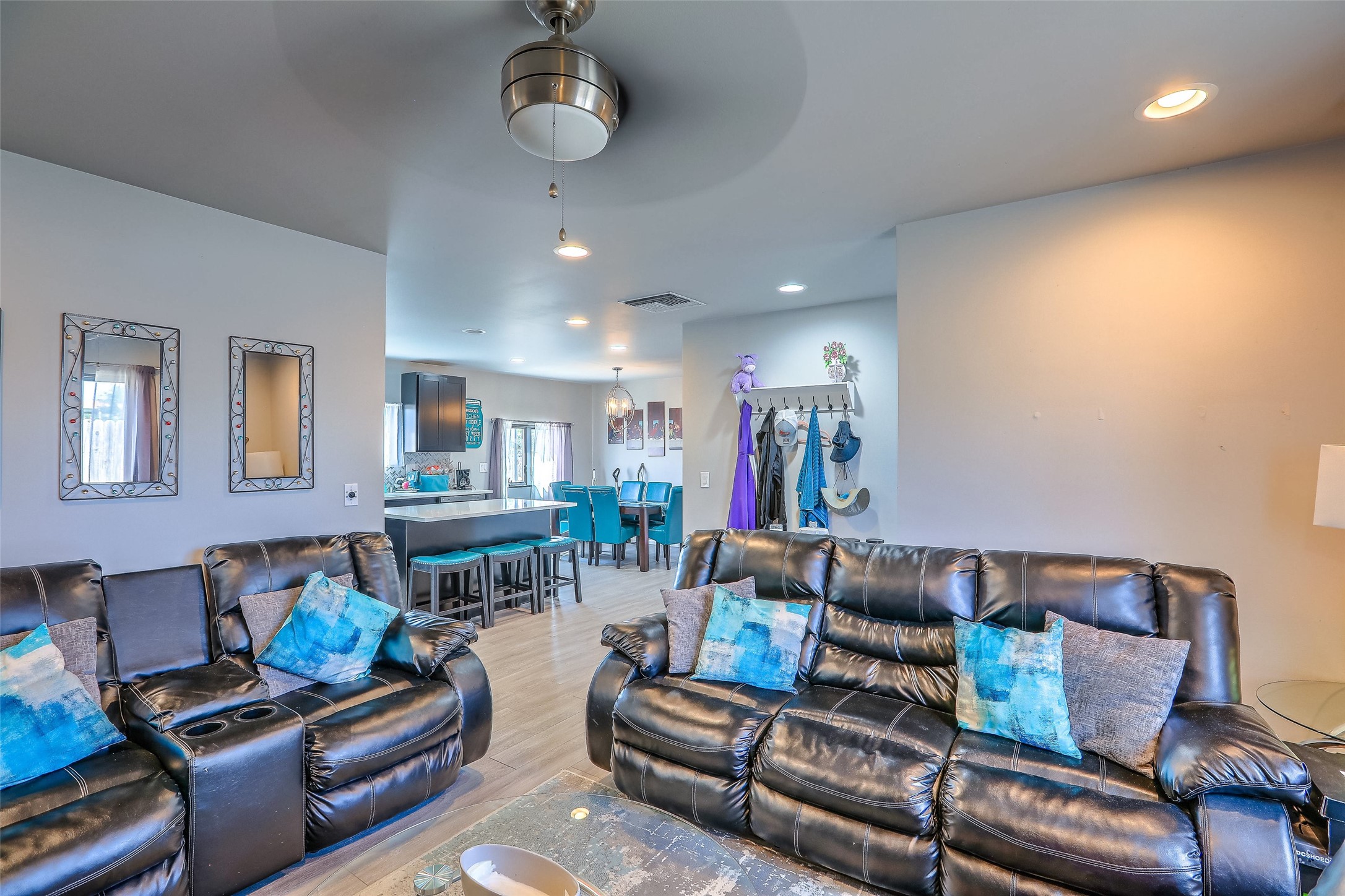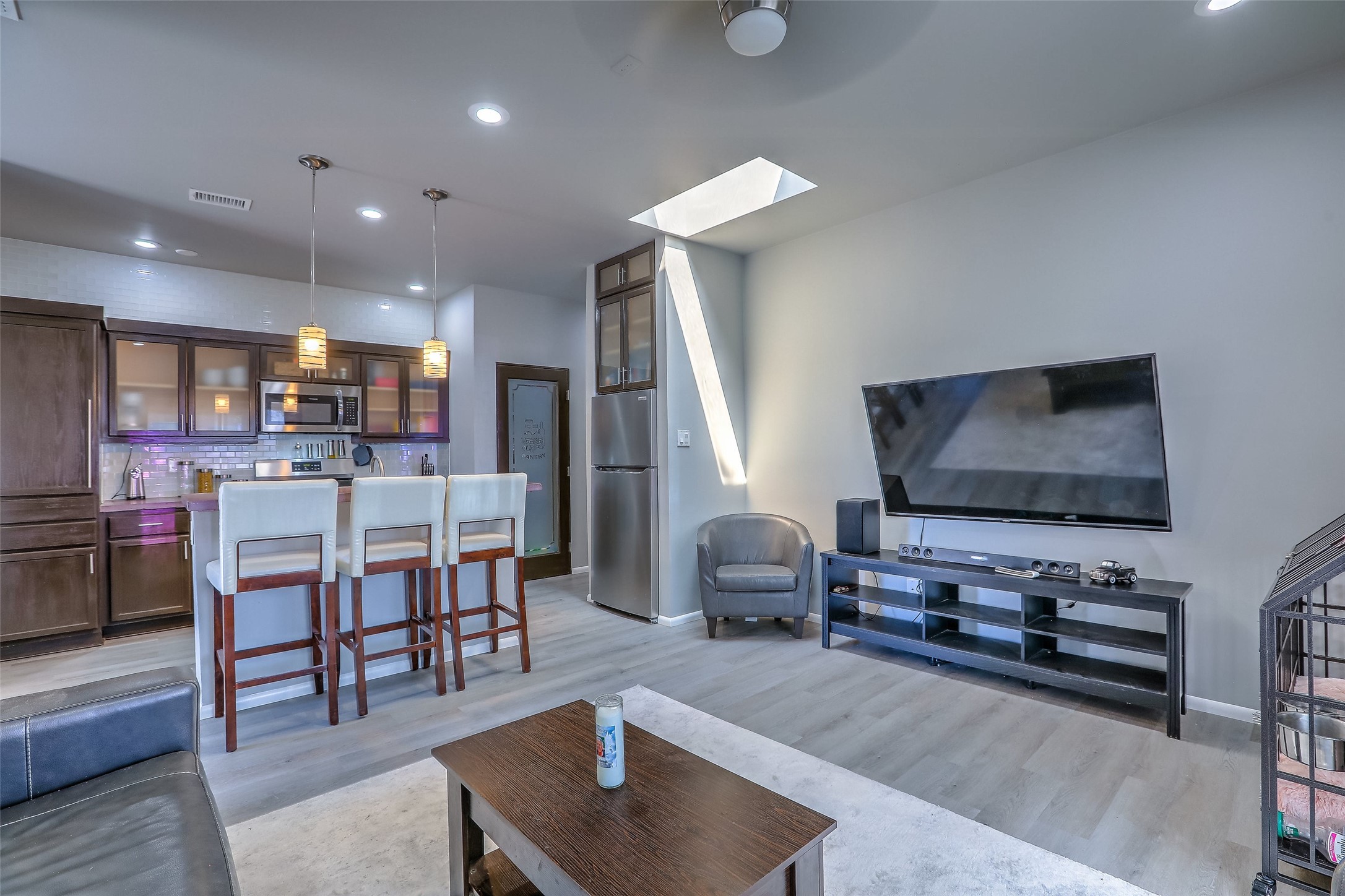 No showings until Mon 1/12. Priced to sell! Don't miss our on this opportunity!!! Absolute Stunner in Santa Fe! Perfect for a Large Family or Investor. Walk into the 2,764 SF 3 Bedroom, 3.5 Bath Primary Home and be greeted with Luxury! A Huge Sunken Family Room creates a Cozy and Intimate Atmosphere for Family Gatherings centered around a Fireplace accented with a Stonewall covering the entire South Wall. Magnificent Vigas and Diamond Finish Walls provide the Perfect Touch! The Kitchen is a True Chefs Delight! The Main Home includes an En Suite, Office, Radiant Floor Heating, Central Vac System, Water Softener System, and a High Efficiency Tankless Water Heater. The Comfy Primary Suite is equipped with its own Fireplace offering the Ultimate Relaxation. Attached to the Main Home is a Fabulous 1,008 SF Efficiency Suite with its own Private Entrance and includes 1 Bedroom, 1 Bath, Office, Full Kitchen, Laundry Room and Living Area. Behind the Full Size Enclosed Basketball Court you will find an additional 1,560 SF Guest Home that was built in 2022. This Modern New Home offers 4 Bedrooms; a Primary Suite, an En Suite, and 2 Guest Rooms and 3 Baths. Features include all Tile Flooring, Tankless Water Heater, TPO Roof, Fenced Yard and its own Private Road. The Two Large (480 SF Each) Utility Sheds/Carports also convey. Don't Miss Out on this One of a Kind Opportunity!!