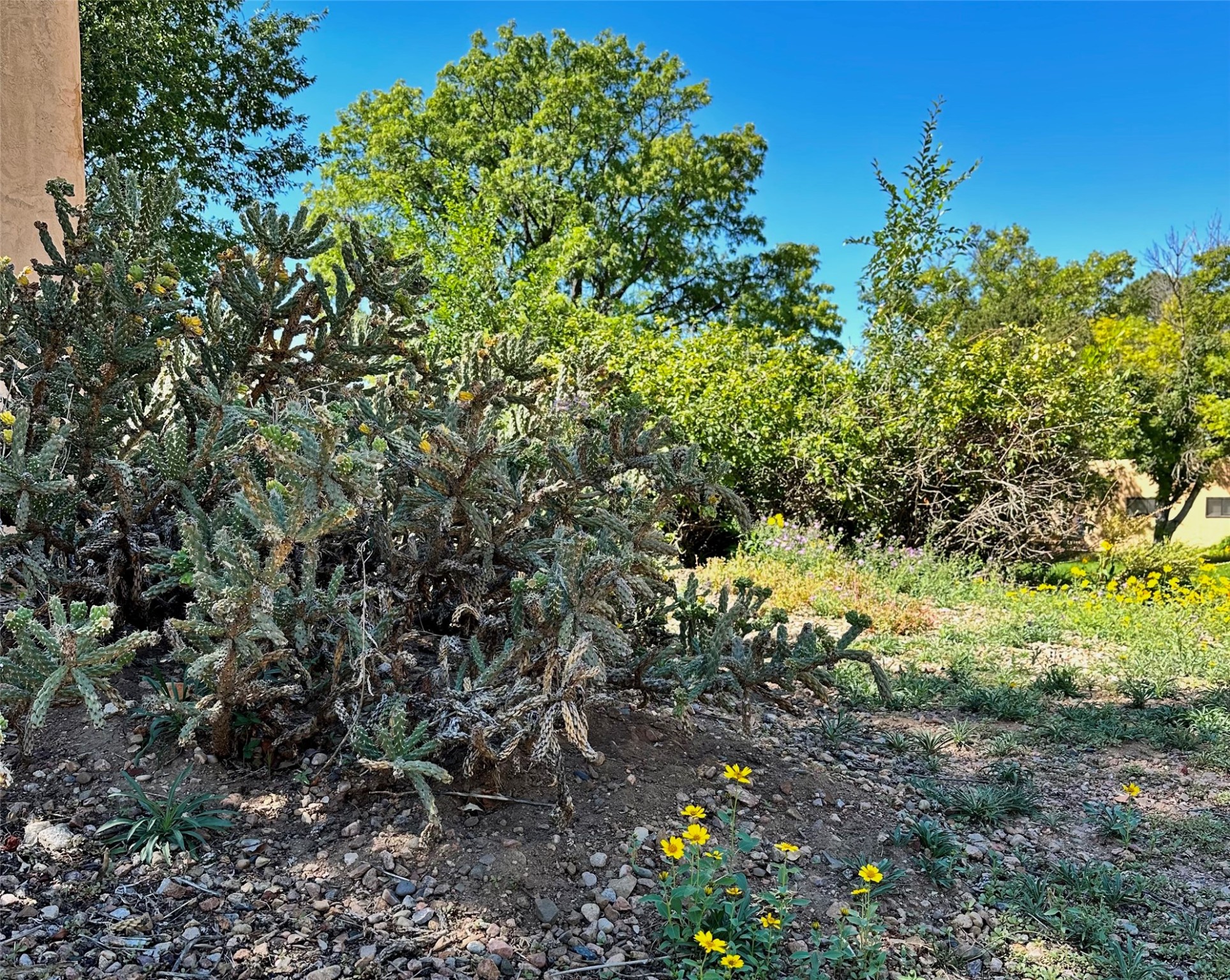 The finest of the remaining single-family homes in this downtown core district gated communities. Plaza del Monte represents a lifestyle that is seldom found on the east or north side of the City Different. Get in on the ground floor of this unique opportunity. It will only get better as time goes on. Mid-Century Modern with a contemporary twist. This 2 bedroom, 2 bath home has a sun filled main living area, a sunroom that opens onto a fabulous large outdoor yard, waiting to be landscaped to complete the masterpiece this home offers. Some photos have been virtually staged.