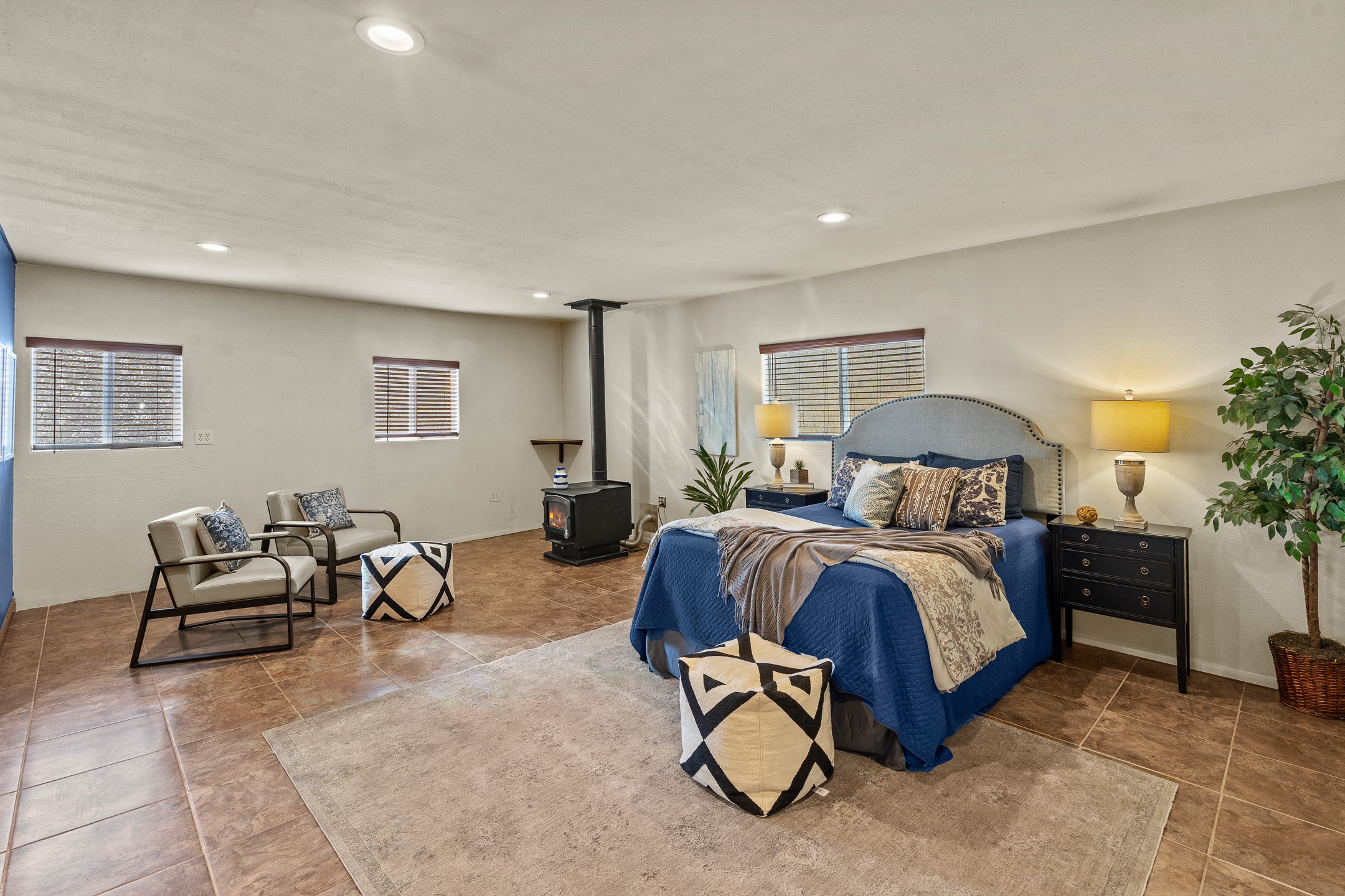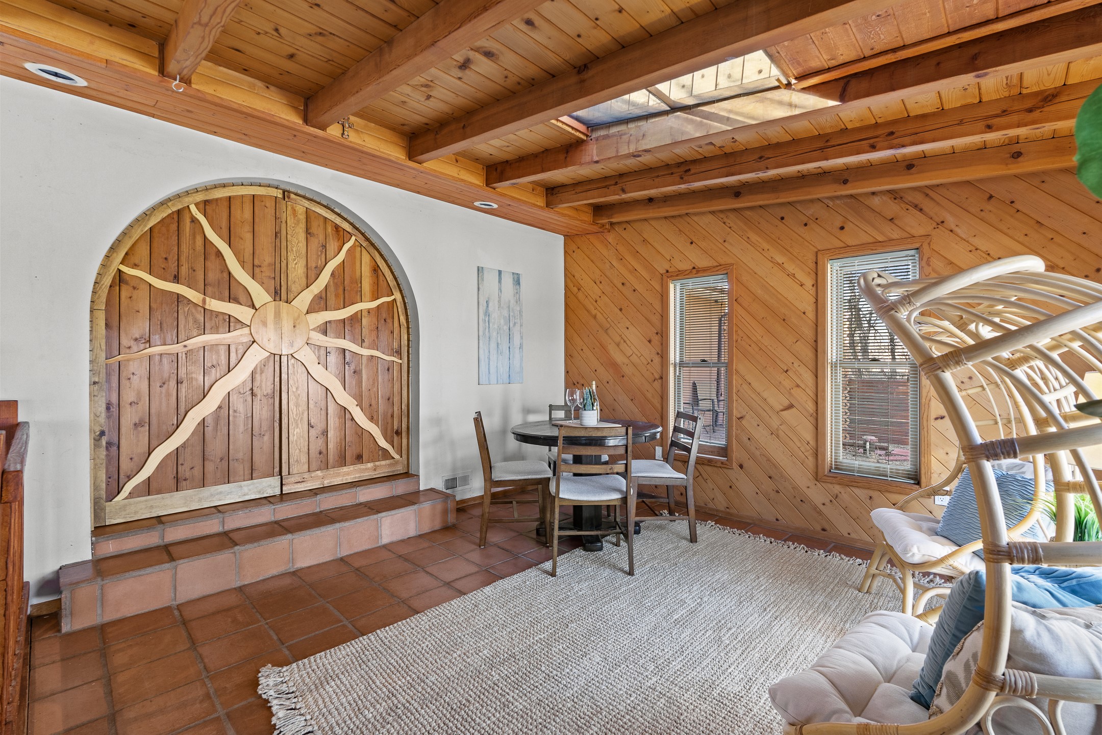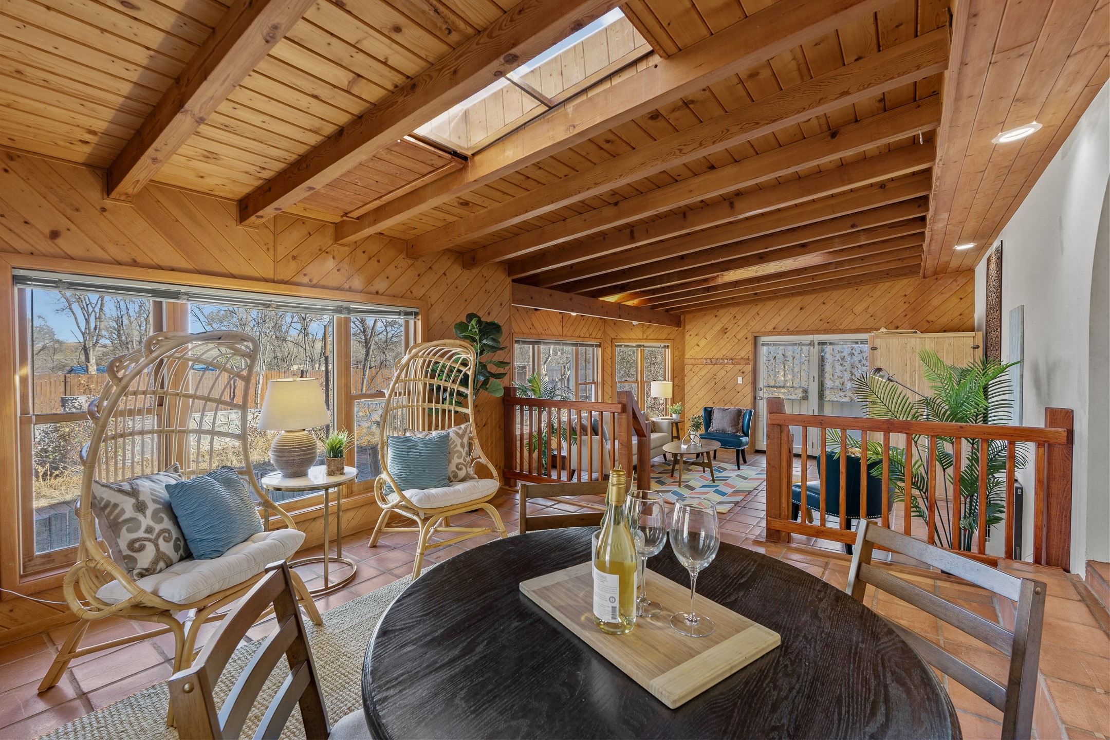 Beautiful 4-Bedroom / 3-Bath Ranch-Style Home with Private Well, Desirable Split Floor Plan, Three Living Areas, and a Stunning Patio Overlooking Mature Landscaping. Welcome to 5 Walnut Loop!Tucked into the sought-after Sombrillo community, this inviting home offers beautiful views and an exceptional blend of comfort, space, and functionality. Upon entry, classic Saltillo tile floors welcome you and lead into the galley kitchen--the true heart of the home. The kitchen features butcher block countertops, stainless steel appliances including a double oven, generous cabinetry, and ample storage.A dedicated dining area with updated lighting creates an ideal setting for entertaining and opens through large custom doors to an expansive covered patio addition. This light-filled space boasts skylights, tongue-and-groove ceilings, and promotes indoor-outdoor living in the summers. A large bay window frames views of the backyard, complete with rock walls and mature landscaping, while a private sauna offers a secluded getaway for rest and relaxation.The west wing of the home offers a spacious primary suite warmed by a cozy wood stove, featuring a custom closet and a full ensuite bathroom. On the east wing, you'll find an additional living area with French doors opening to a side patio, along with three guest bedrooms and a second primary suite--providing abundant space and flexibility for guests, multigenerational living, or home offices.This thoughtfully updated home is a peaceful sanctuary in Sombrillo, conveniently located with an easy commute to Santa Fe or Los Alamos. Don't miss this opportunity--schedule your showing today before it's gone!