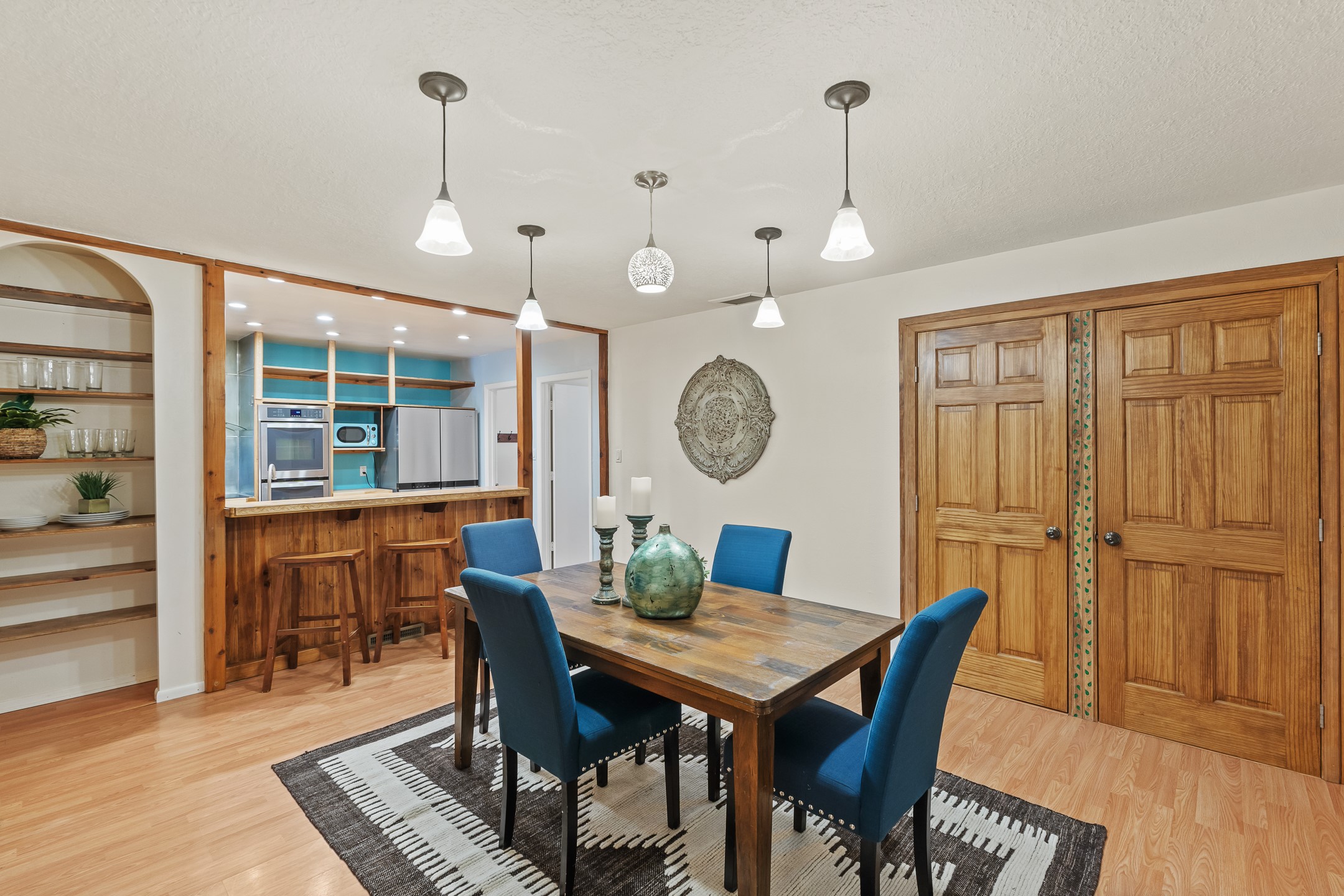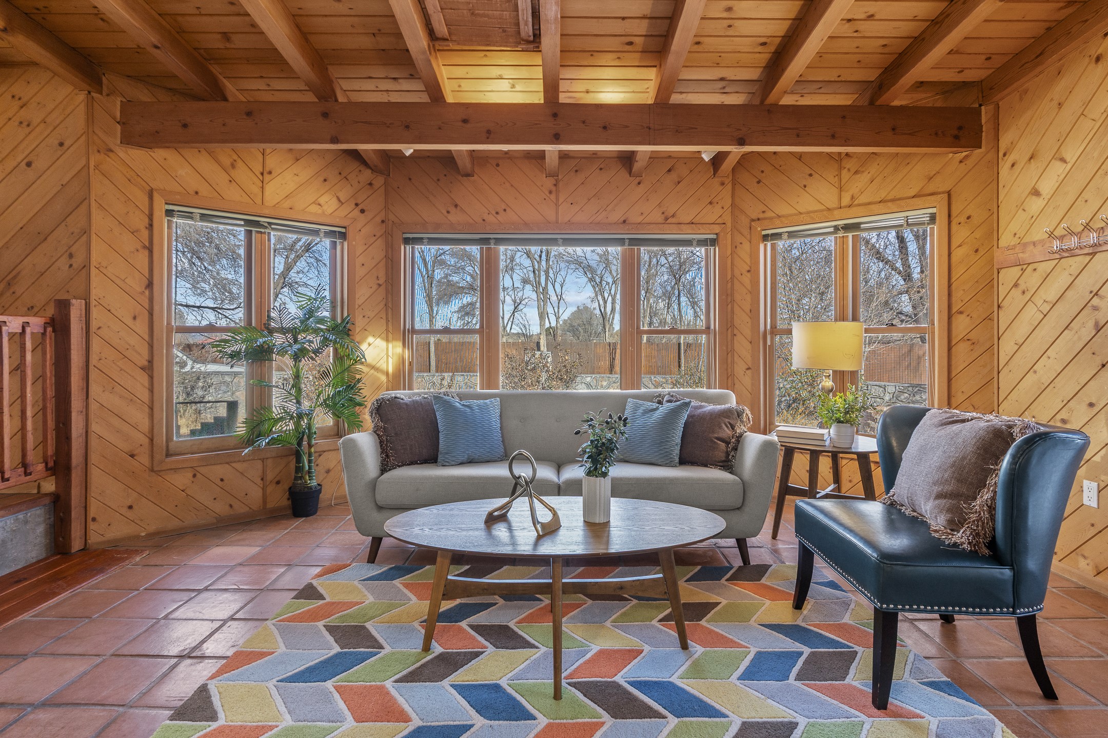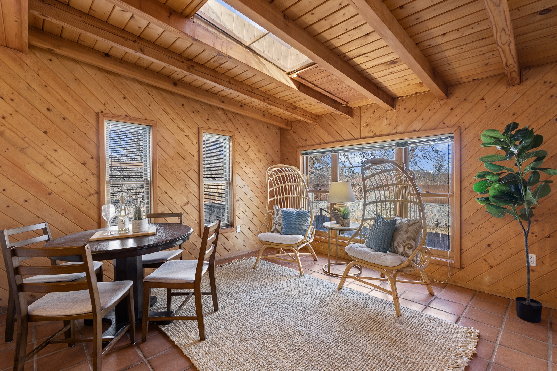 Beautiful 4-Bedroom / 3-Bath Ranch-Style Home with Private Well, Desirable Split Floor Plan, Three Living Areas, and a Stunning Patio Overlooking Mature Landscaping. Welcome to 5 Walnut Loop!Tucked into the sought-after Sombrillo community, this inviting home offers beautiful views and an exceptional blend of comfort, space, and functionality. Upon entry, classic Saltillo tile floors welcome you and lead into the galley kitchen--the true heart of the home. The kitchen features butcher block countertops, stainless steel appliances including a double oven, generous cabinetry, and ample storage.A dedicated dining area with updated lighting creates an ideal setting for entertaining and opens through large custom doors to an expansive covered patio addition. This light-filled space boasts skylights, tongue-and-groove ceilings, and promotes indoor-outdoor living in the summers. A large bay window frames views of the backyard, complete with rock walls and mature landscaping, while a private sauna offers a secluded getaway for rest and relaxation.The west wing of the home offers a spacious primary suite warmed by a cozy wood stove, featuring a custom closet and a full ensuite bathroom. On the east wing, you'll find an additional living area with French doors opening to a side patio, along with three guest bedrooms and a second primary suite--providing abundant space and flexibility for guests, multigenerational living, or home offices.This thoughtfully updated home is a peaceful sanctuary in Sombrillo, conveniently located with an easy commute to Santa Fe or Los Alamos. Don't miss this opportunity--schedule your showing today before it's gone!