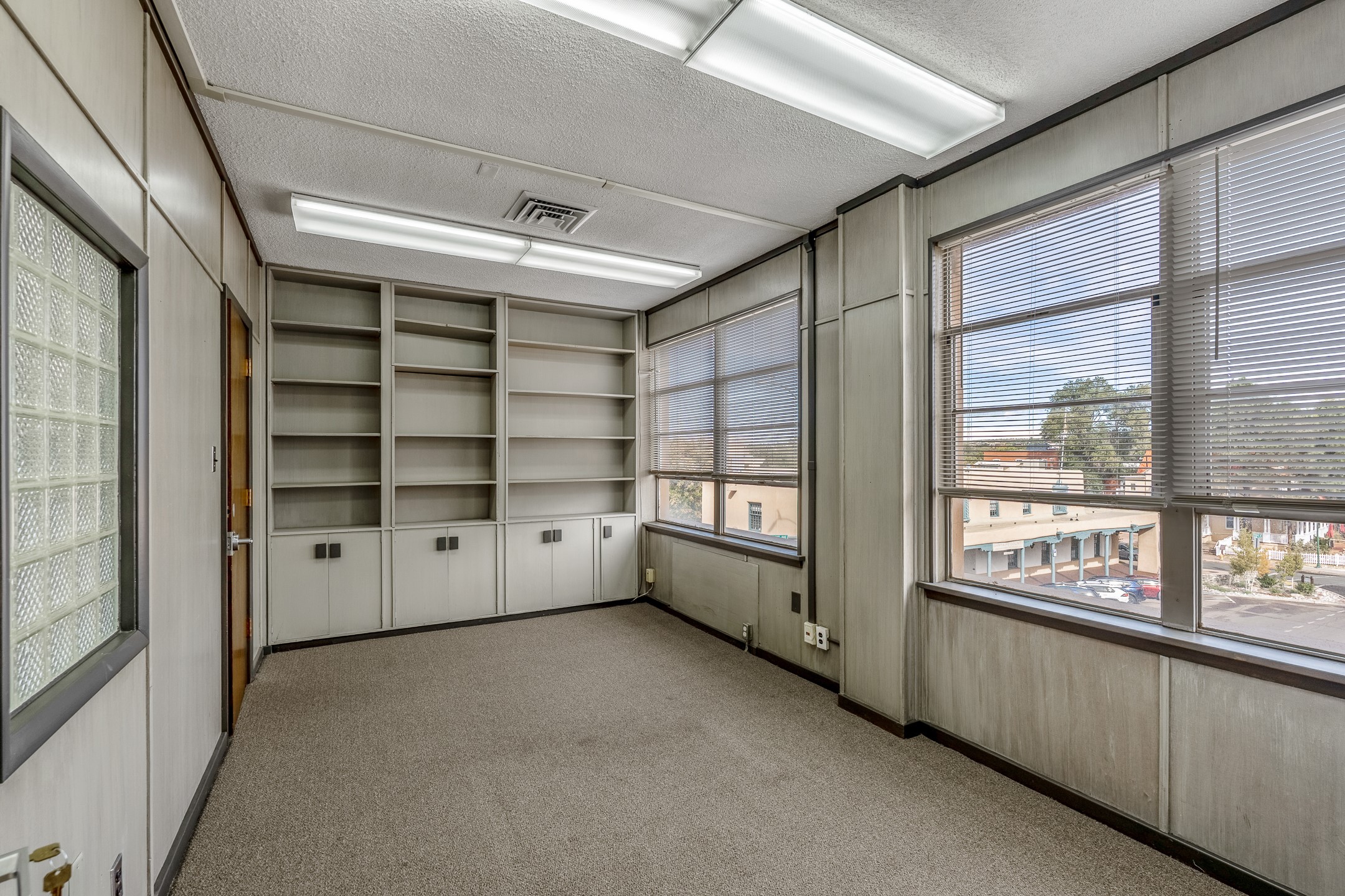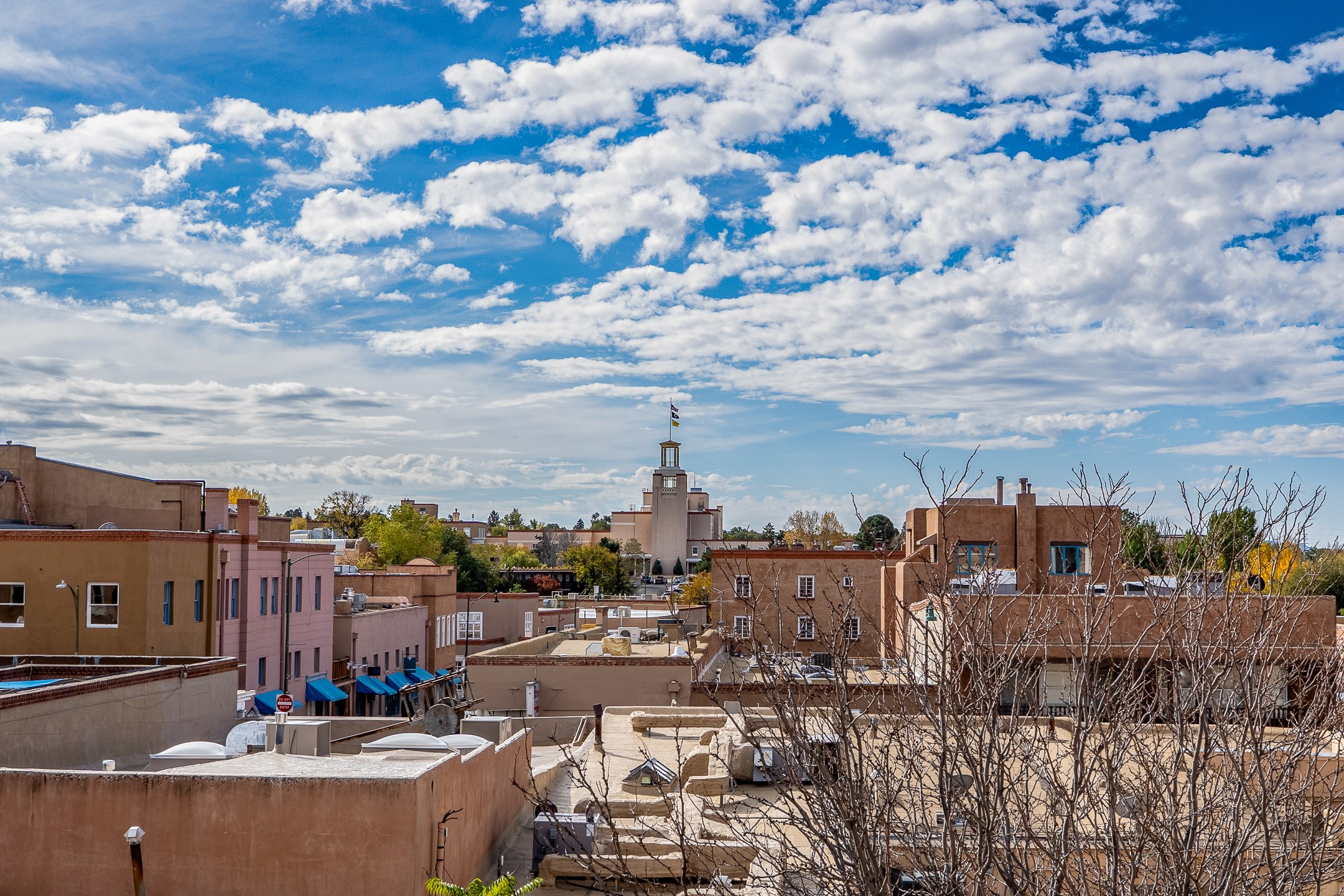 In the heart of Downtown Santa Fe Plaza, the Bokum Building offers three stories of beautiful downtown views. Just moments from world-class galleries--including the new multi-million-dollar Georgia O'Keeffe Museum, fine dining, premier retail, government buildings, the Santa Fe Convention Center, and much more. This charming property features direct street access on Palace Ave with ADA accessibility. The first floor, approx. 4,060/sf, includes 12 offices, open work areas, and in-suite restrooms. The second floor, accessible by both elevator and stairs, spans approx. 8,197/sf and includes 18 offices, a conference room, an oversized meeting/training area, a large kitchenette, in-suite restrooms with stalls, and excellent downtown views. The third floor, approx. 3,123/sf, serves as the executive suite, complete with an in-suite kitchenette, private shower, and built-in cabinetry. This level includes 9 private offices and open work areas, with the far end of the suite boasting sweeping views of the Plaza and the Sangre de Cristo Mountains. Additional basement storage provides approx. 1,921/sf, and the property offers 18 offsite parking spaces at 22 Chapelle Street--an exceptional amenity in the downtown core. Including the legendary Doa Tules's Gambling Hall, now home to Los Magueyes Mexican Restaurant, this is a rare opportunity to occupy one of Santa Fe's most desirable versatile BCD zoned properties in the heart of its vibrant historic district.