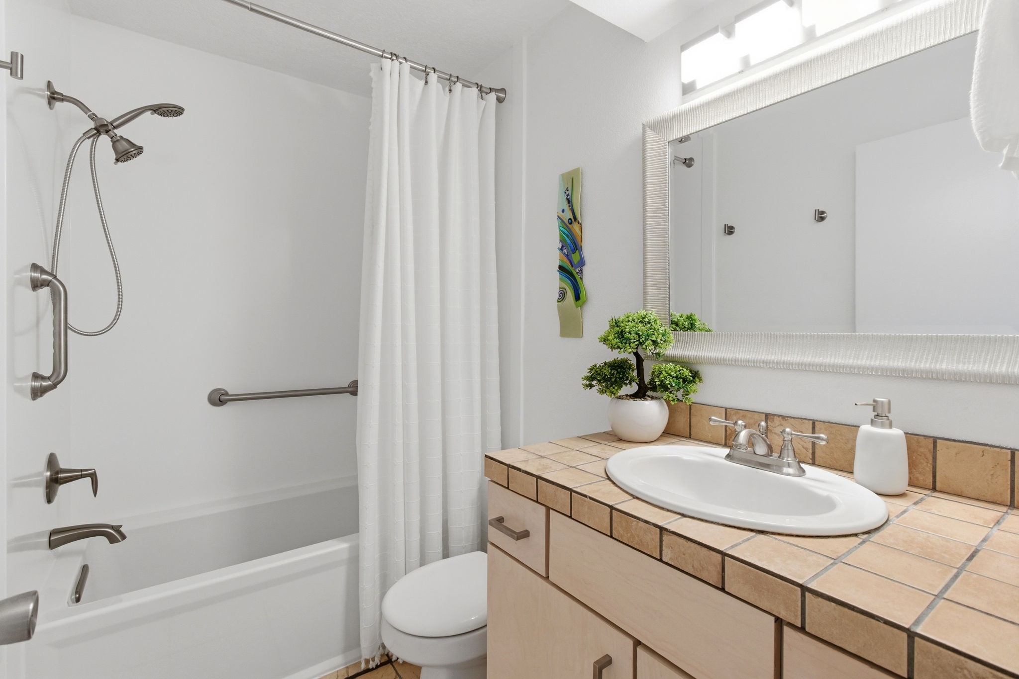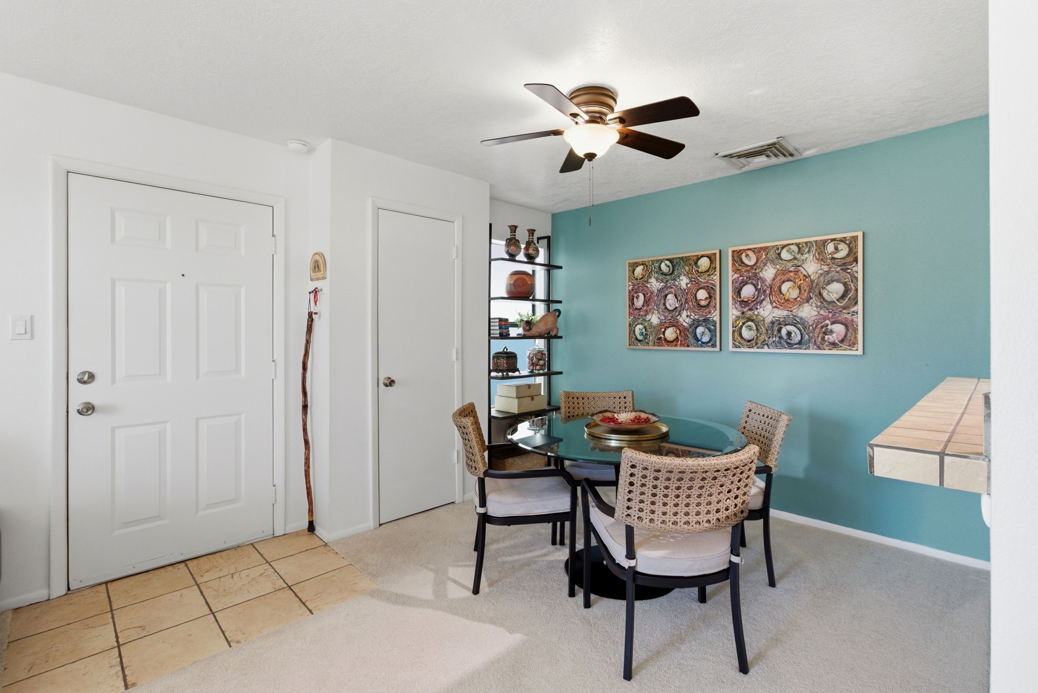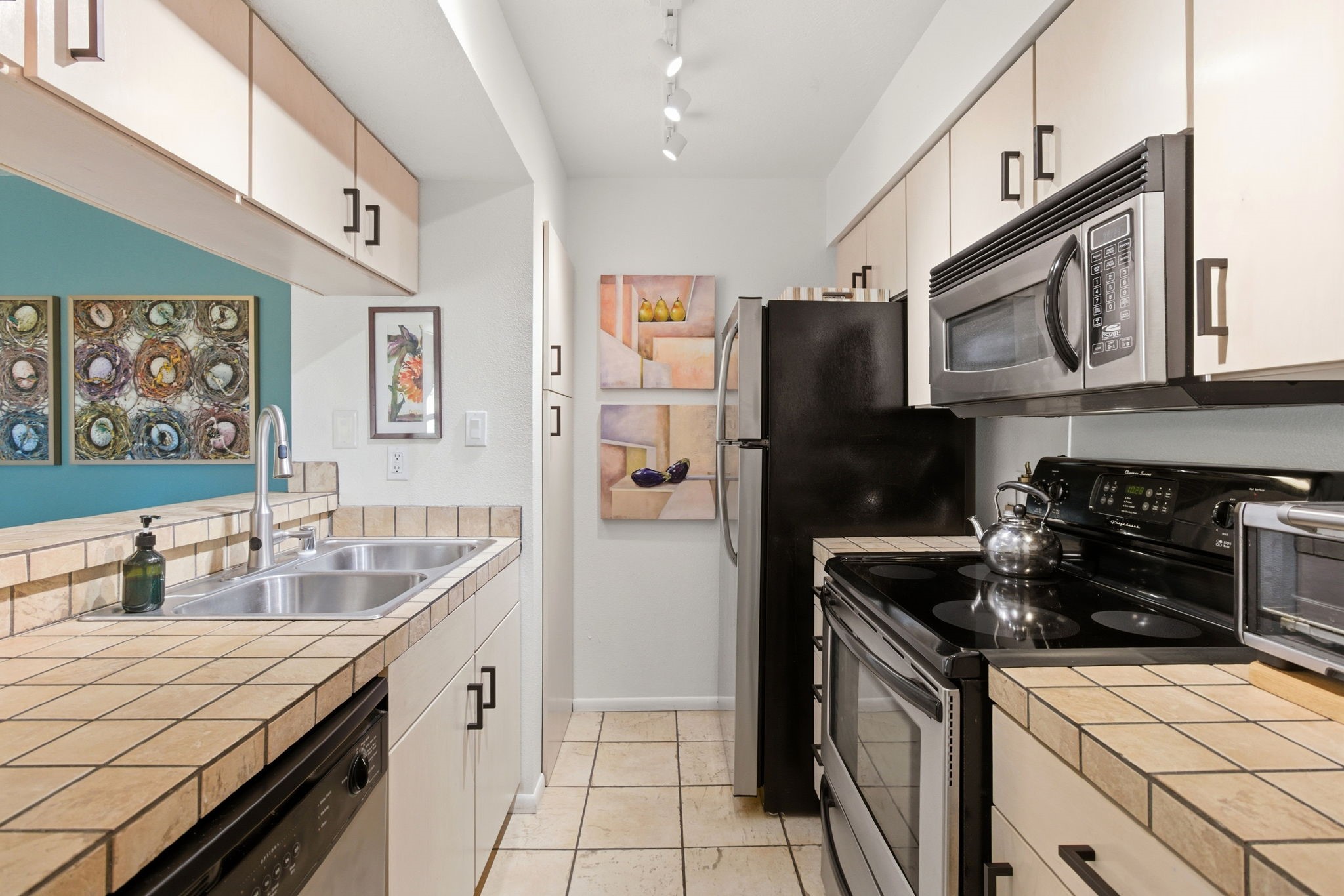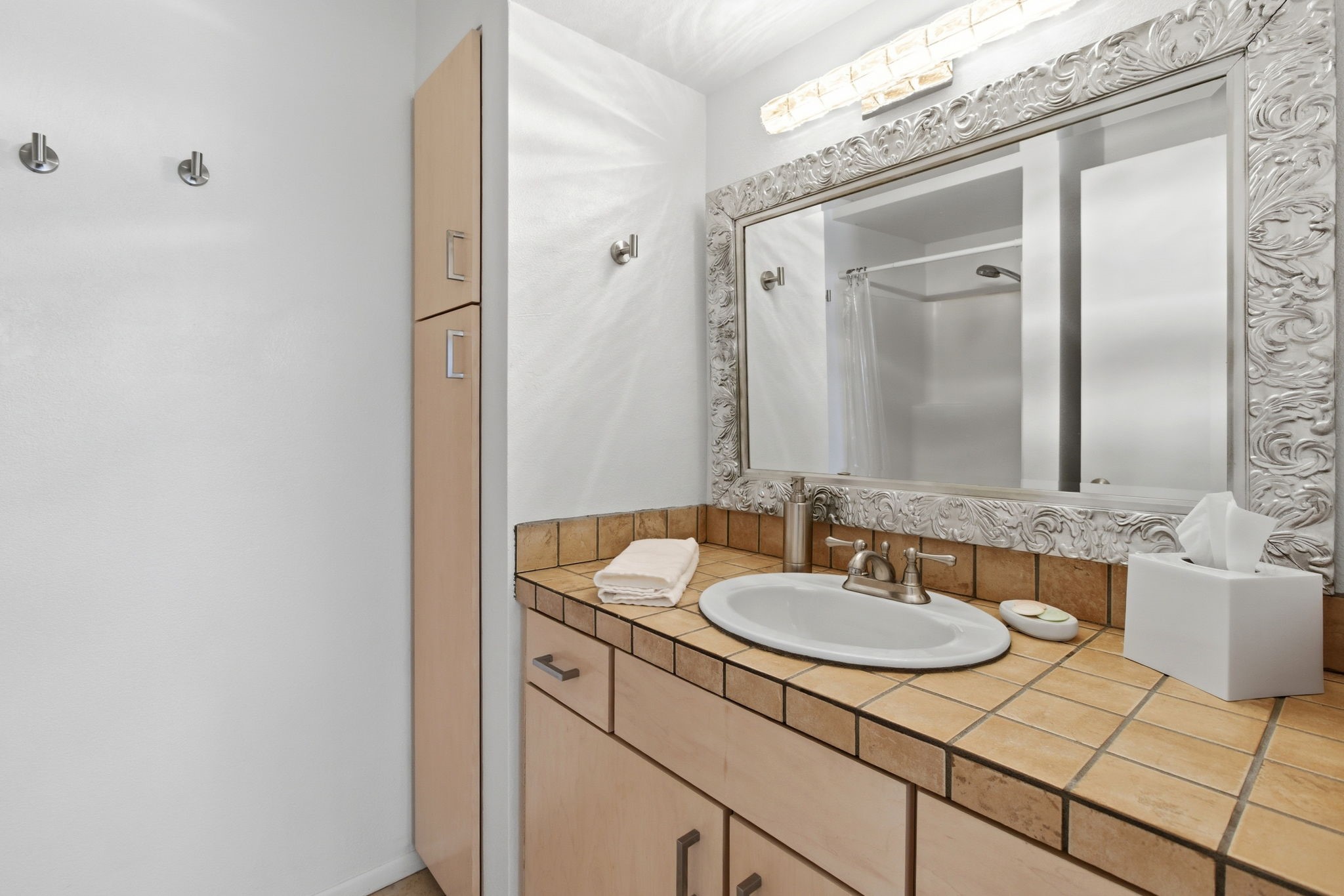 Bathed in natural light, this south-facing second-floor end-unit condo is a rare offering in The Reserve, one of Santa Fe's most desirable condominium communities, currently undergoing a complete refurbishment. Ideally located just minutes from downtown and close to shopping, dining, and city amenities, the home offers both convenience and a peaceful retreat.This quiet and private 2-bedroom, 2-bath residence is among the most beautifully designed homes in the community. The spacious living room opens through a sliding glass door to a sun-filled south-facing balcony with an electrified storage closet, ideal for bikes, gear, or projects. The updated kitchen features track lighting, a deep sink, tile countertops, and a generous pantry. Improvements throughout include new plugs and switches, newer carpeting in living areas, and tile flooring in the kitchen and baths.The guest bath includes a two-year-old deep soaking tub with acrylic surround to the ceiling, updated lighting, and tile counters. The primary bedroom enjoys southeast light, a ceiling fan, and a walk-in closet with washer and dryer. Its updated bath includes newer lighting and a linen closet. The second bedroom offers a full wall of mirrored closets with hanging rods and a built-in chest of drawers.With beautiful views and excellent south-facing solar gain, this home is comfortable and inviting. Community amenities include a year-round heated pool, spa, exercise room, lush landscaping, and a newly constructed city walking path along the eastern perimeter. Light-filled and move-in ready, this exceptional home stands out.