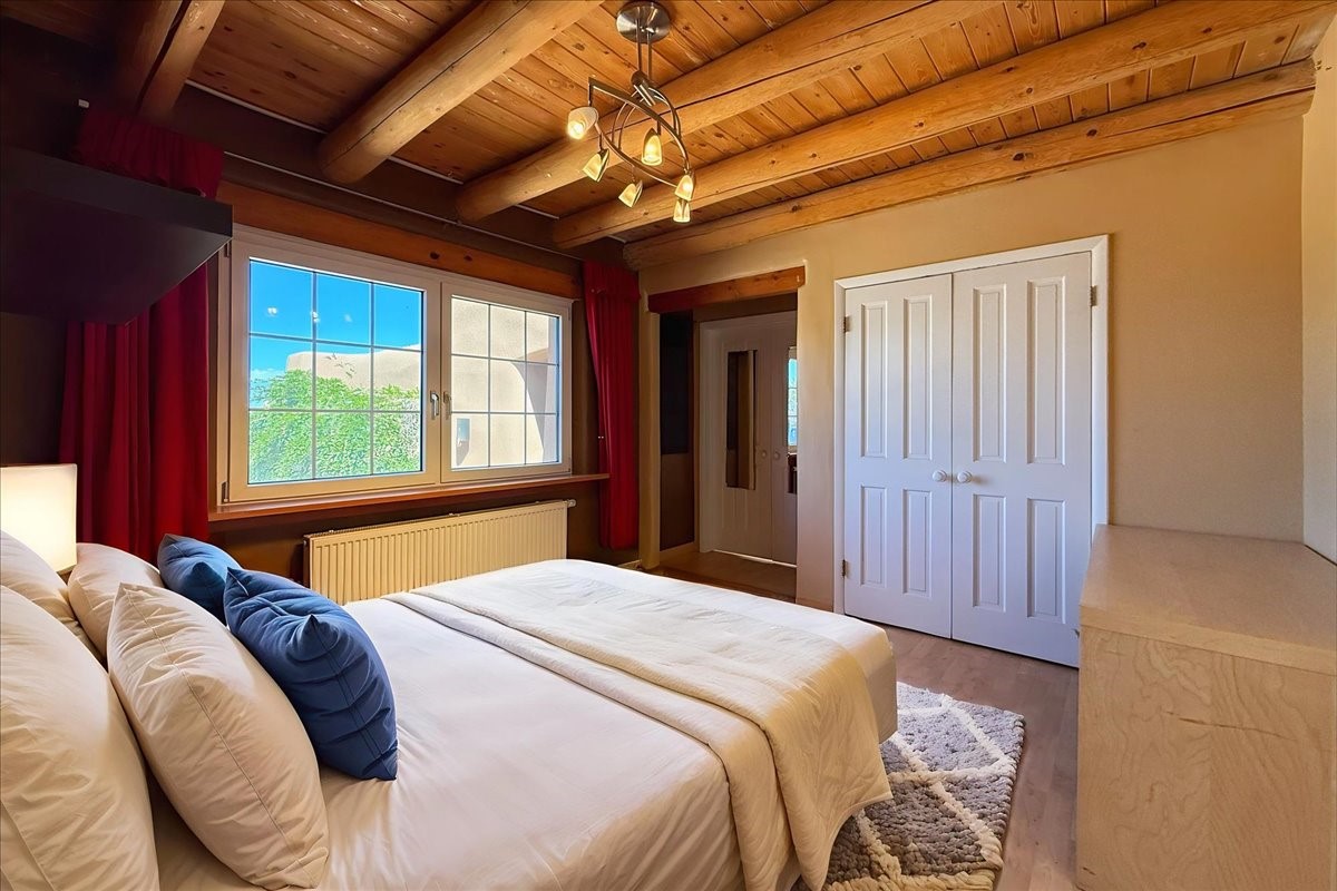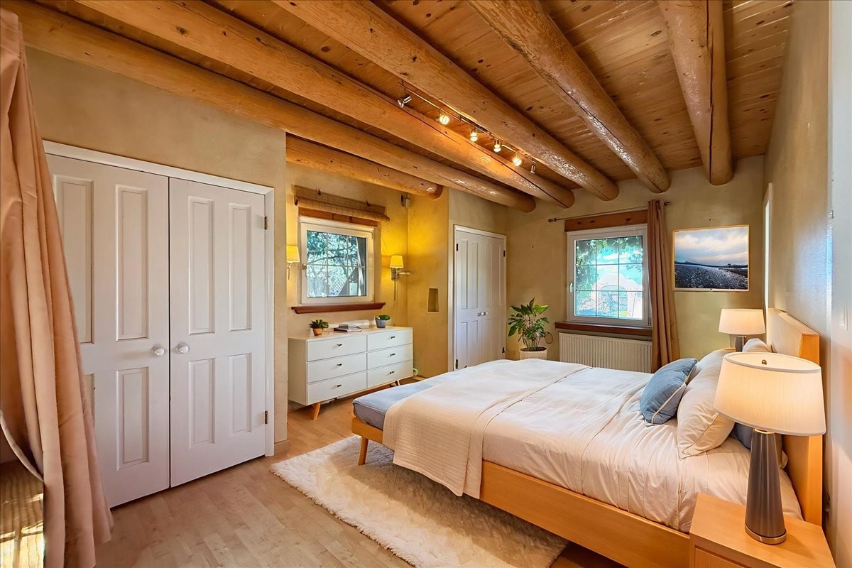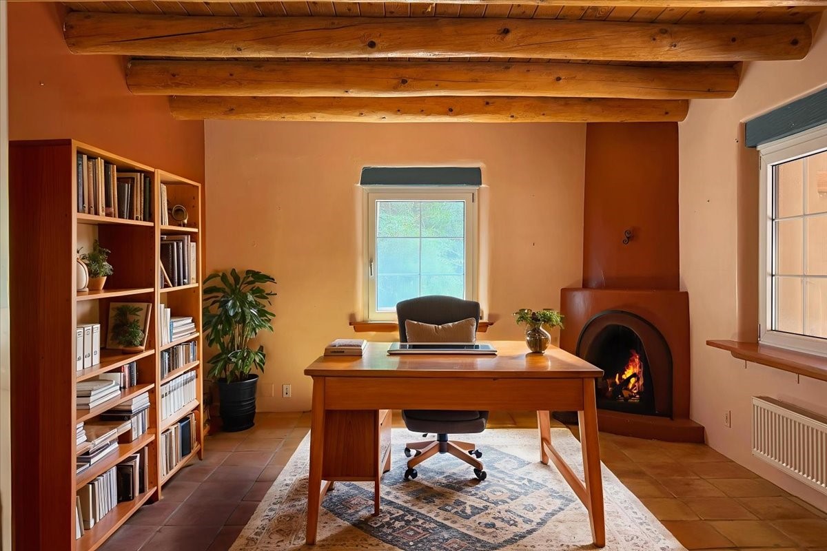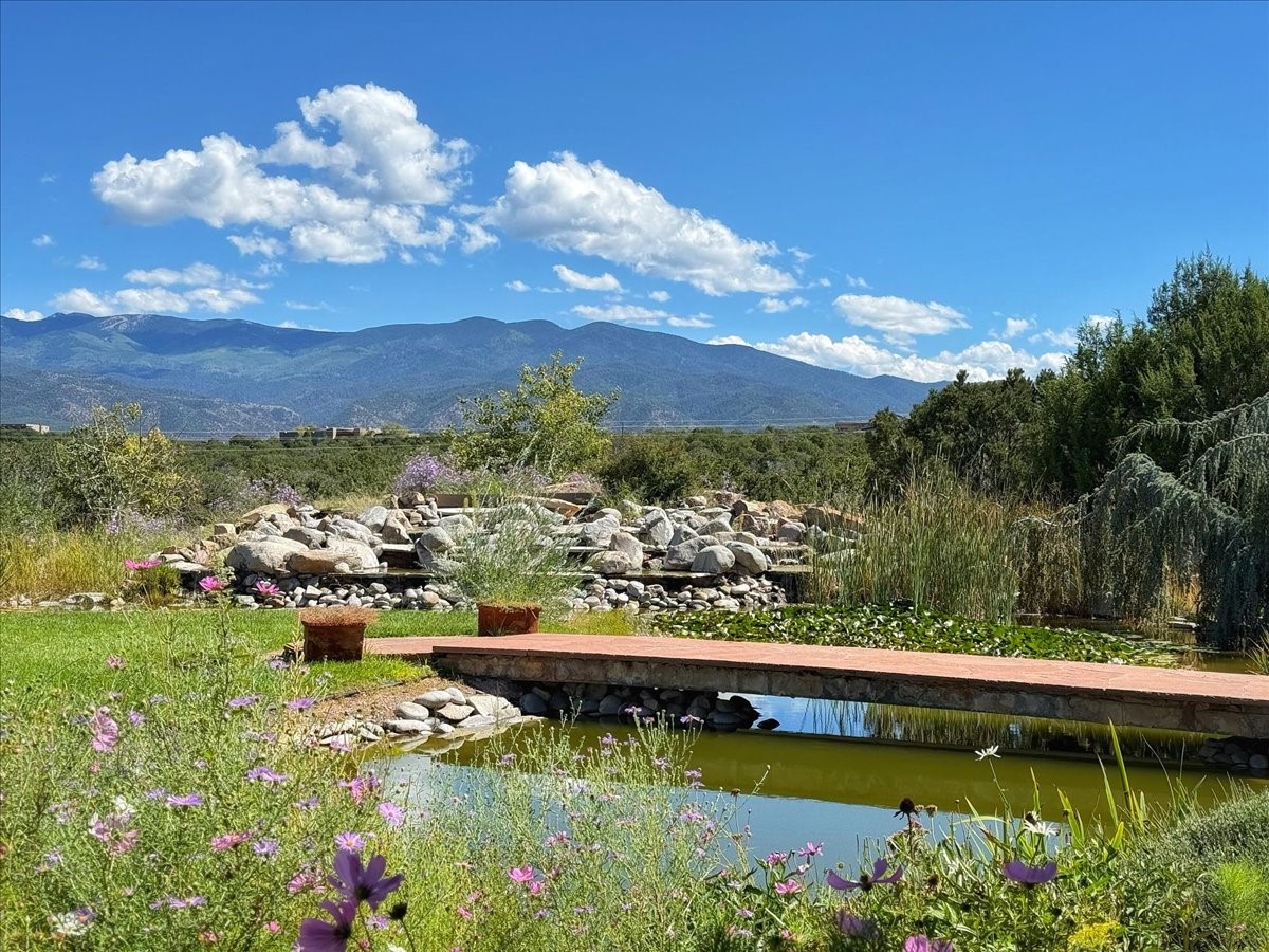 Tano Road at its Finest Tucked away on 11.9 wooded acres, this remarkable adobe estate feels worlds apart--yet remains close to all that makes Santa Fe extraordinary. With a 4-bedroom main house and a separate 2-bedroom casita, the property unfolds as a private retreat for gathering, reflection, and creativity.Anchoring the main level is a welcoming kitchen designed for connection, opening to a portal that overlooks an aspen-lined lawn, a serene pond, and sweeping views across the Sangre de Cristo and Jemez Mountains. Picture windows fill the living room with light, while an office, den, and three-bedroom guest wing provide space for every rhythm of lifework, rest, and hosting.Above, the owner's suite is perfectly placed to capture the views and includes a beautifully appointed bath and an airy studio/office. The nearby casita is equally inviting--offering privacy for guests or a quiet escape of its own.Rare, inspiring, and full of possibility--this is a Santa Fe property ready to be reimagined for its next chapter.