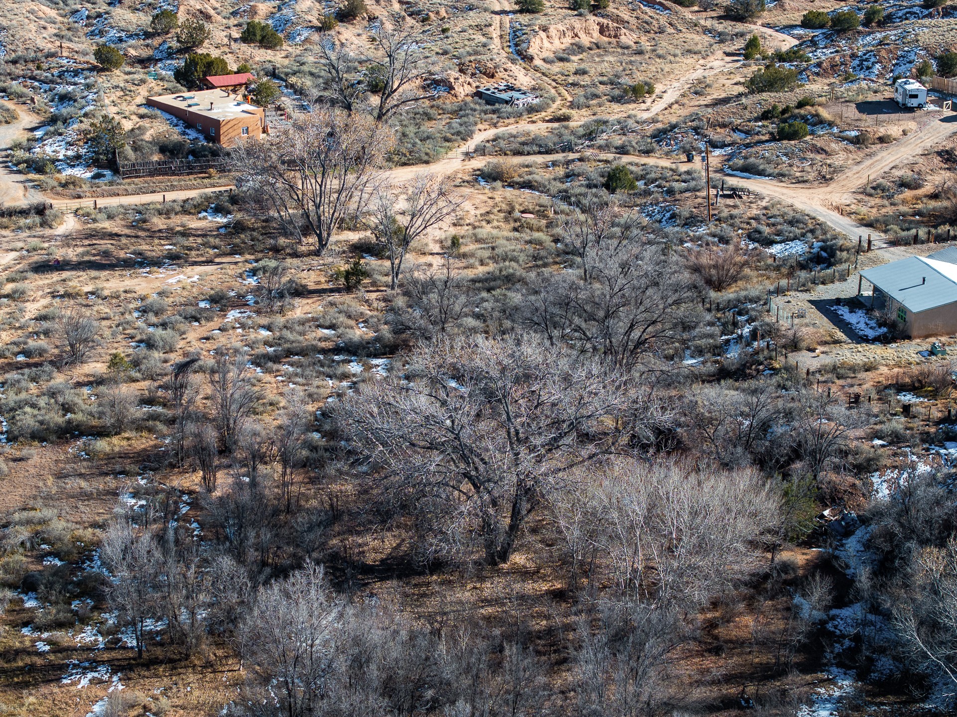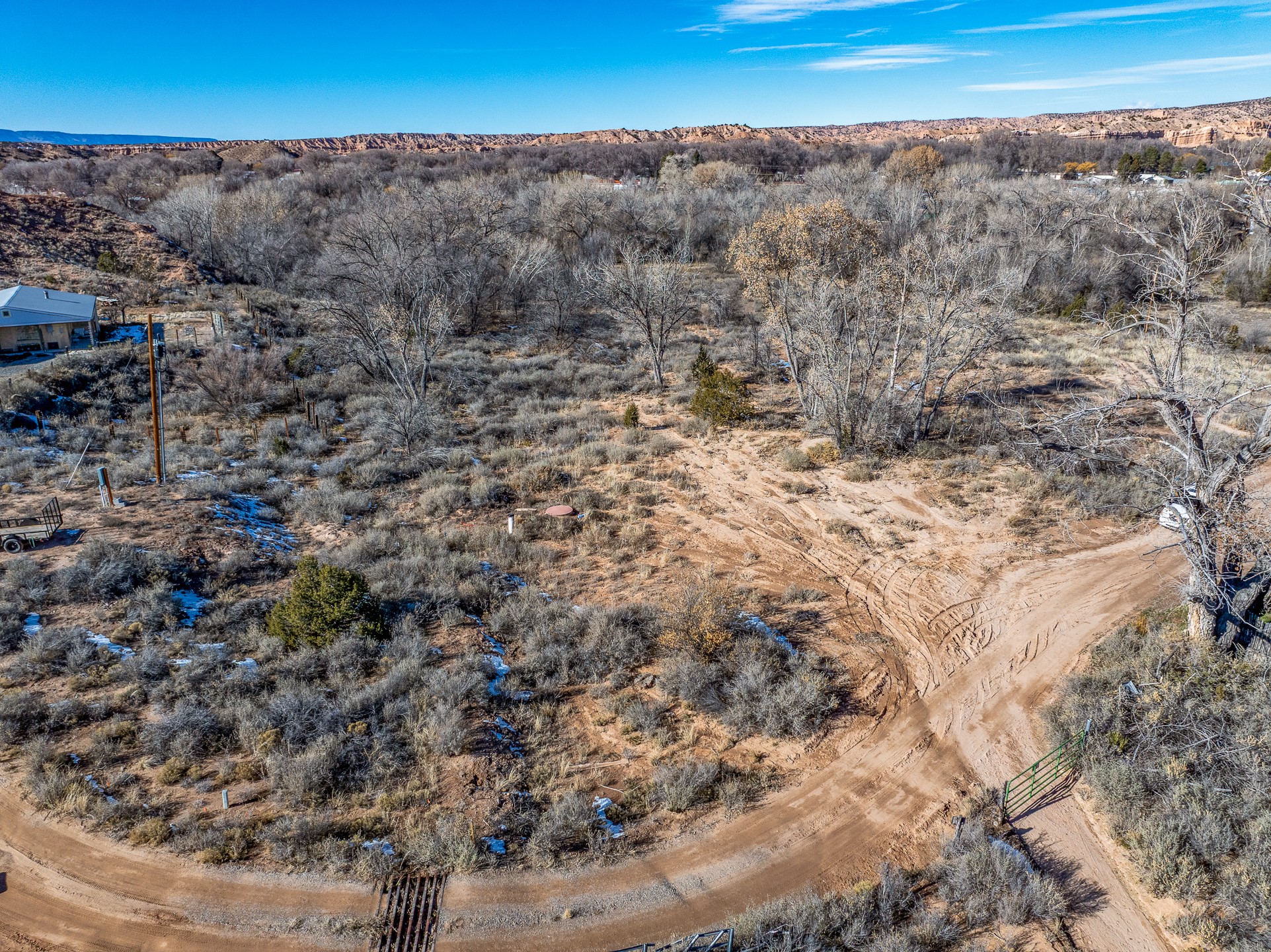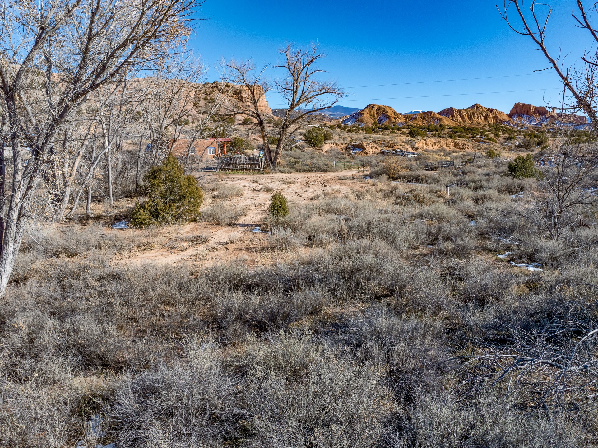 Capture a piece of gorgeous Chimayo land on .95 lush acreage!! Flat land with easy building sites provides for house, guest house and storage buildings! Trees and birds abound! Access to BLM land is available as well. There is a shared well on the property and a gate already provided for access into the property. Water rights also will transfer!! Owner may finance with 20% down at 5% interest, balloon in 5 yrs.