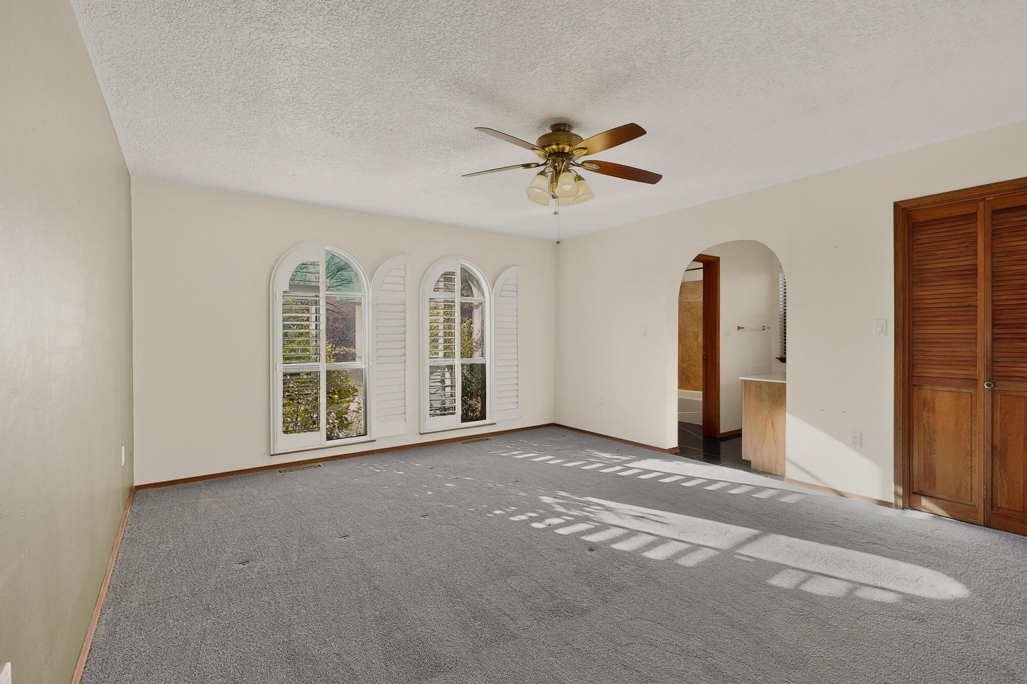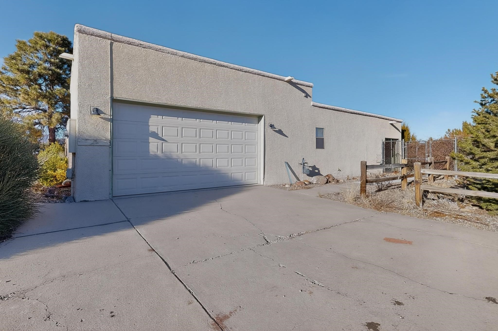 Thoughtfully designed approx. 2,500 sq ft, 3-bedroom plus flex room, 3-bath, 2-car garage home on a desirable double lot backing to open space, offering added privacy and beautiful views. The spacious living area, with room for an office or sitting area, features vaulted wood beam ceilings, a stone gas fireplace updated in 2023, and built-in shelving.The well-planned layout includes two primary bedrooms with en-suite baths, one with a walk-in closet, plus a third bedroom and an additional full bath. Bathrooms have been thoughtfully updated, including a remodeled primary bath with a walk-in shower. A sunroom, small office area off the kitchen, direct-access garage, and dedicated laundry room provide excellent flexibility for daily living.Notable improvements include a new furnace and water heater (2019), updated kitchen appliances and lighting, newer washer and dryer, insulated garage door, updated interior and exterior lighting, ceiling fans, window coverings, replaced window pulleys and screens, UV/heat-filtering window film, and new carpet in the living area and bedrooms. Additional amenities include marble flooring, forced air heating, central evaporative cooling, raised garden beds, fruit trees, and recent exterior updates.A wonderful opportunity to enjoy space, privacy, views, and relaxed Cochiti living. Please see the documents section for a complete list of updates and improvements.