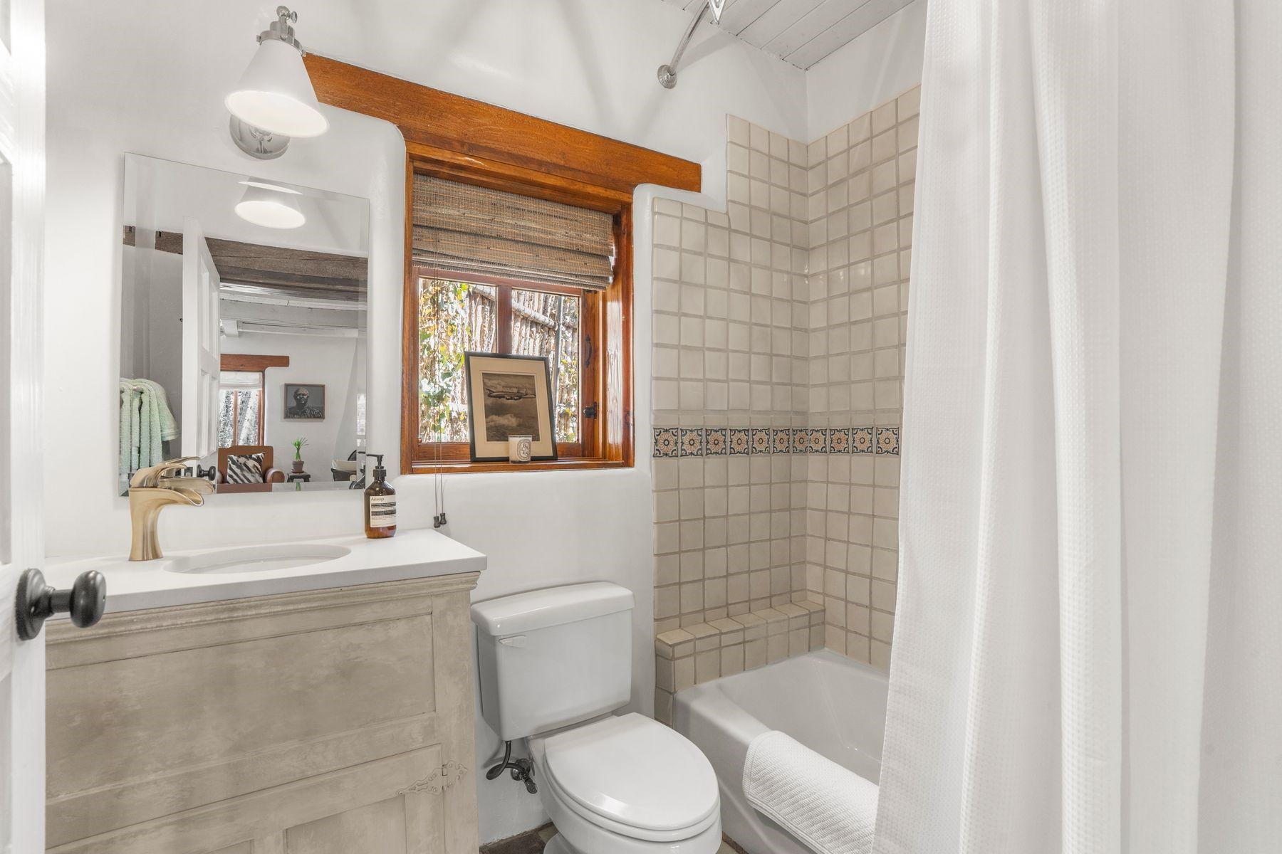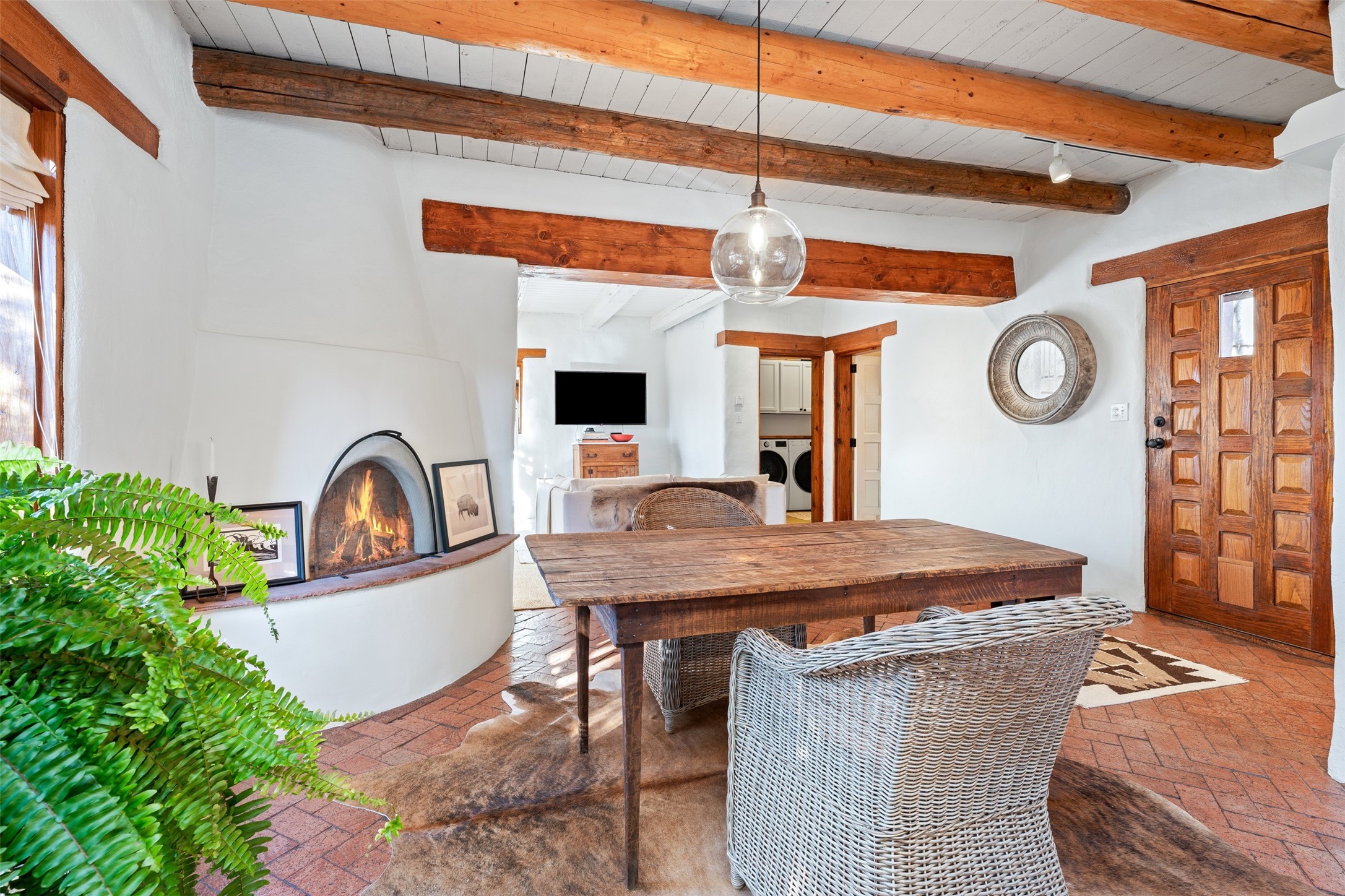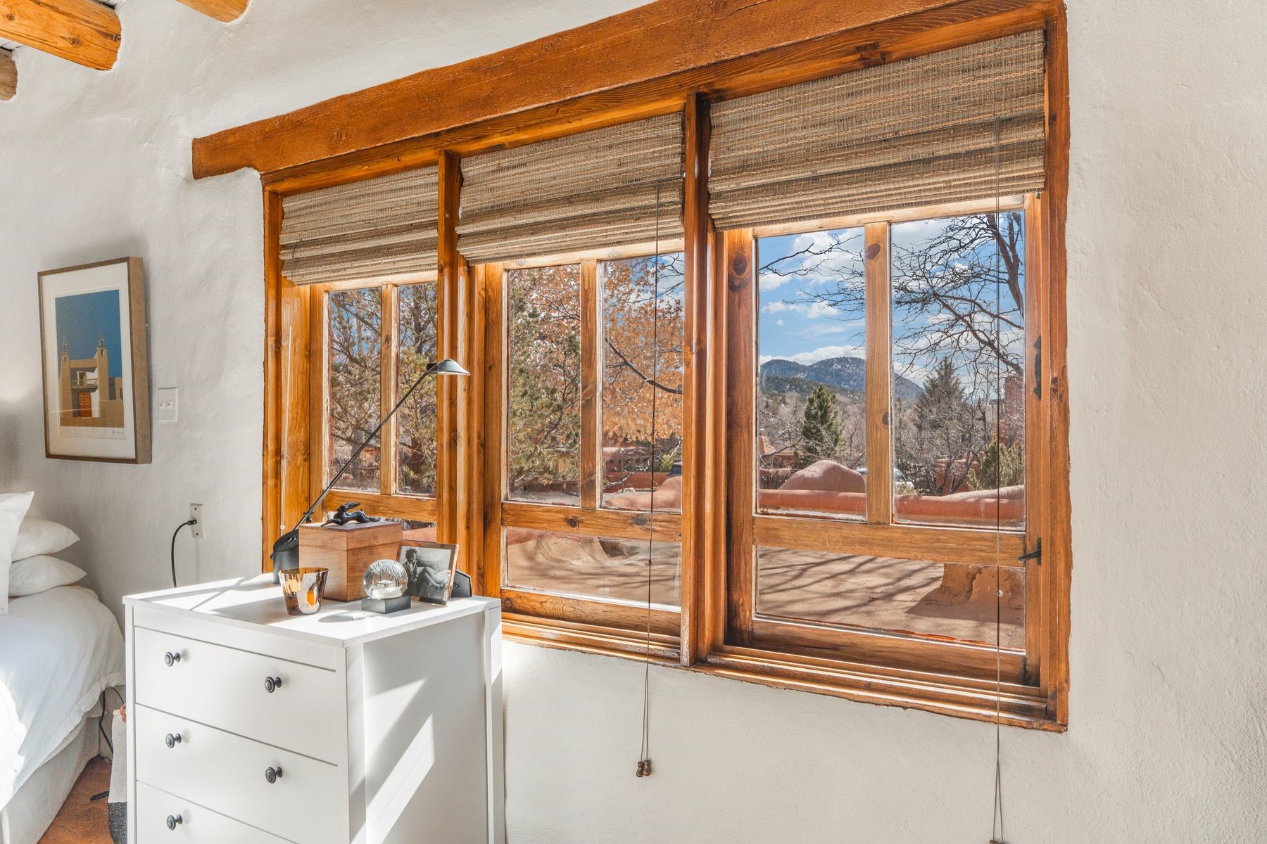 Tucked quietly along storied Palace Avenue, within one of Santa Fe's most revered enclaves, this approximately 1,200-square-foot one-bedroom, two-bath residence at the Llano Compound is more than a condominium--it is a living work of art.Created in the 1970s by a collective of artists and visionaries, the Llano Compound occupies land influenced by Frank Lloyd Wright's architectural philosophy. The result is an extraordinary adobe complex that feels organic, soulful, and rooted in place. Hand-formed adobe blocks were crafted directly on the property, giving the structure a tactile authenticity and warmth modern construction cannot replicate. Listed on the Historic Register, homes within this compound are rare and tightly held, sought after by those who value provenance, design, and quiet distinction.Inside, the residence unfolds with calm intention. Thick adobe walls provide natural insulation and a serene atmosphere. The layout is both functional and poetic, offering a generous bedroom suite complemented by a second bath--an uncommon feature in a one-bedroom residence, ideal for guests or flexible living.The bathrooms feature individually handmade tiles--each beautifully imperfect and reflective of the compound's artisanal spirit. These details are integral expressions of the home's story.Architecturally striking windows, inspired by Frank Lloyd Wright's design language, frame light artfully. Their geometry creates moments of quiet drama as sunlight moves through the space throughout the day.Every element speaks to a time when homes were created with hands and ideals--not spreadsheets. This property is for someone who understands that true luxury is not excess but authenticity, history, and soul.Located moments from Canyon Road, the Plaza, and Santa Fe's cultural heartbeat--yet tucked into a peaceful setting--this Llano Compound residence offers a rare opportunity to own a piece of Santa Fe's artistic and architectural legacy--one that will never be replicated.