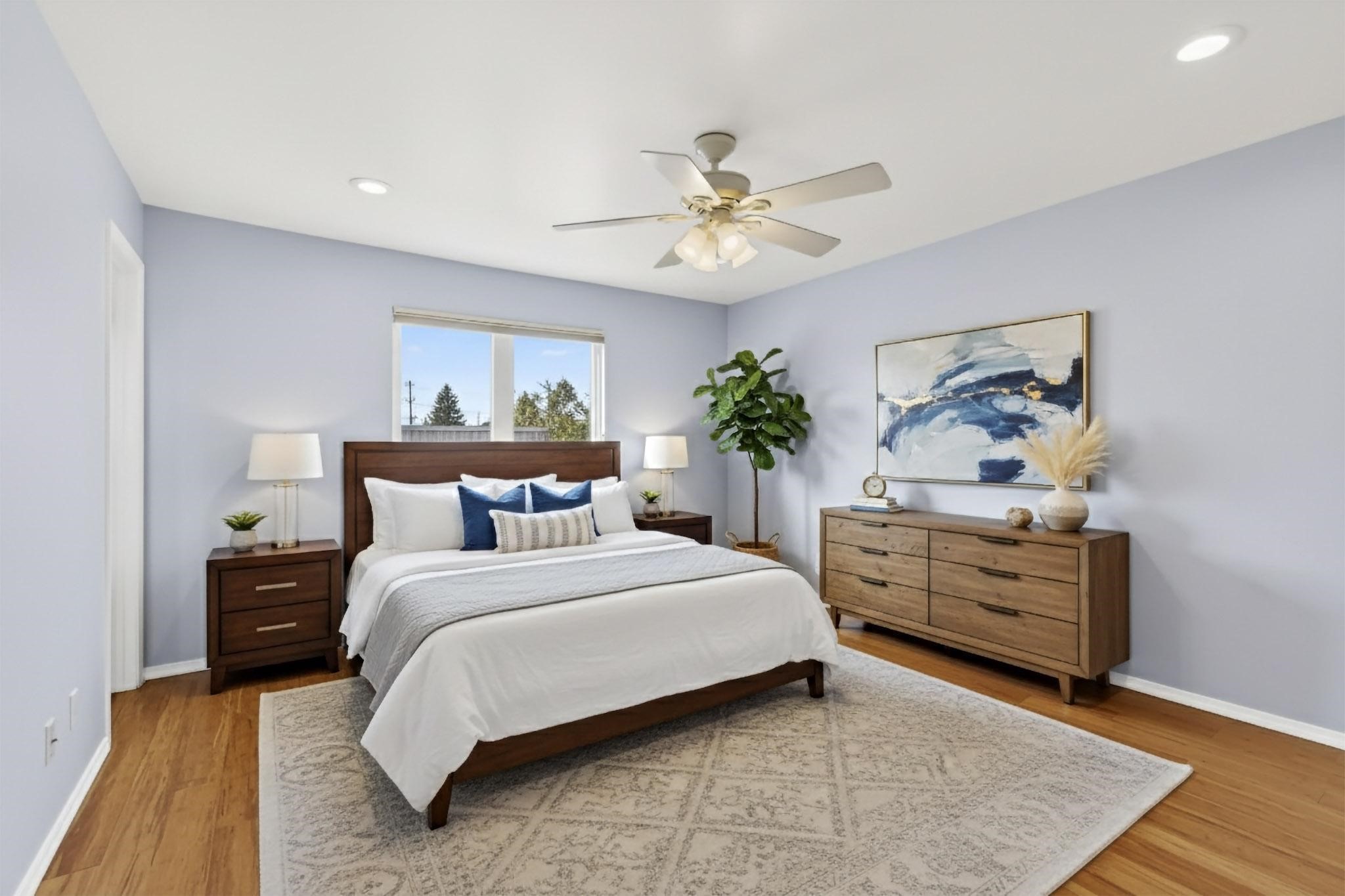 Charming, updated, freshly painted and super cute single level home offers 1325 +/- sqft, 3-bedroom, 2-bath, 1-car finished garage of comfortable living. The third bedroom would make a convenient and light office. Perfectly situated on a wonderful lot backing to open space/arroyo, this property offers a spacious feel. Inside, the entryway leads to the inviting living room featuring wood beams, wood built-in bookshelves, dining area, a wood-burning fireplace, and sliding glass doors -- adding warmth, light and character. The kitchen boasts abundant cabinets, generous counter space, a pantry, gas range, stainless-steel dishwasher, and breakfast bar--ideal for casual dining or entertaining. The primary suite offers two closets and a remodeled ensuite bath with a stunning, tiled walk-in shower. Step outside to enjoy the easy-care, walled backyard with a covered portal, perfect for relaxing. Additional highlights include: New stucco on most exterior walls-Ample storage closets throughout-Large capacity washer/dryer-Forced air heat-Ceiling fans-NEWER windows-NEWER pendant and can lighting light fixtures-Dimmer switches-NEWER tile and Bamboo wood floors, and NEW laminate flooring in 2 bedrooms (No carpet)-Top/down bottom-up Hunter Douglas blinds-and so much more. Located in the La Villa Serena subdivision, approximately 10-minute drive to the Santa Fe Plaza, a few minute walk to Ragle Park, the Arroyo Chamiso and Rail Trails. This move-in-ready home close to schools, restaurants, shopping and hospitals blends warmth, character, and modern updates--a perfect combination of comfort and style.